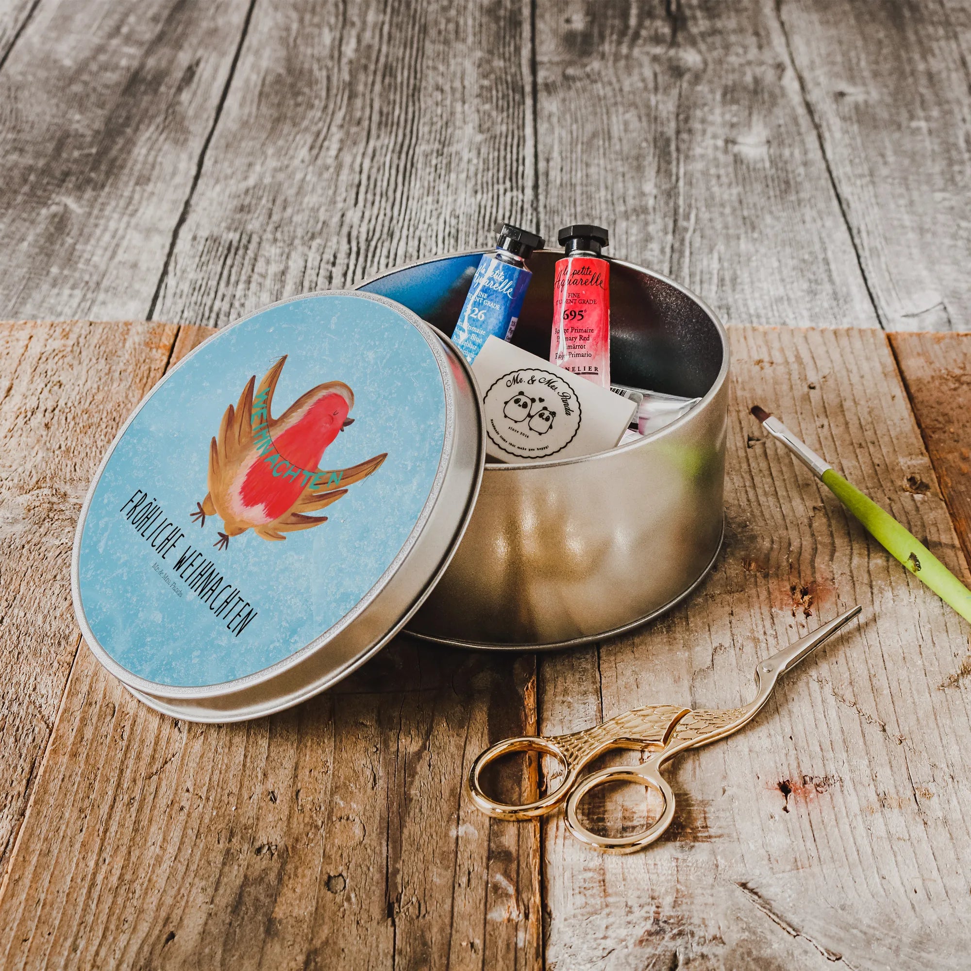 Entdecke die zauberhafte Blechdose rund mit dem süßen Rotkehlchen-Motiv Weihnachten von Mr. & Mrs. Panda! Diese wunderschöne Dose wird sicherlich das Herz eines jeden beschenken, der die besinnliche Weihnachtszeit liebt. Mit einem Durchmesser von 150 mm und einer Höhe von 150 mm ist sie ideal geeignet, um selbstgebackene Kekse oder kleine Geschenke stilvoll aufzubewahren.