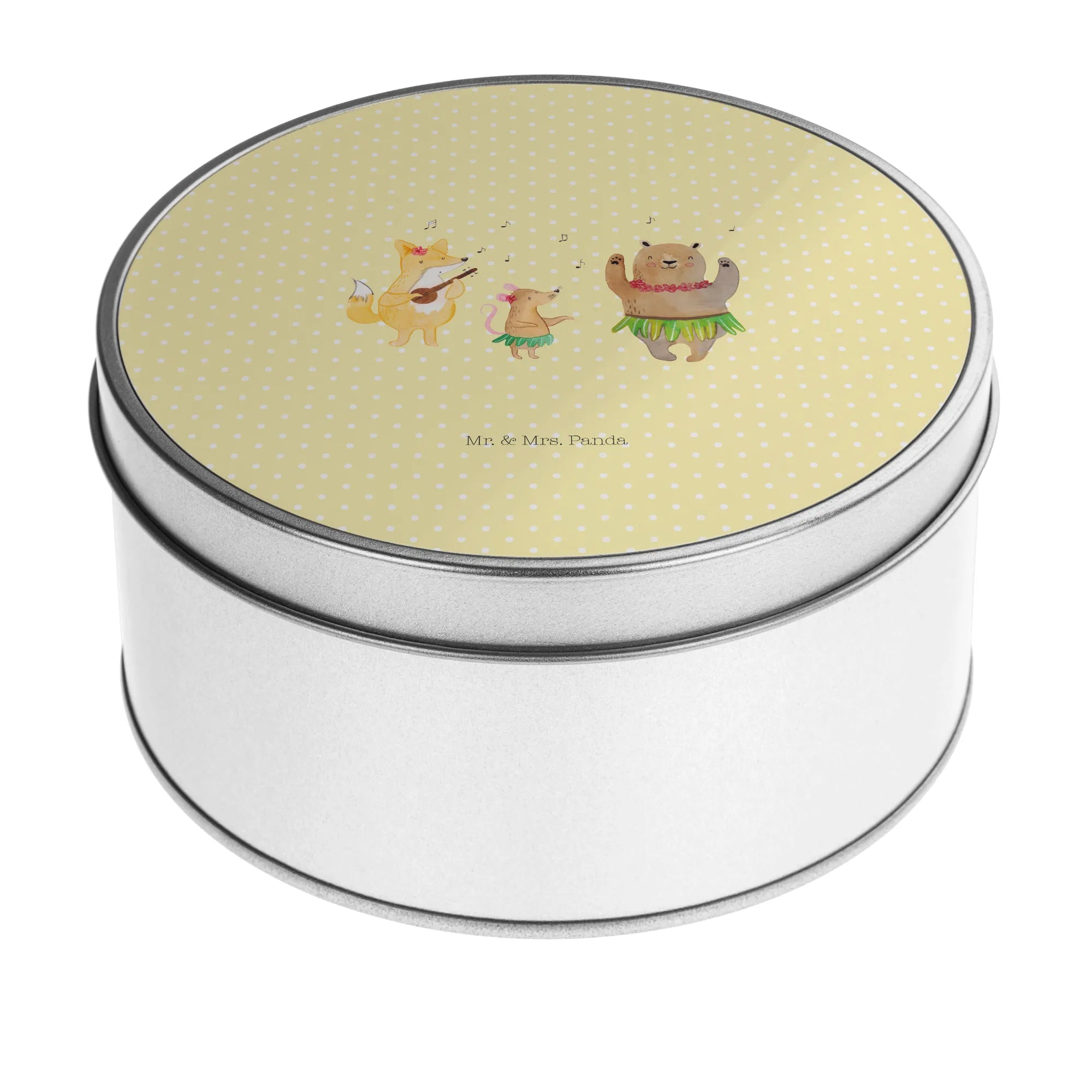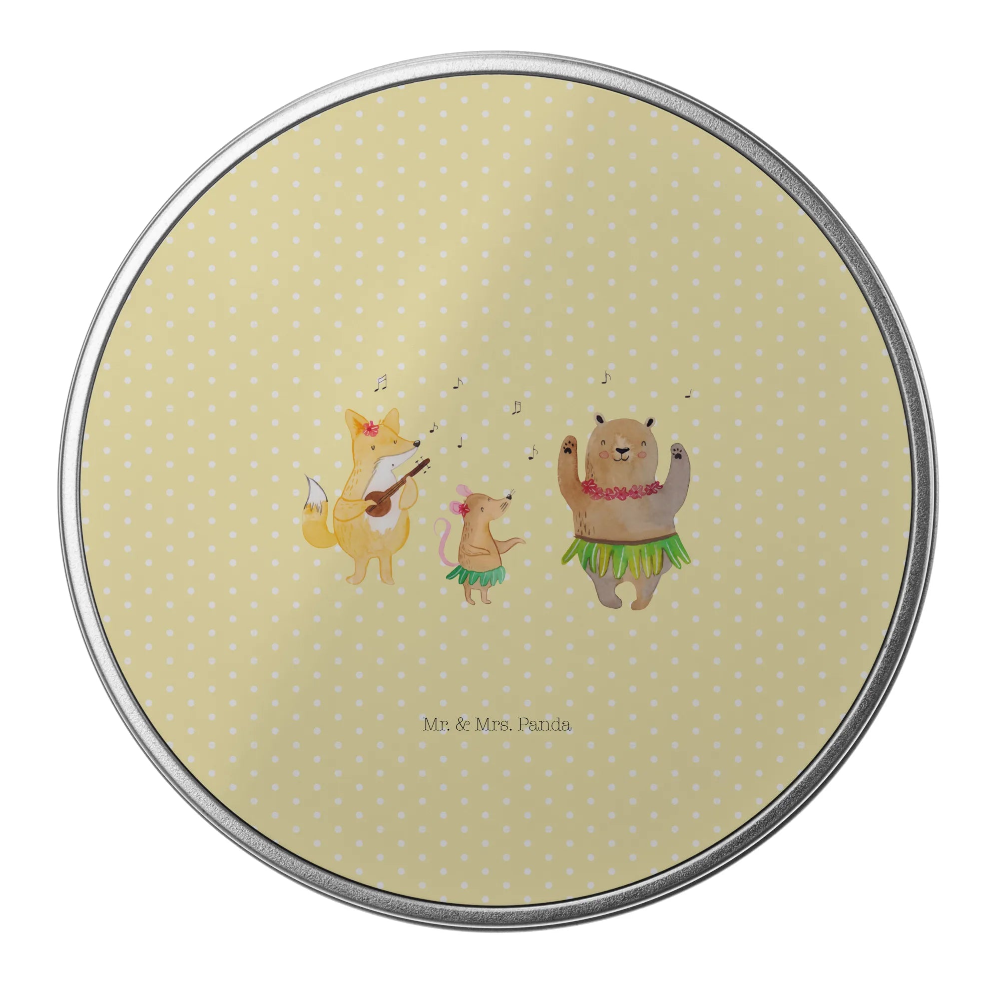 Entdecke die wunderschöne runde Blechdose von Mr. & Mrs. Panda mit dem bezaubernden Motiv "Waldtiere Aloha" aus der beliebten Small World Kollektion!