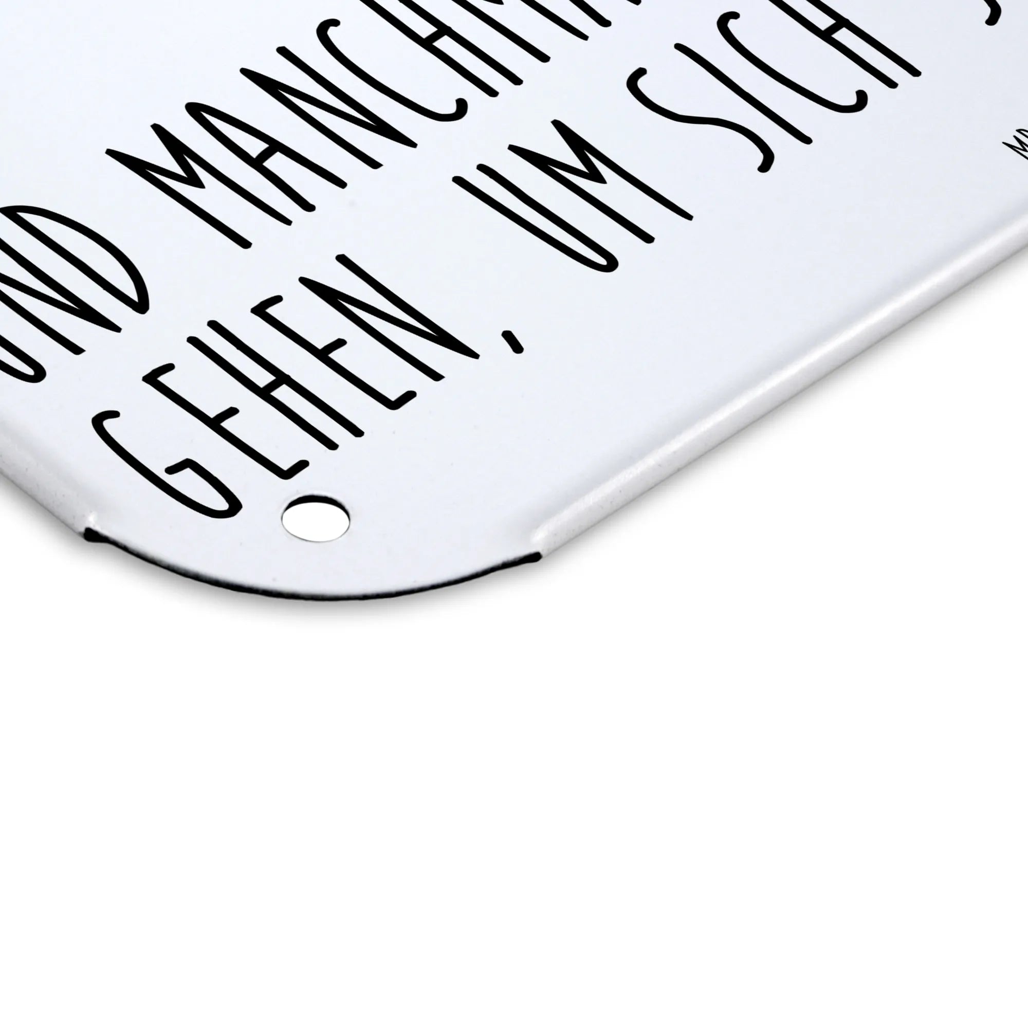 Der Spruch "Und manchmal muss man verloren gehen, um sich selbst zu finden" unterstreicht das Bild und ermutigt dazu, den eigenen Weg zu gehen. Ob als witzige Wanddekoration, als Eigentum oder als originelles Geschenk, dieses Metallschild ist ein Blickfang in jeder Wohnung.
