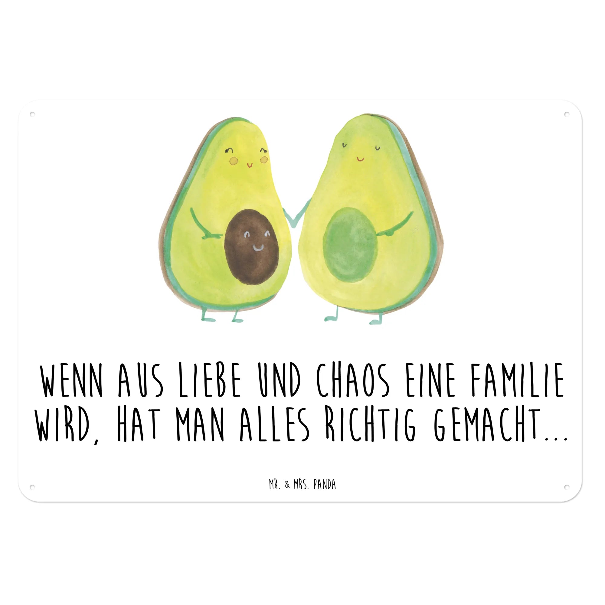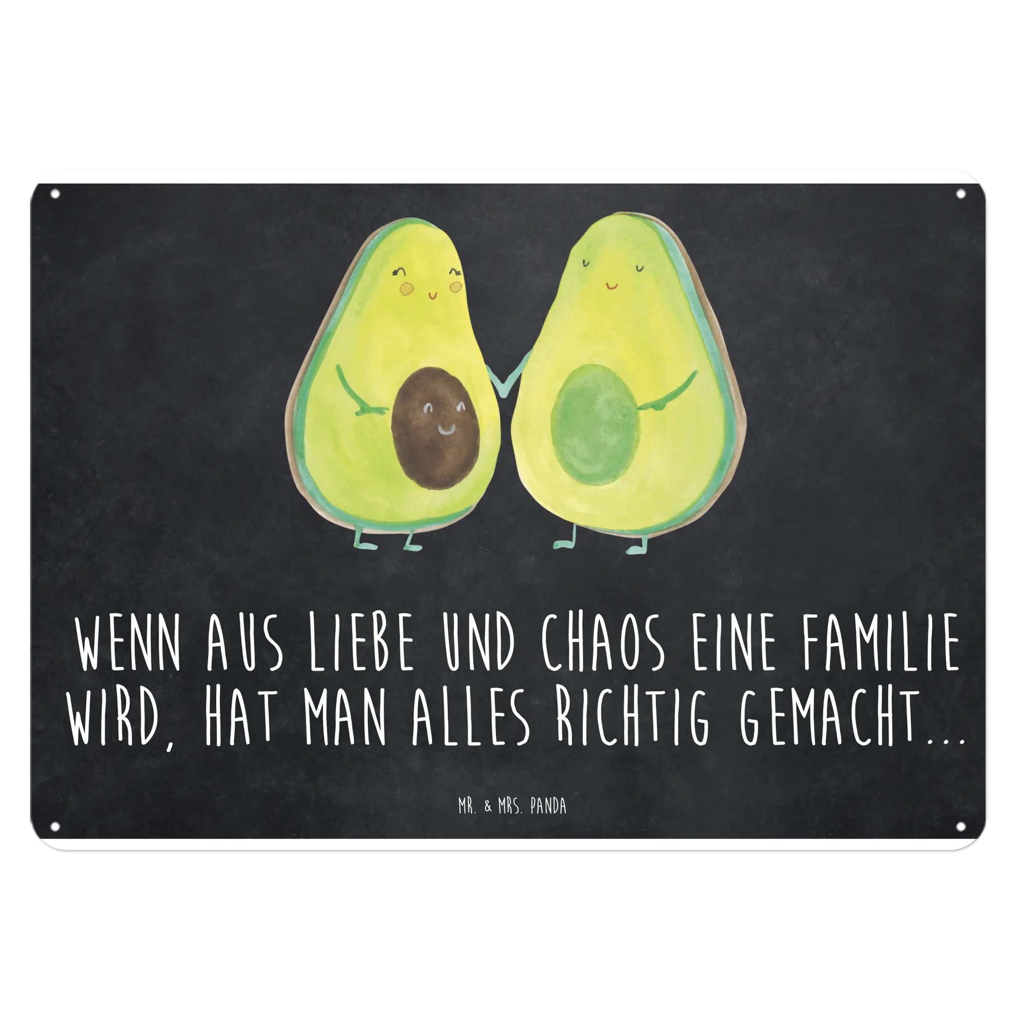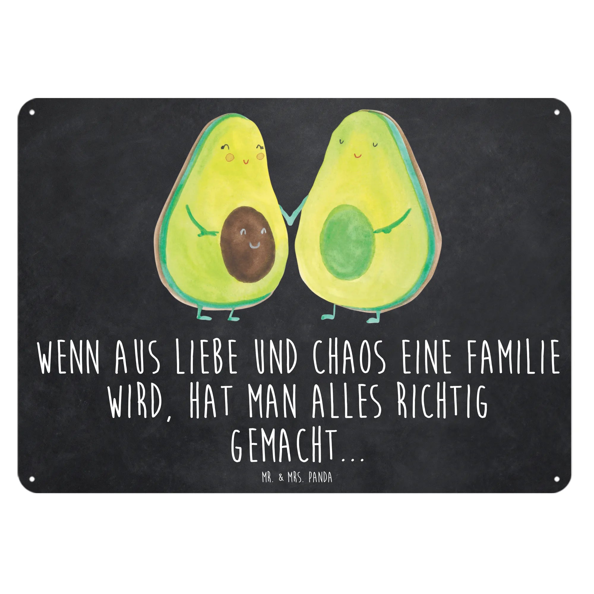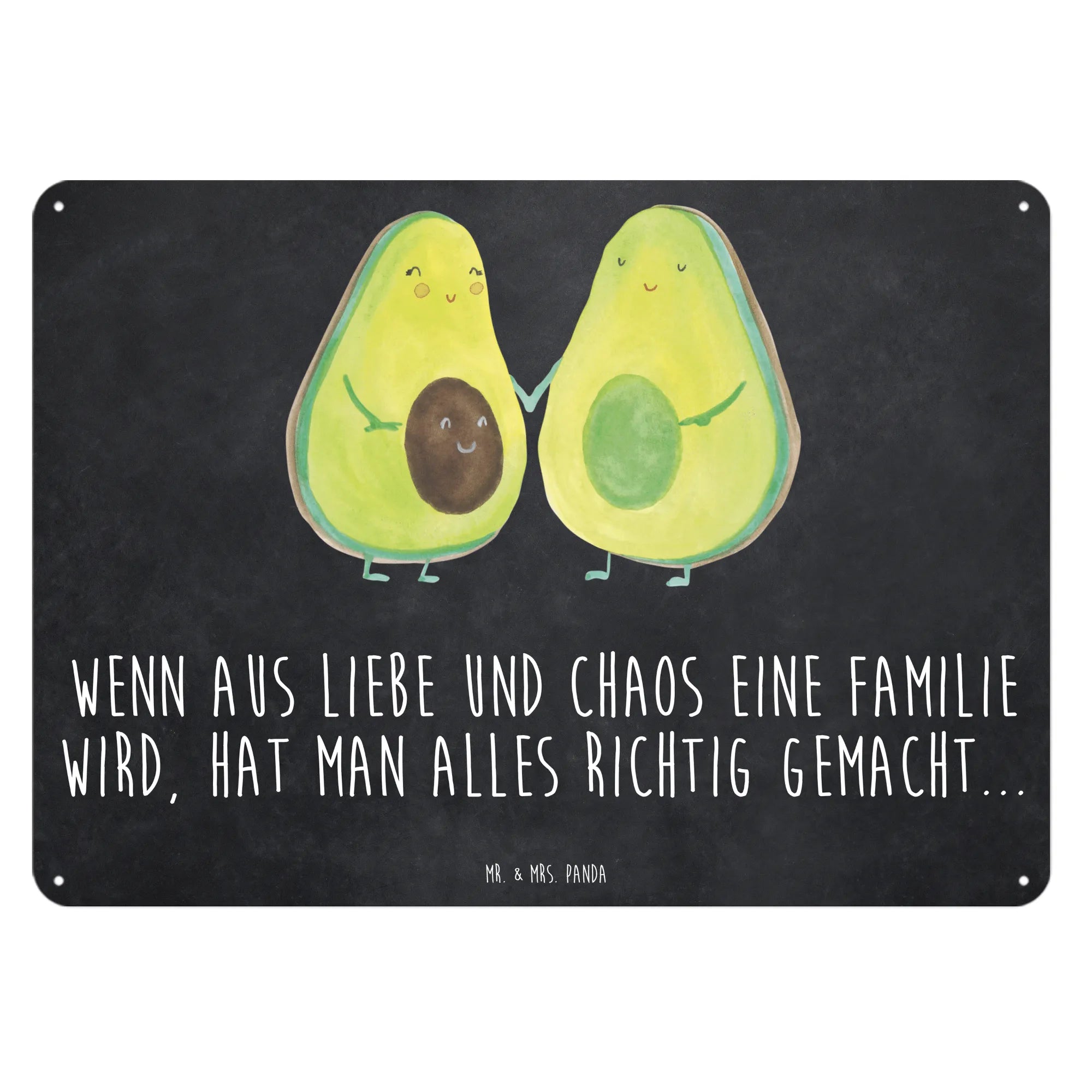 Das wunderschöne Blechschild mit dem süßen Avocado Pärchen von Mr. & Mrs. Panda ist das perfekte Geschenk für alle, die das Leben und die Familie lieben. Mit seinem ansprechenden Design und dem charmanten Spruch "Wenn aus Liebe und Chaos eine Familie wird, hat man alles richtig gemacht..." bringt es frischen Wind in jedes Zuhause.