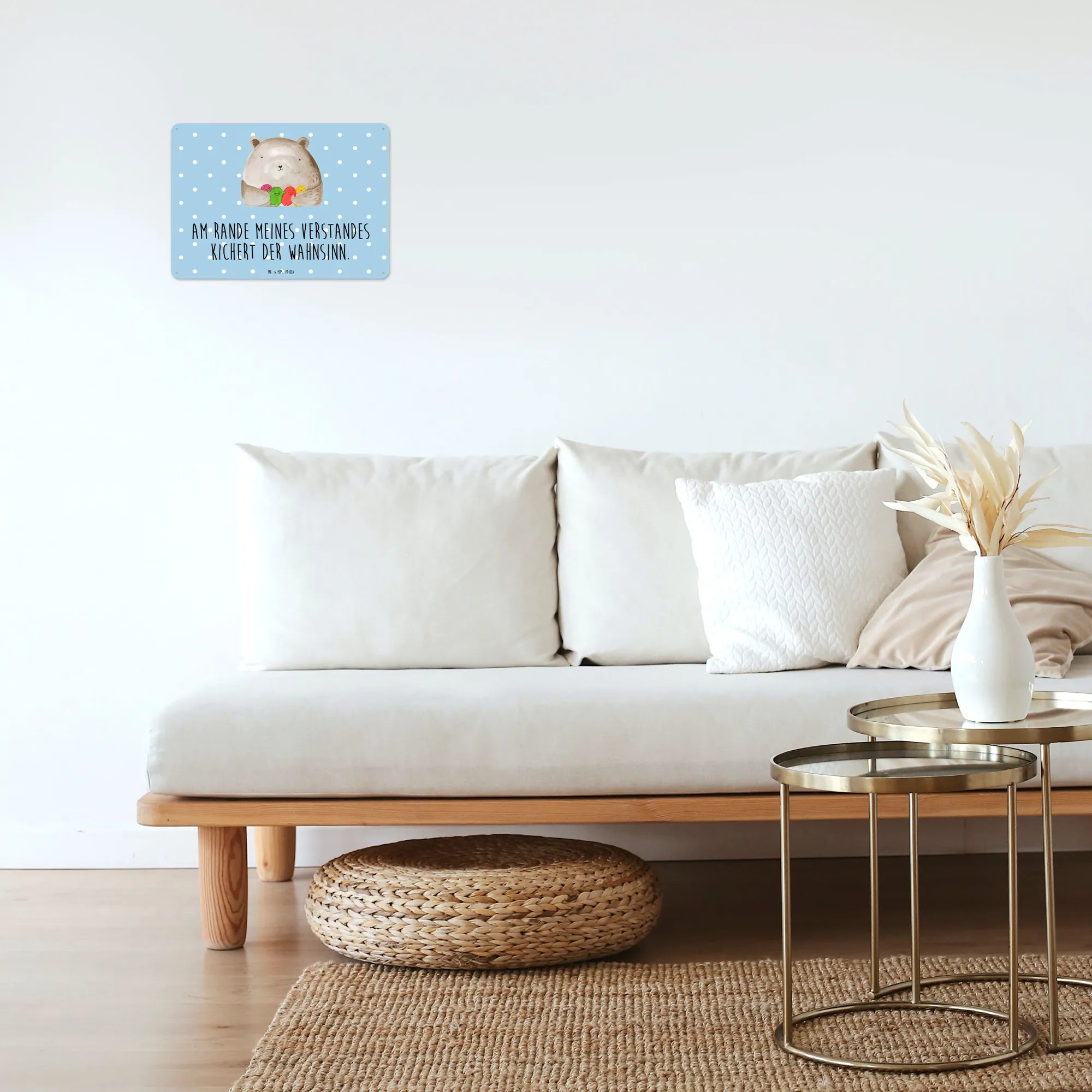 Das wunderschöne Blechschild "Bär Gefühl" von Mr. & Mrs. Panda ist nicht nur eine tolle Wanddekoration, sondern auch ein perfektes Geschenk für liebe Menschen. Mit seinem niedlichen Bären-Motiv und dem inspirierenden Spruch "Am Rande meines Verstandes kichert der Wahnsinn" zaubert es jedem ein Lächeln ins Gesicht. Dieses Metallschild präsentiert einen süßen Bären, der fröhlich bunte Kugeln in seinen Händen hält. Jede einzelne Kugel steht für eine Emotion – von Liebe, Freundschaft, Sehnsucht bis Trauer. Es ist ein wunderbarer Ausdruck von Gefühlen und passt perfekt in jedes Heim.