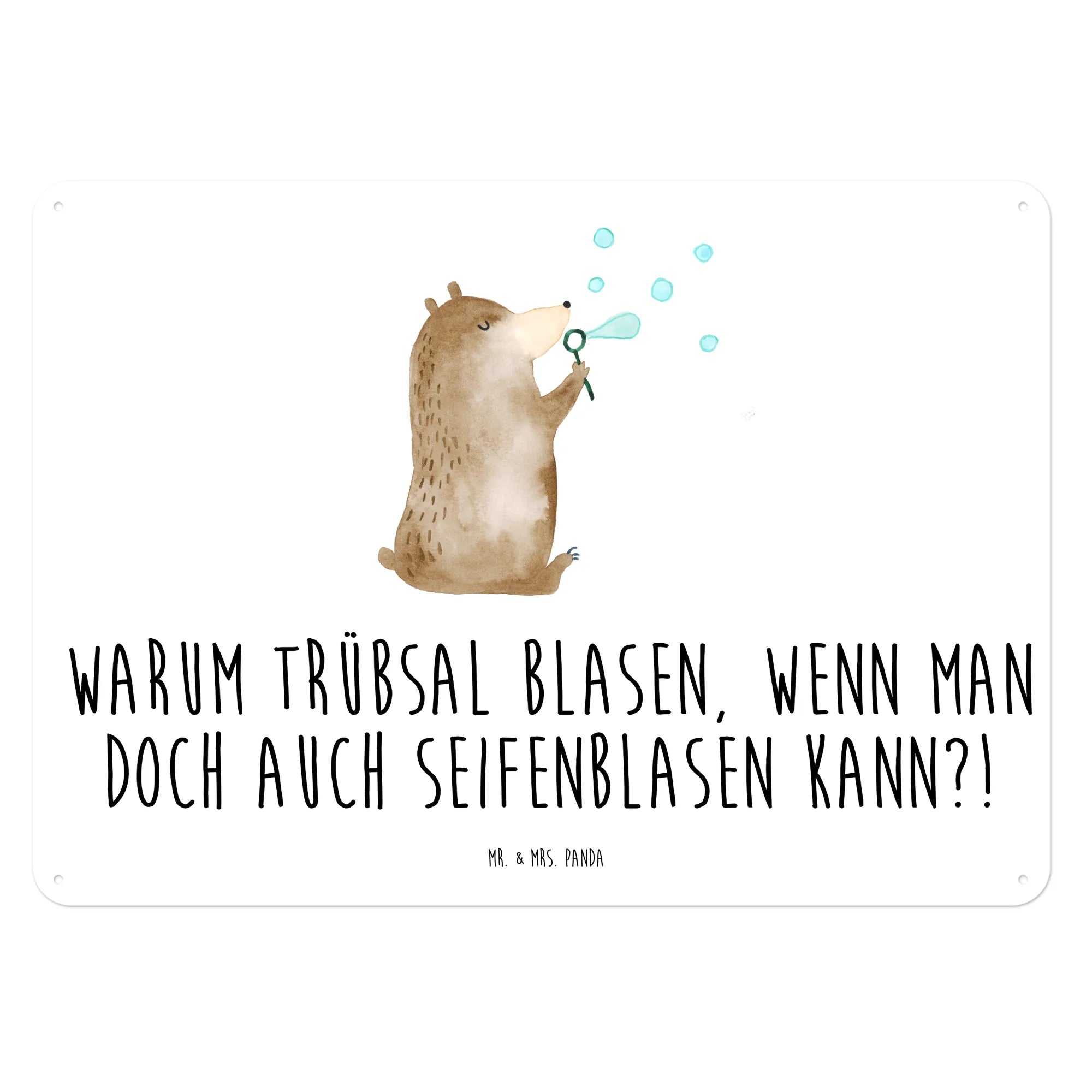 Dieses wunderschöne Blechschild von Mr. & Mrs. Panda mit dem lustigen Motiv des Bären, der Seifenblasen bläst, ist das perfekte Geschenk für alle, die ein Lächeln ins Gesicht zaubern möchten. Egal, ob du es für dich selbst oder als liebevolle Überraschung für Freunde und Familie kaufst, dieses Schild bringt Freude und gute Laune in jedes Zuhause.