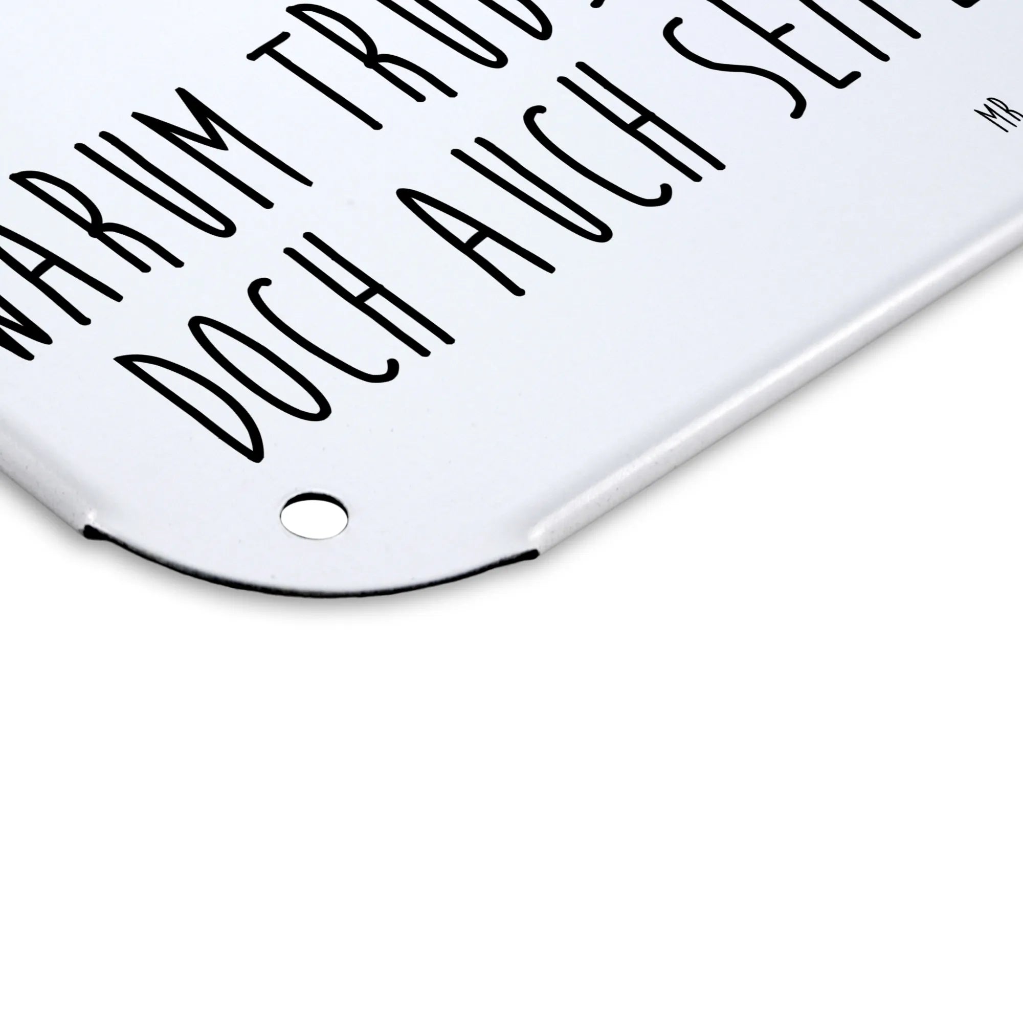 Die abgerundeten Ecken und umgefalzten Kanten tragen zu der hohen Qualität des Schildes bei und garantieren Sicherheit, vor allem in Haushalten mit Kindern. Egal, ob du es als Türschild oder Wanddekoration verwendest, unser Blechschild lässt sich ganz einfach mit den vier vorgebohrten Löchern befestigen.