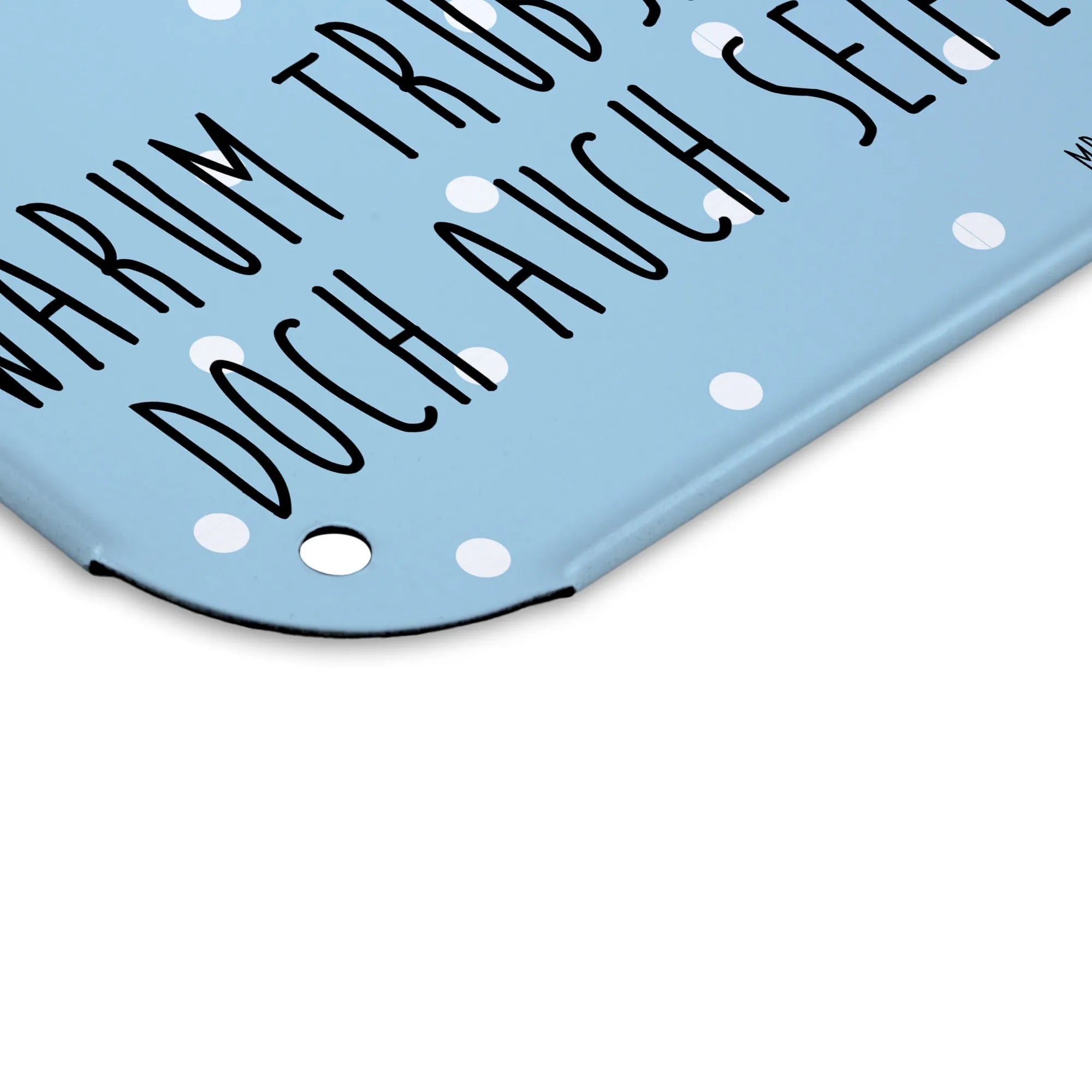 Die seidenmatte Oberfläche und die abgerundeten Ecken bieten zudem Sicherheit und eine angenehme Haptik. Das Blechschild hat außerdem 4 Bohrungen zur optimalen Befestigung, sodass du es ganz leicht an deiner Wand oder Tür anbringen kannst. Pflegeleicht ist es obendrein – einfach mit einem feuchten Tuch abwischbar. Die Maße sind perfekt im DIN A5 Format, was es zu einer idealen Deko für jedes Zuhause macht.