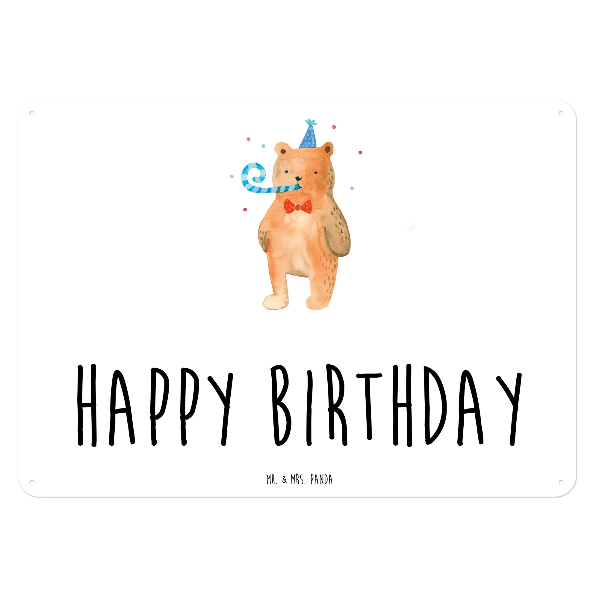 Das edle Blechschild mit dem fröhlichen Birthday Bär von Mr. & Mrs. Panda ist das perfekte Geschenk für jeden, der seinen Geburtstag feiert! 🎉 Der süße Bär, liebevoll mit bunten Luftballons und einem strahlenden Lächeln gestaltet, versprüht Freude und gute Laune.