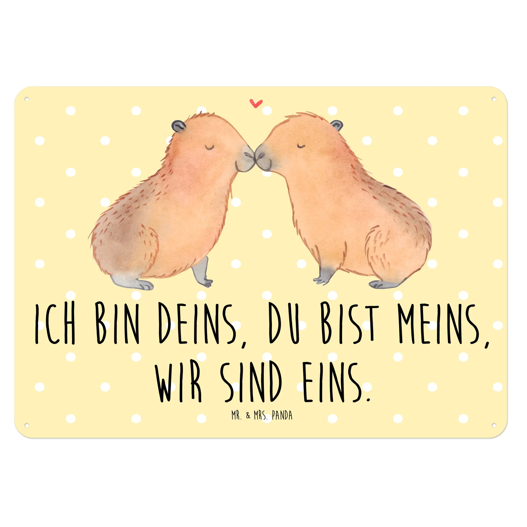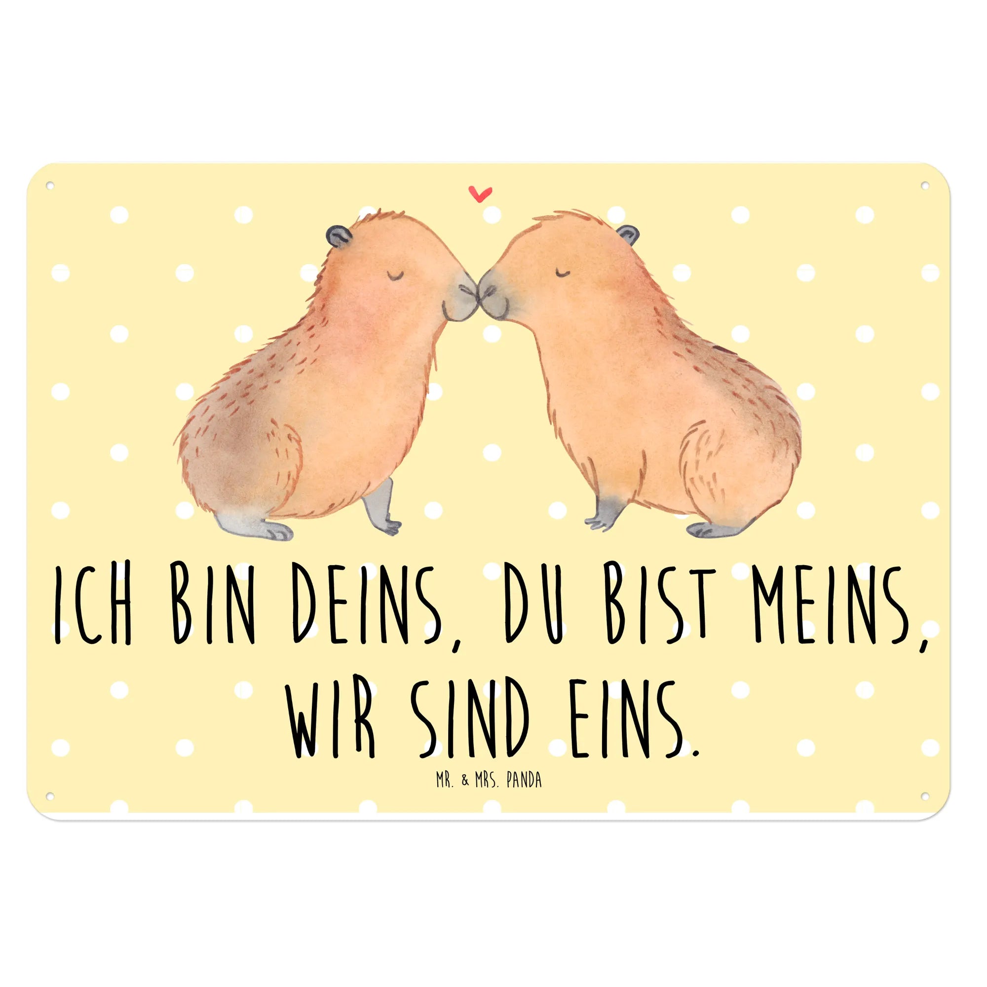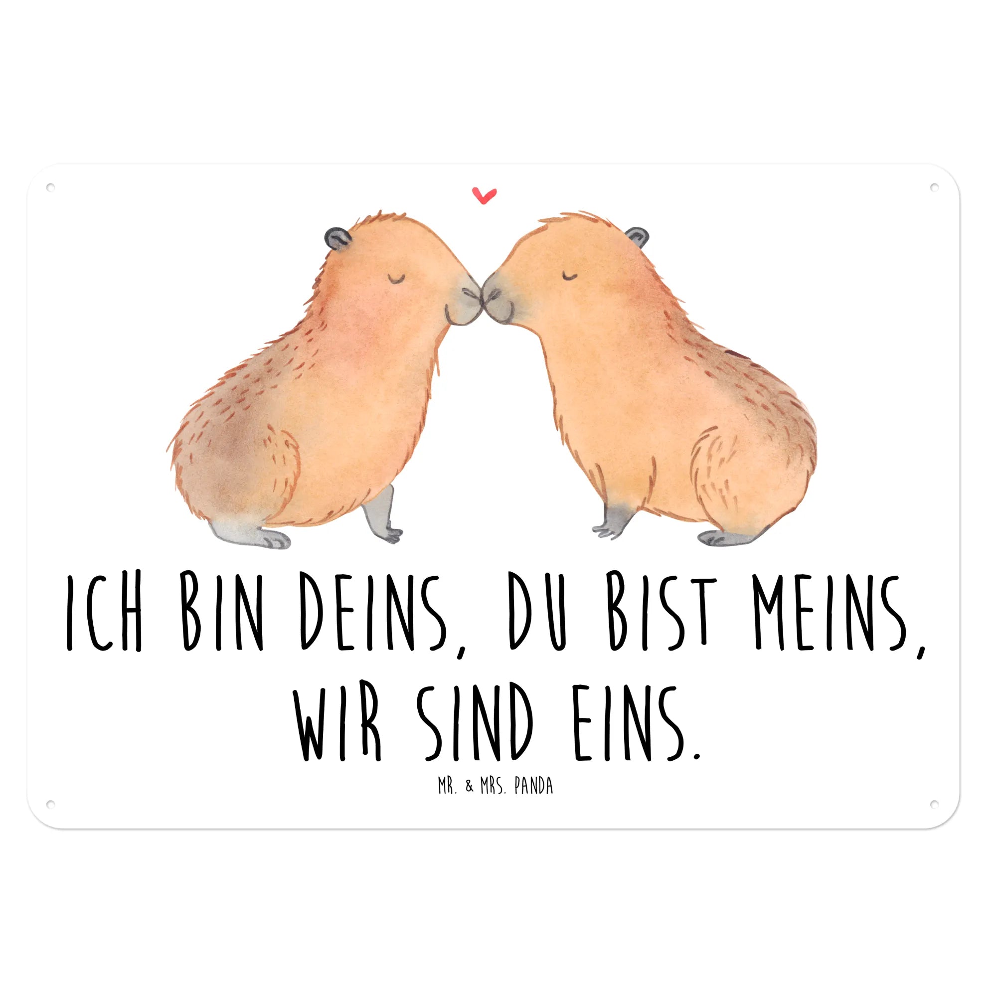 Du bist auf der Suche nach dem perfekten Geschenk für deinen Liebsten oder deine Liebste? Dann ist das traumhafte Blechschild mit dem Motiv "Capybara Liebe" aus der einzigartigen Small World Kollektion von Mr. & Mrs. Panda genau das Richtige für dich!