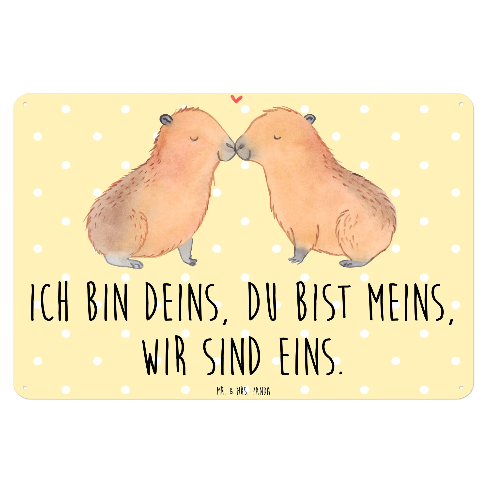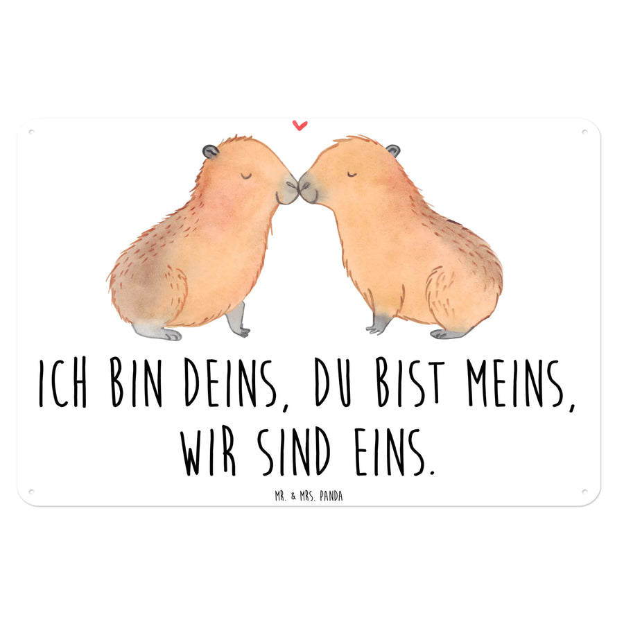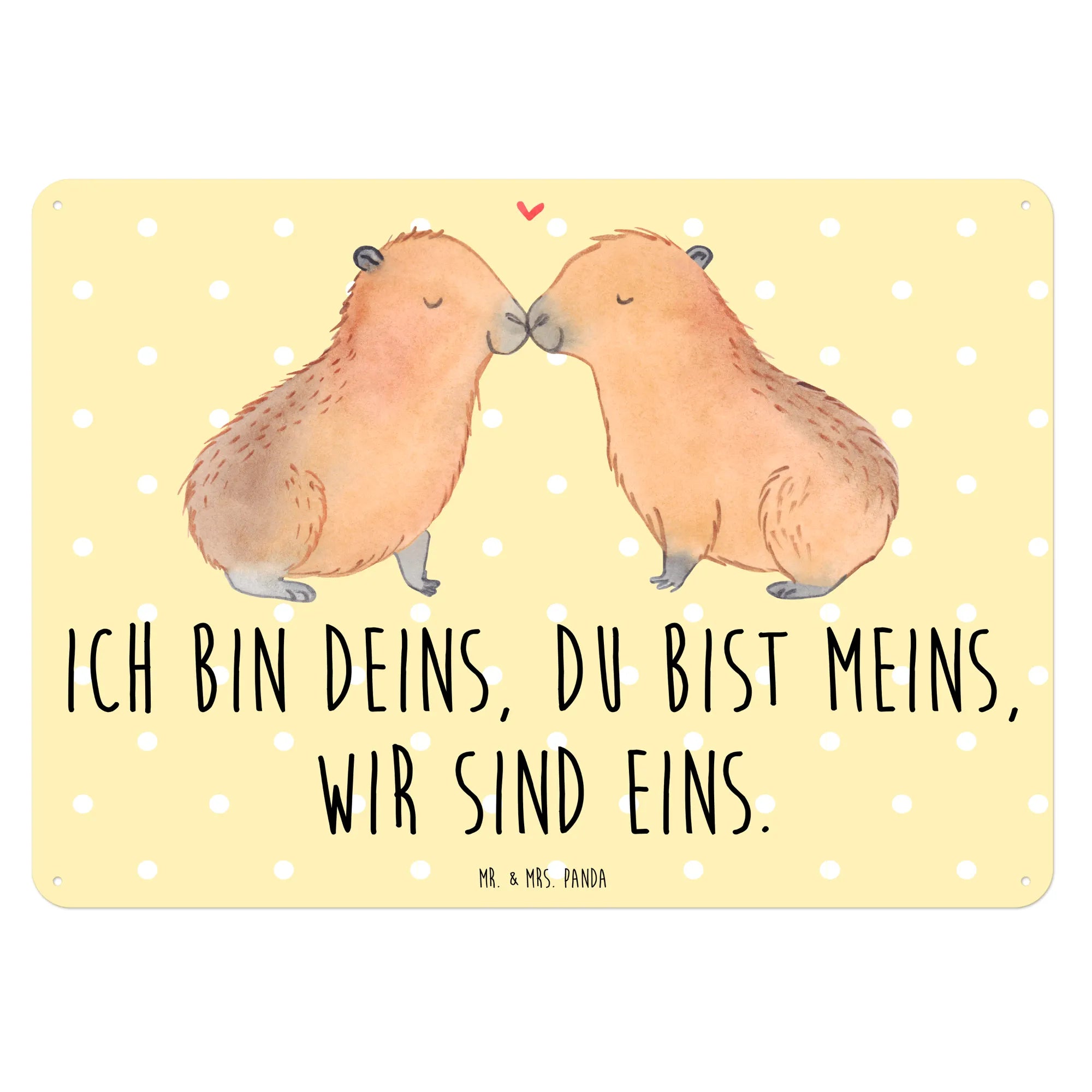 Du bist auf der Suche nach dem perfekten Geschenk für deinen Liebsten oder deine Liebste? Dann ist das traumhafte Blechschild mit dem Motiv "Capybara Liebe" aus der einzigartigen Small World Kollektion von Mr. & Mrs. Panda genau das Richtige für dich!