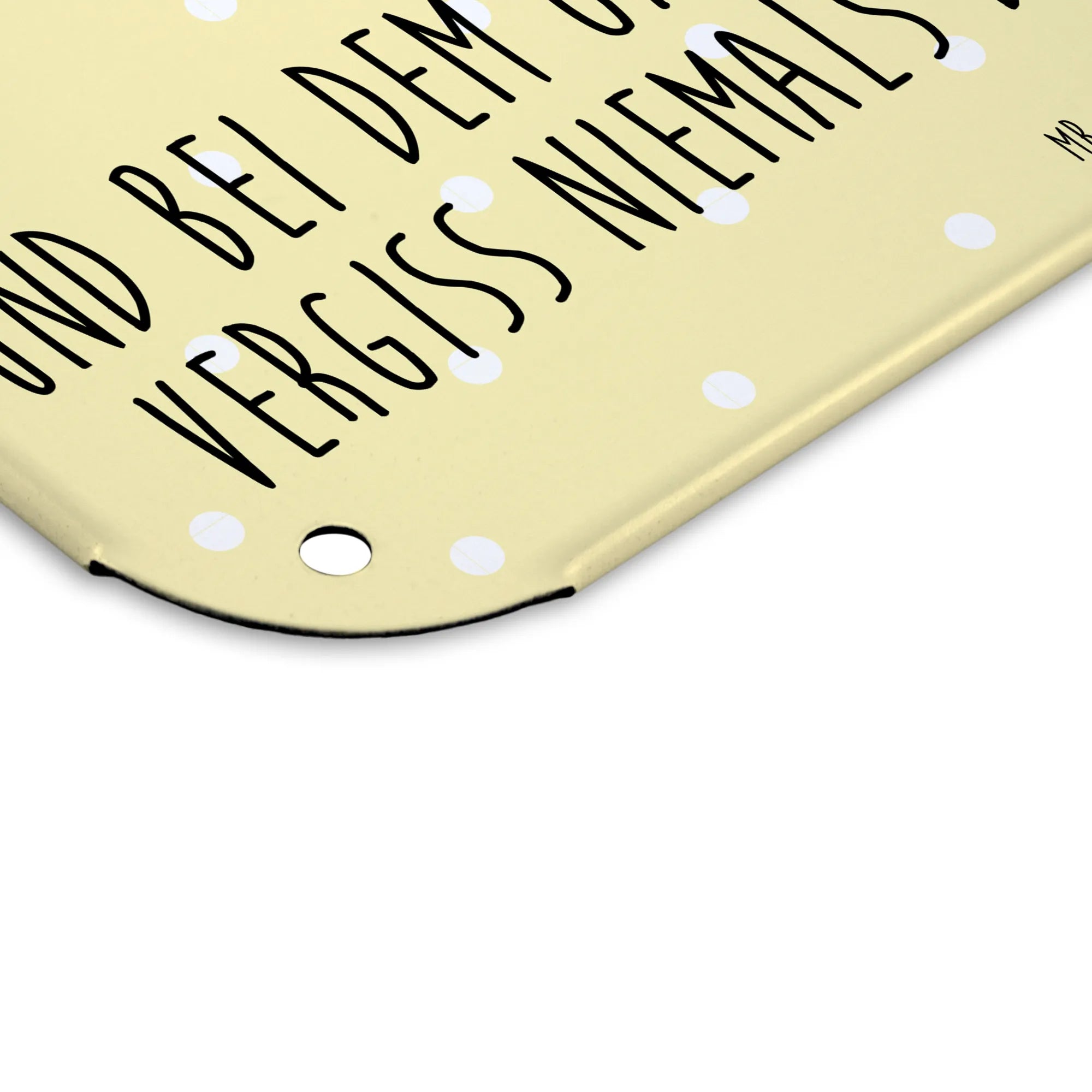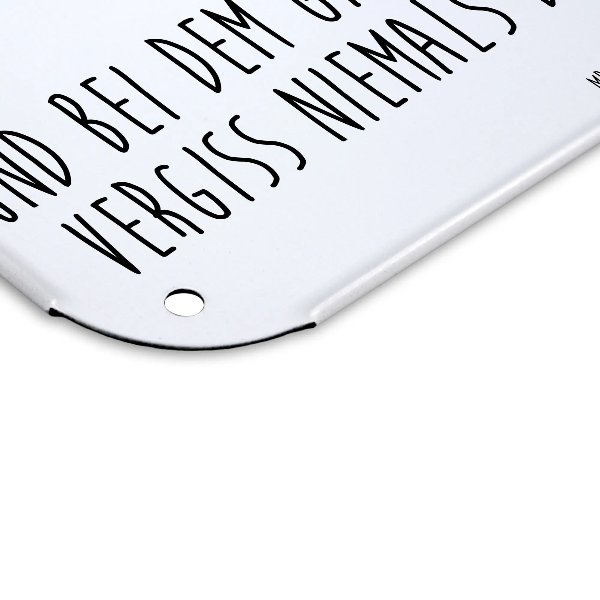 Das perfekte Stück für deine Wohnung: unser hochwertiges Blechschild von Mr. & Mrs. Panda! Mit den eindrucksvollen Maßen 146 mm x 148 mm x 105 mm, strahlt dieses Schild eine besondere Eleganz aus. Das edle Stahlblech ist doppelt beschichtet, sodass es langlebig und resistent gegen Verfärbungen bleibt. Der kreative Druck mit süßen Motiven und griffigen Sprüchen bringt Freude in jeden Raum und eignet sich hervorragend als Geschenkoption. Die seidenmatte Oberfläche wertet nicht nur das Schild selbst auf, sondern macht es auch zu einem zeitlosen Accessoire. Ob an der Wand oder der Tür - die Anbringung ist dank der 4 bereits vorgebohrten Löcher besonders einfach. Kanten und Ecken sind abgerundet und bilden somit ein sicheres Design für dein Zuhause. Dieses Blechschild passt perfekt in jeden Innenraum und lässt sich mühelos mit einem feuchten Tuch reinigen. Verfügbar in verschiedenen Größen, um sich harmonisch in dein Ambiente einzufügen.