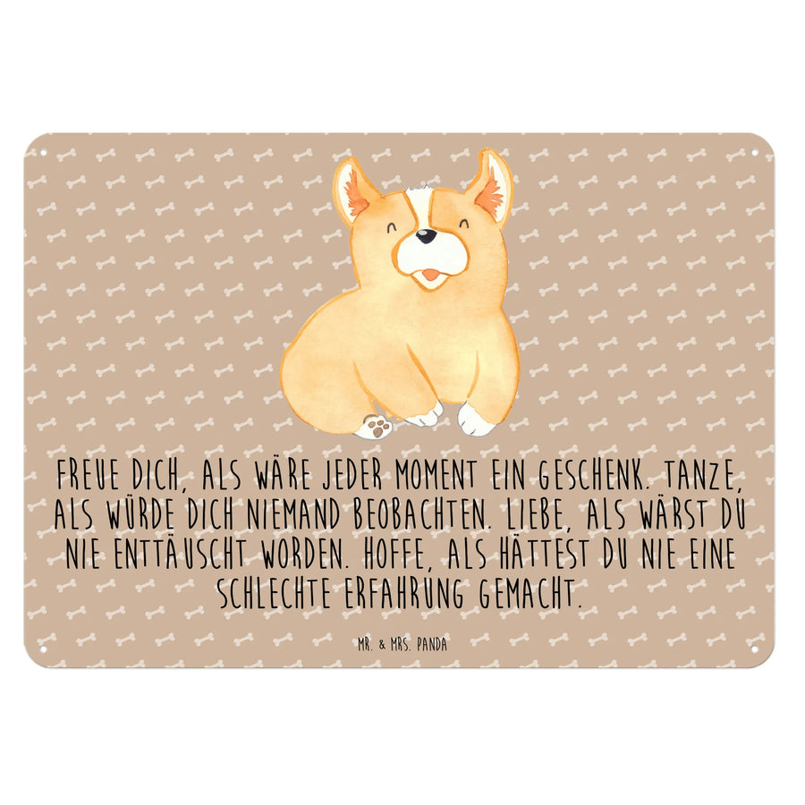 Dieses Blechschild ist ein Wohlfühlobjekt, das sowohl als Wanddekoration als auch als persönliches Türschild verwendet werden kann. Bring Freude und positive Vibes in deine Umgebung mit diesem wundervollen Corgi-Schild aus der Hunde Kollektion von Mr. & Mrs. Panda.
