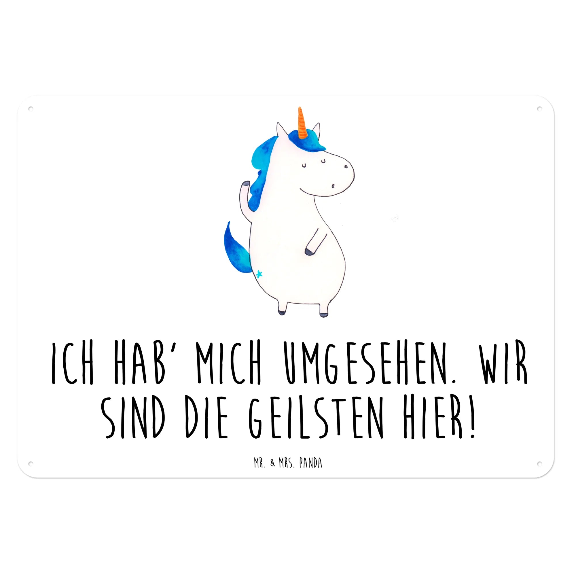 Das wunderschöne und edle Blechschild von Mr. & Mrs. Panda mit dem bezaubernden Motiv "Einhorn Mann" ist das perfekte Geschenk für jeden Einhorn-Liebhaber! Egal ob für die beste Freundin, den besten Freund oder für die Familie, dieses Schild wird jedem ein Lächeln ins Gesicht zaubern. Mit dem lustigen Spruch "Ich hab' mich umgesehen. Wir sind die Geilsten hier!" passt es perfekt zu jedem Anlass: Sei es als Deko für die nächste Party oder als coole Wanddekoration für dein Zimmer.