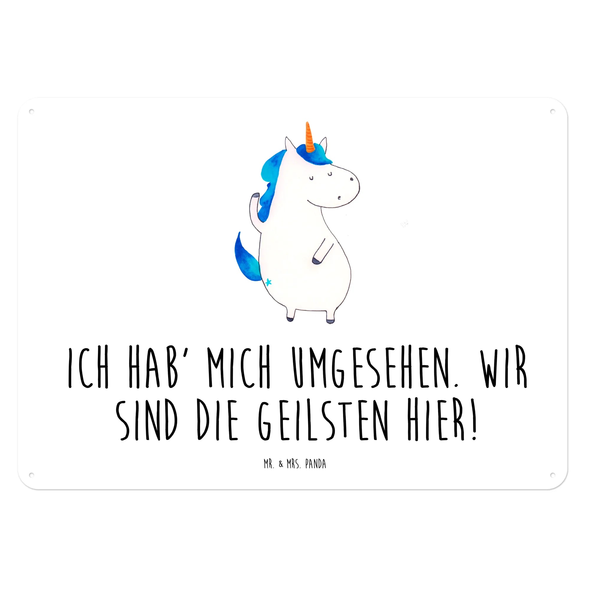 Das edle Blechschild "Einhorn Mann" von Mr. & Mrs. Panda ist der perfekte Begleiter für alle Einhornliebhaber! Dieses wunderschöne Metallschild ist nicht nur ein echter Hingucker, sondern auch eine wunderbare Geschenkidee für Deine Freunde, die Familie oder sogar für Dich selbst! Das Motiv zeigt ein cooles Einhorn mit dem Spruch "Ich hab' mich umgesehen. Wir sind die Geilsten hier!" und verbreitet sofort gute Laune und eine positive Atmosphäre.