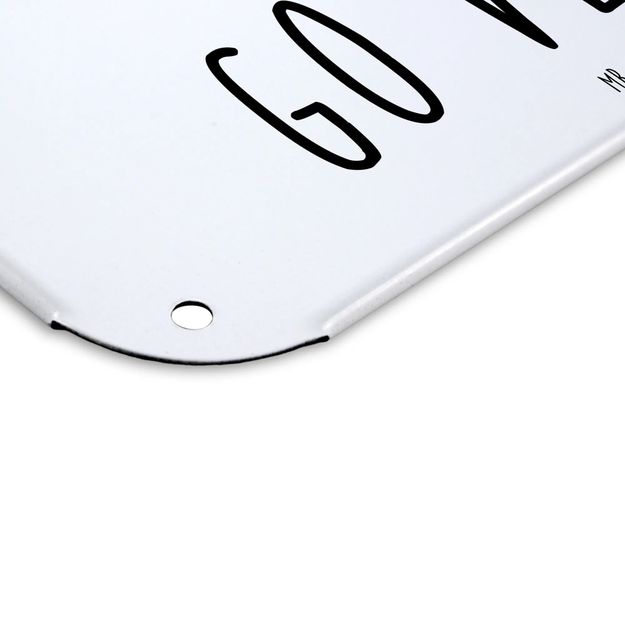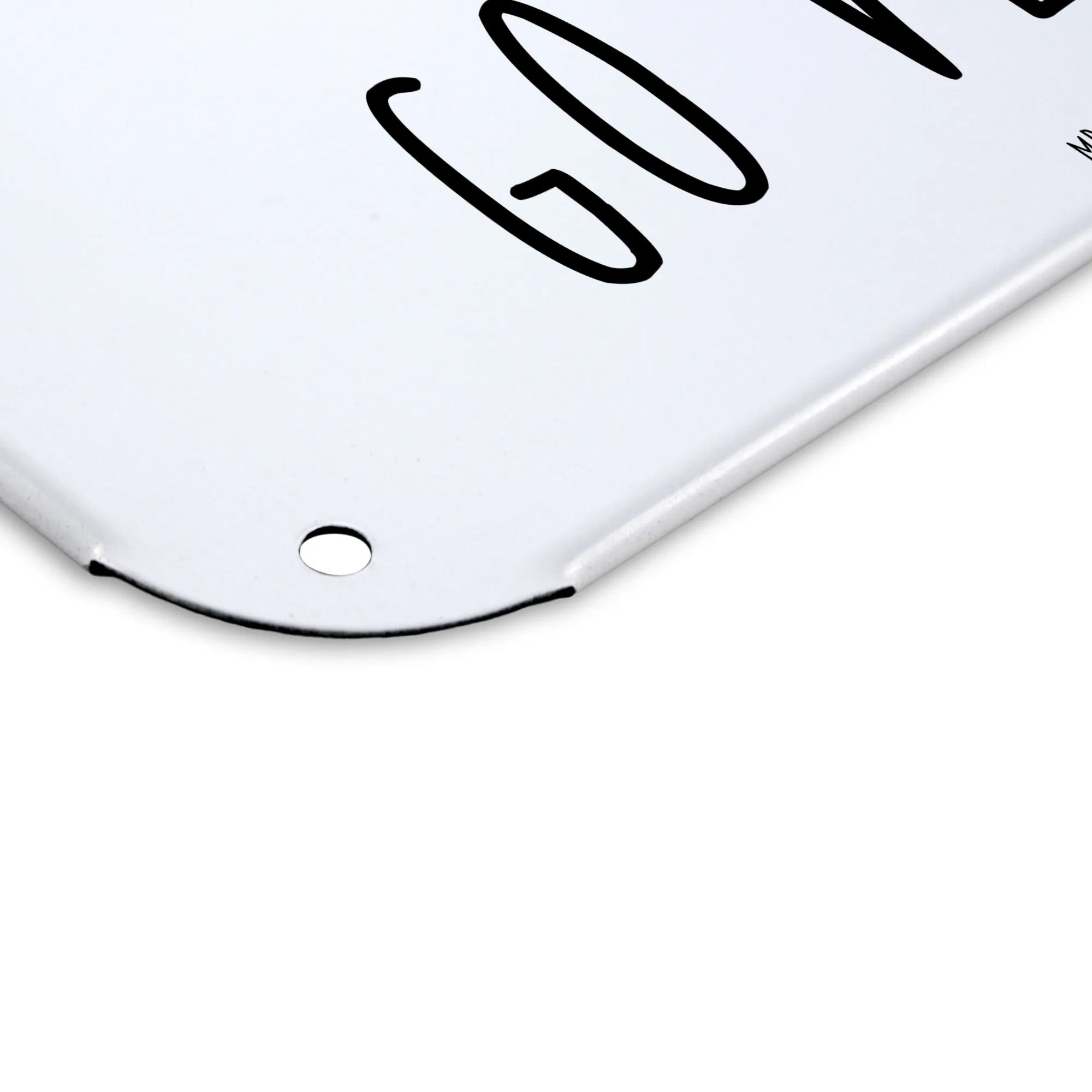 Das perfekte Stück für deine Wohnung: unser hochwertiges Blechschild von Mr. & Mrs. Panda! Mit den eindrucksvollen Maßen 146 mm x 148 mm x 105 mm, strahlt dieses Schild eine besondere Eleganz aus. Das edle Stahlblech ist doppelt beschichtet, sodass es langlebig und resistent gegen Verfärbungen bleibt. Der kreative Druck mit süßen Motiven und griffigen Sprüchen bringt Freude in jeden Raum und eignet sich hervorragend als Geschenkoption. Die seidenmatte Oberfläche wertet nicht nur das Schild selbst auf, sondern macht es auch zu einem zeitlosen Accessoire. Ob an der Wand oder der Tür - die Anbringung ist dank der 4 bereits vorgebohrten Löcher besonders einfach. Kanten und Ecken sind abgerundet und bilden somit ein sicheres Design für dein Zuhause. Dieses Blechschild passt perfekt in jeden Innenraum und lässt sich mühelos mit einem feuchten Tuch reinigen. Verfügbar in verschiedenen Größen, um sich harmonisch in dein Ambiente einzufügen.