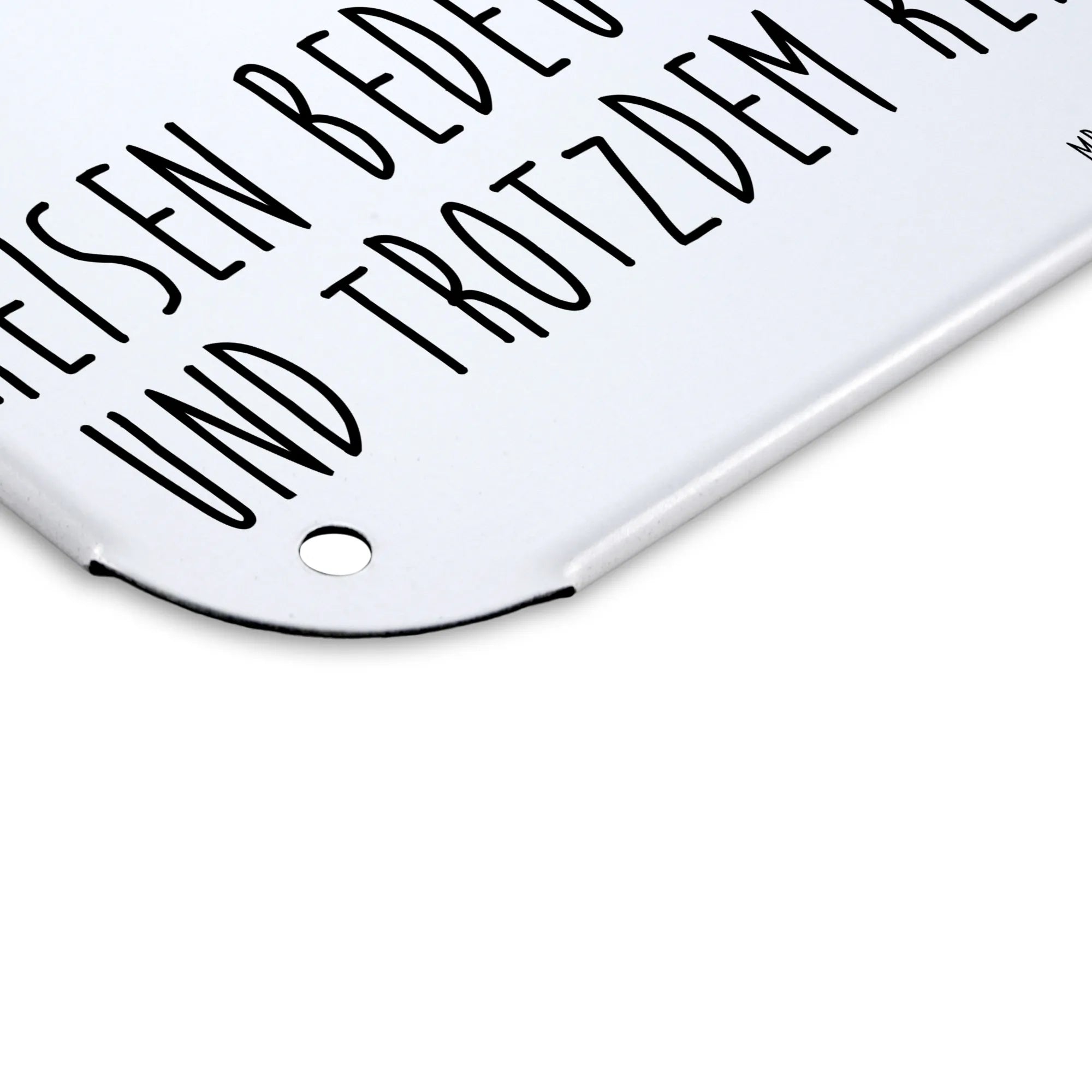 Aber das ist noch nicht alles! Das Schild ist sorgfältig mit einer edlen, seidenmatten Oberfläche versehen und besticht durch seine langlebige Druckqualität. Es ist nicht personalisierbar, doch der handgezeichnete Look und das liebevoll gestaltete Motiv machen es zu einem einzigartigen Stück. Außerdem hat das Schild 4 Bohrungen, die eine einfache und optimale Befestigung ermöglichen, sodass du es schnell aufhängen kannst, wo immer du möchtest.