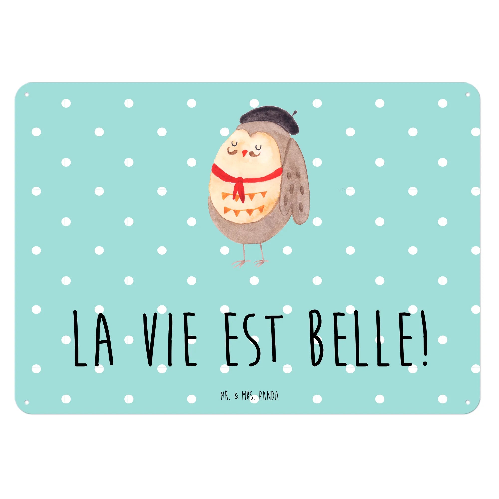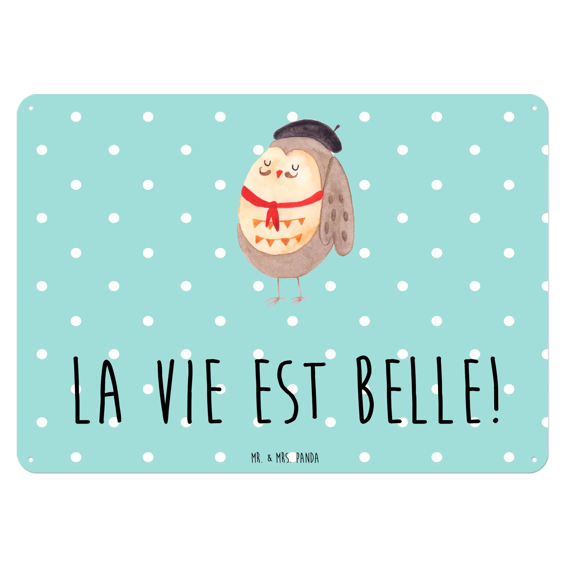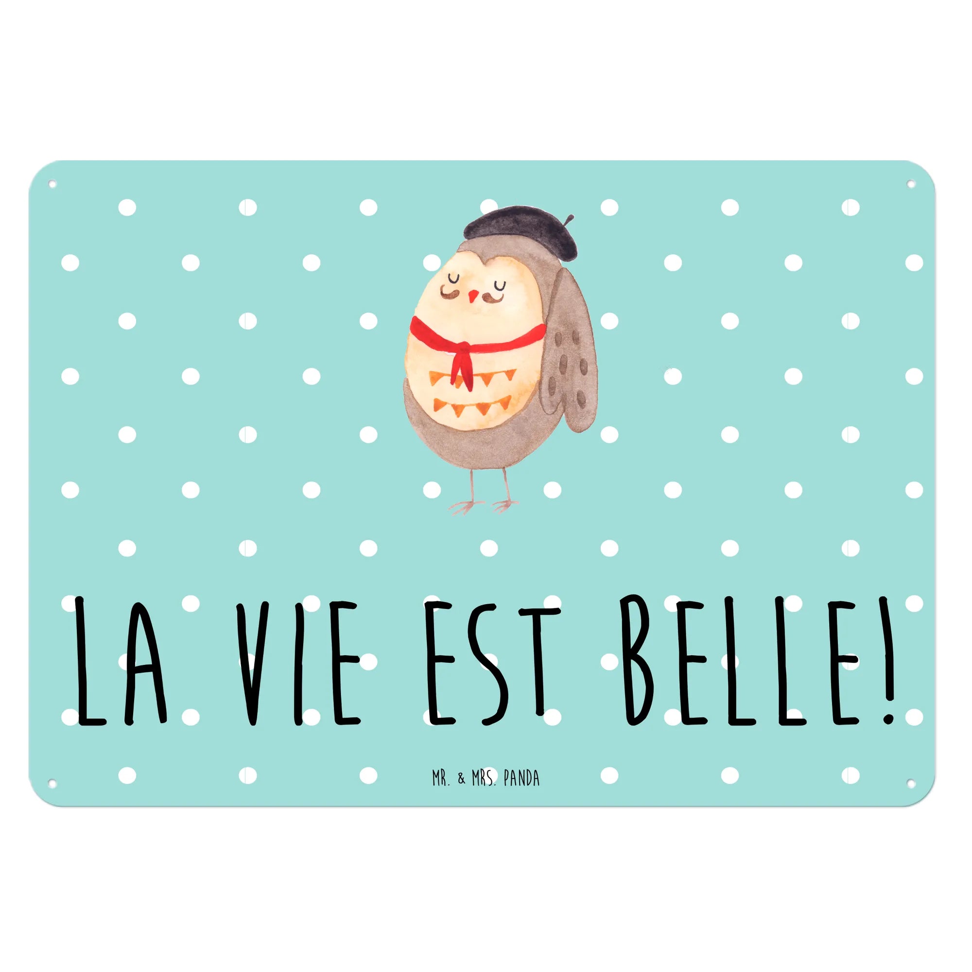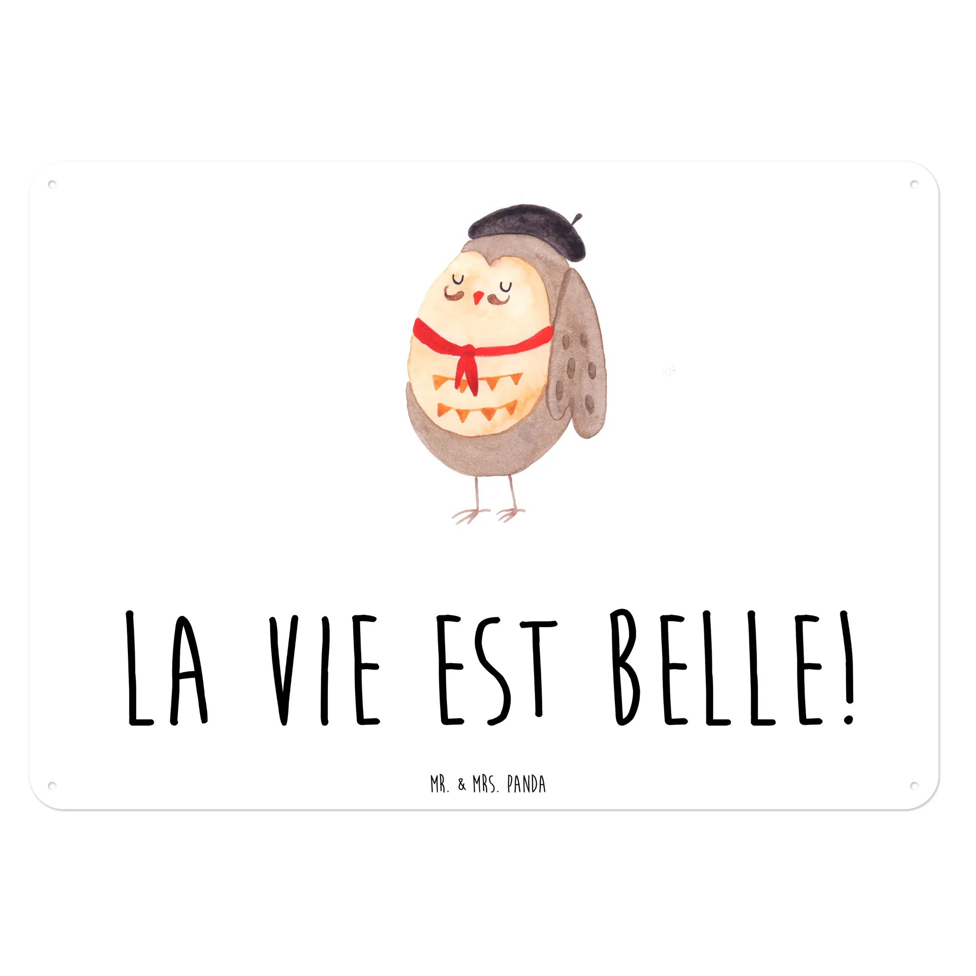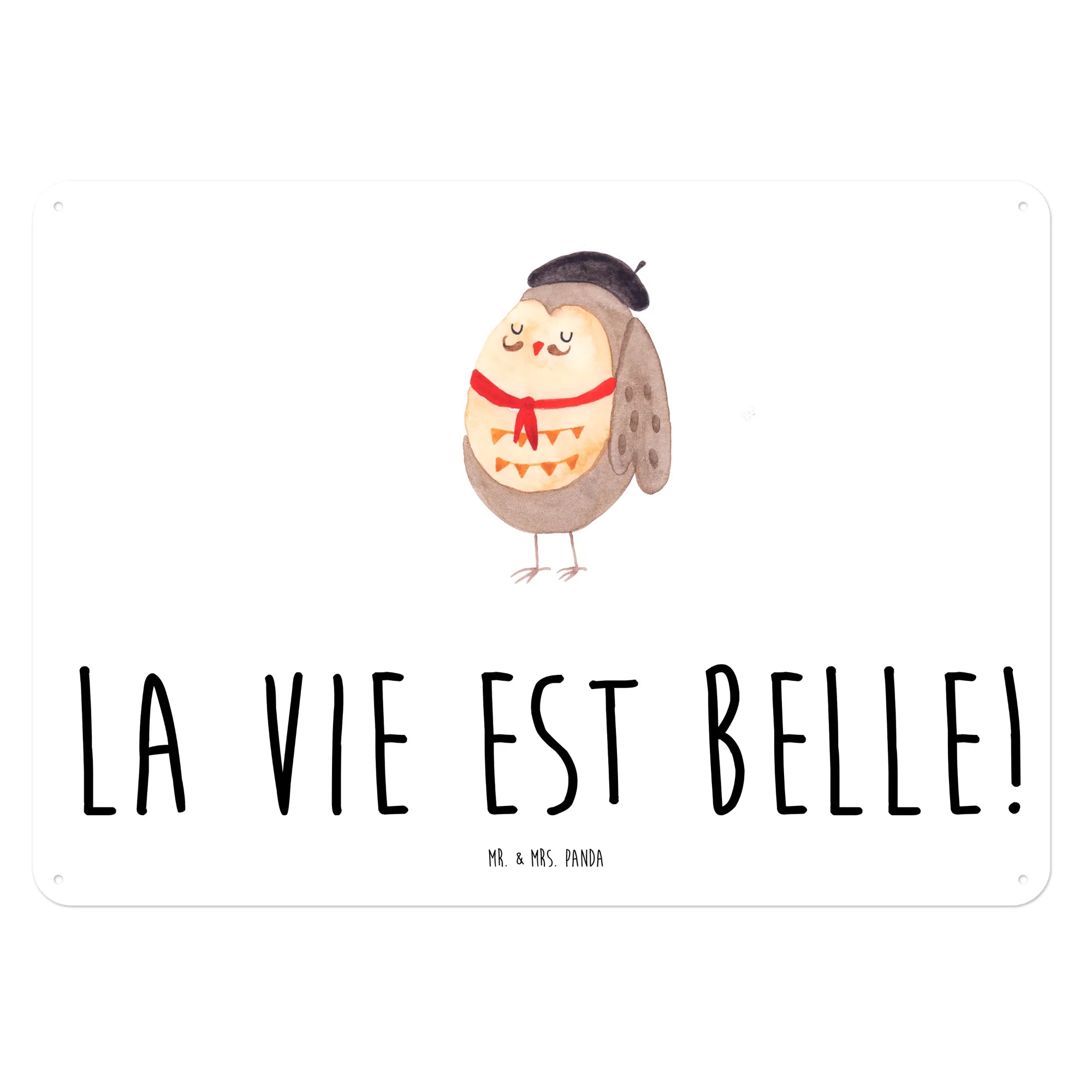 Entdecke unser wunderschönes und edles Blechschild mit dem entzückenden Motiv der Eule im französischen Stil von Mr. & Mrs. Panda! Dieses charmante Wandschild mit dem Spruch "La vie est belle!" bringt ein Stück französisches Flair in dein Zuhause.