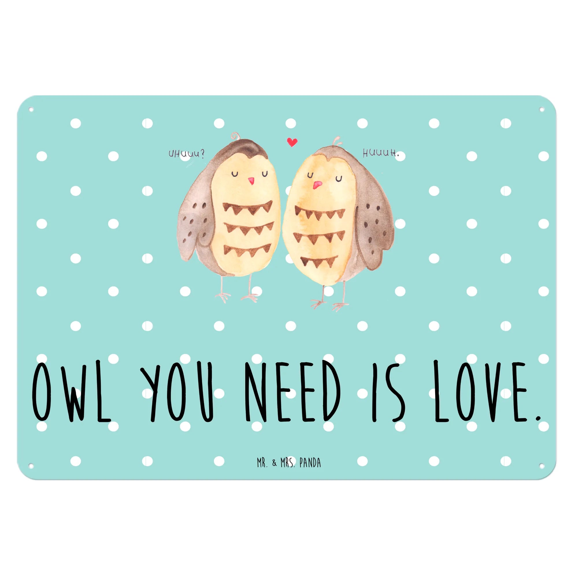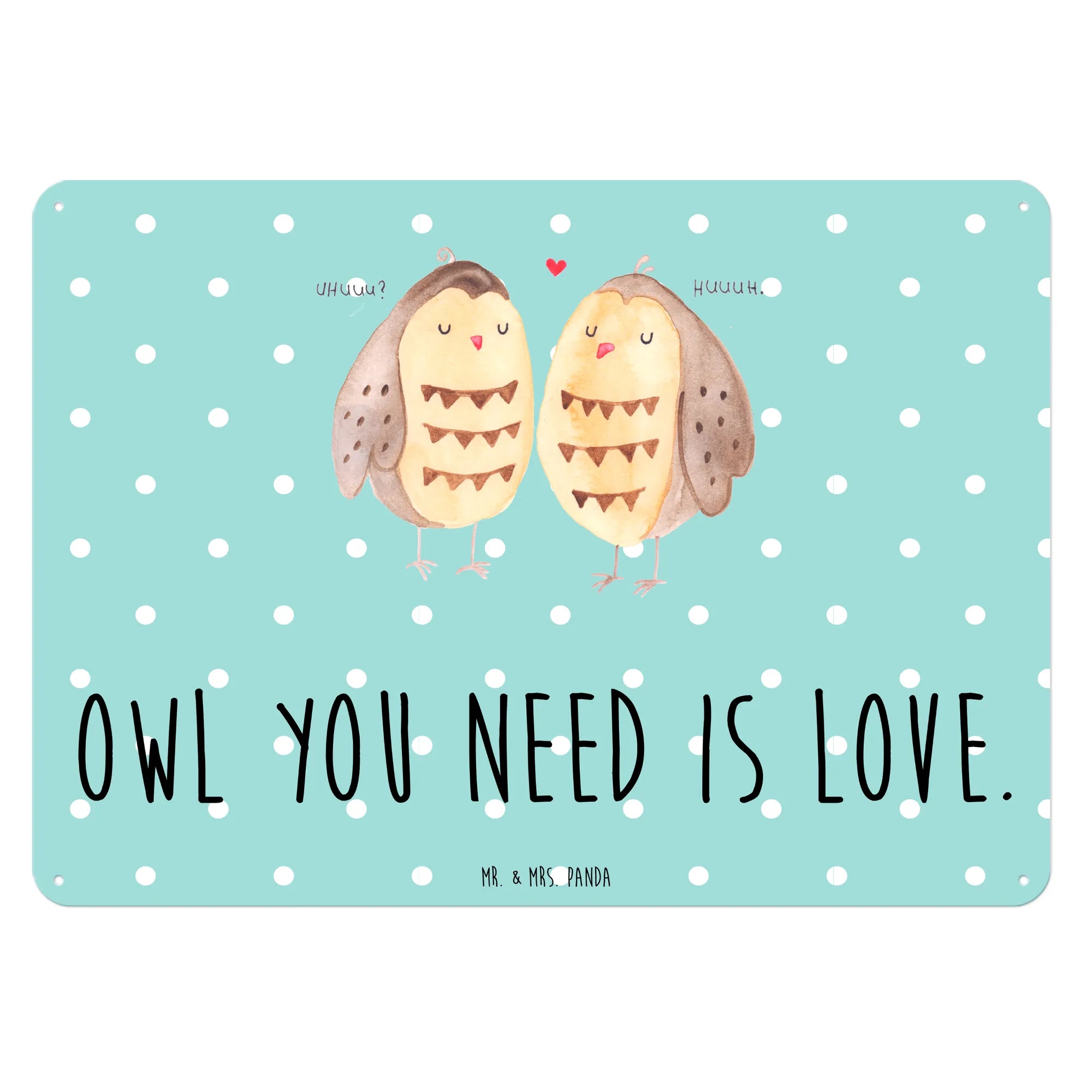 Du bist auf der Suche nach einem liebevollen Geschenk für deine Liebsten oder möchtest dein Zuhause mit einer charmanten Dekoration aufpeppen? Dann ist das wunderschöne Blechschild mit dem Motto "Owl you need is love" aus der zauberhaften Eulen-Kollektion von Mr. & Mrs. Panda genau das Richtige für dich!