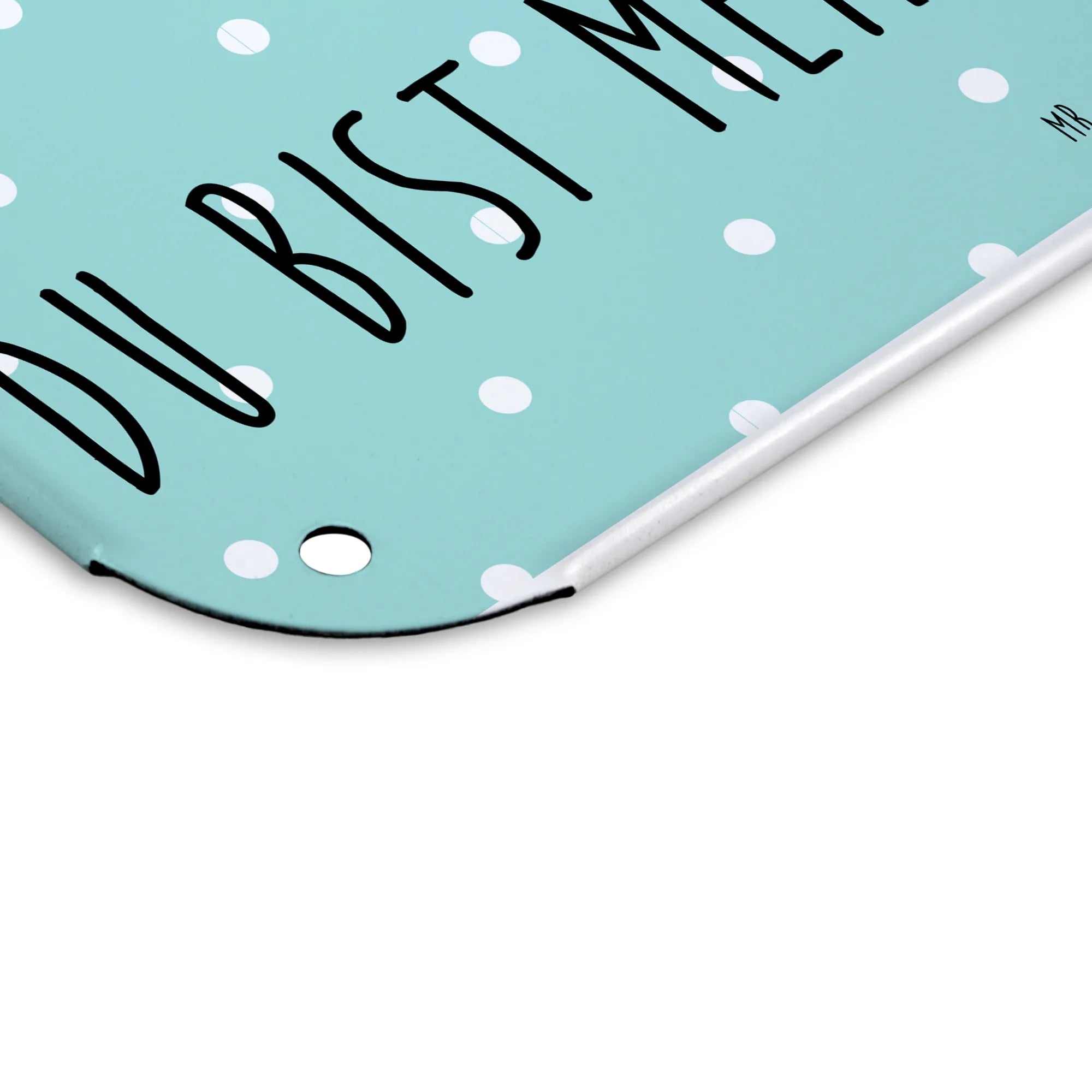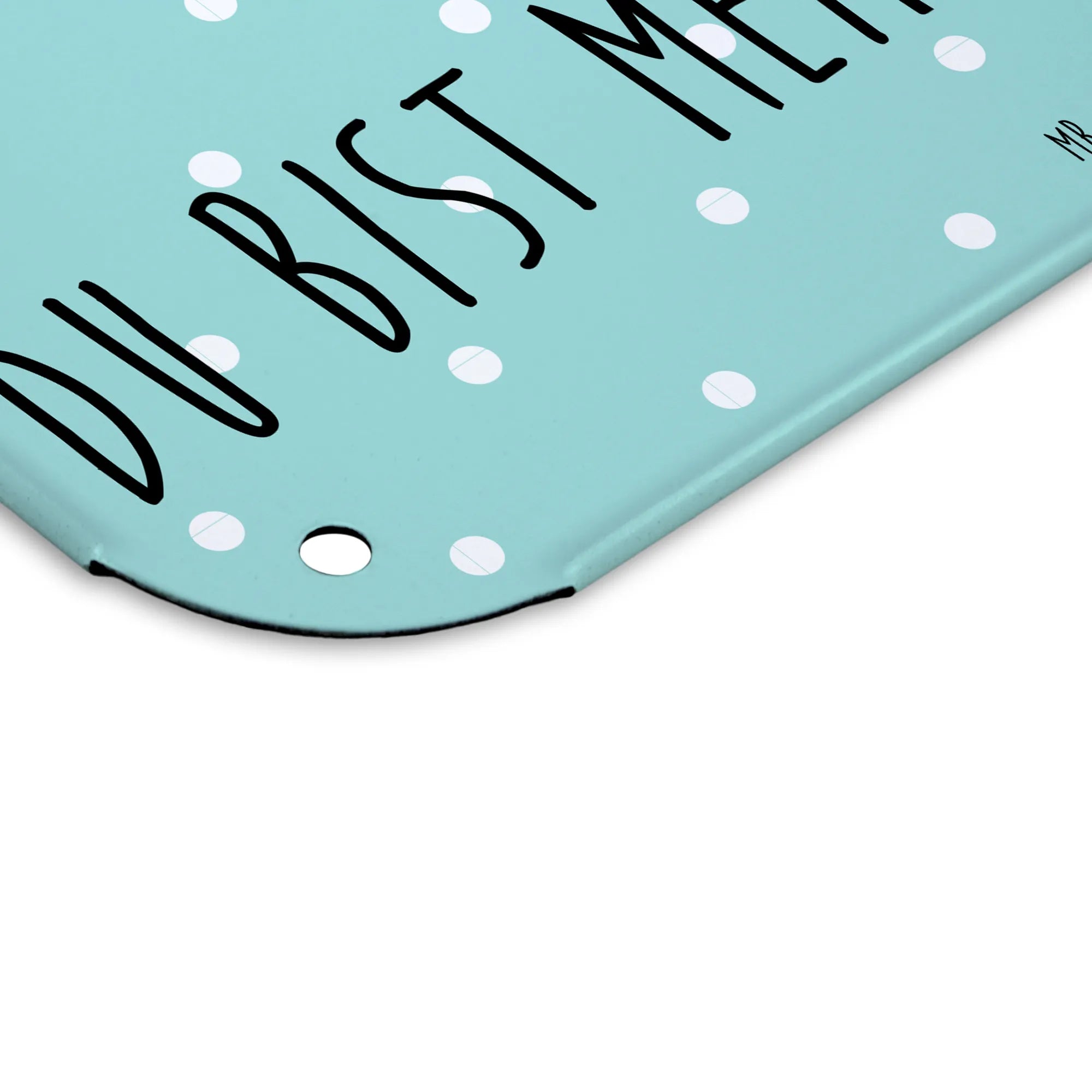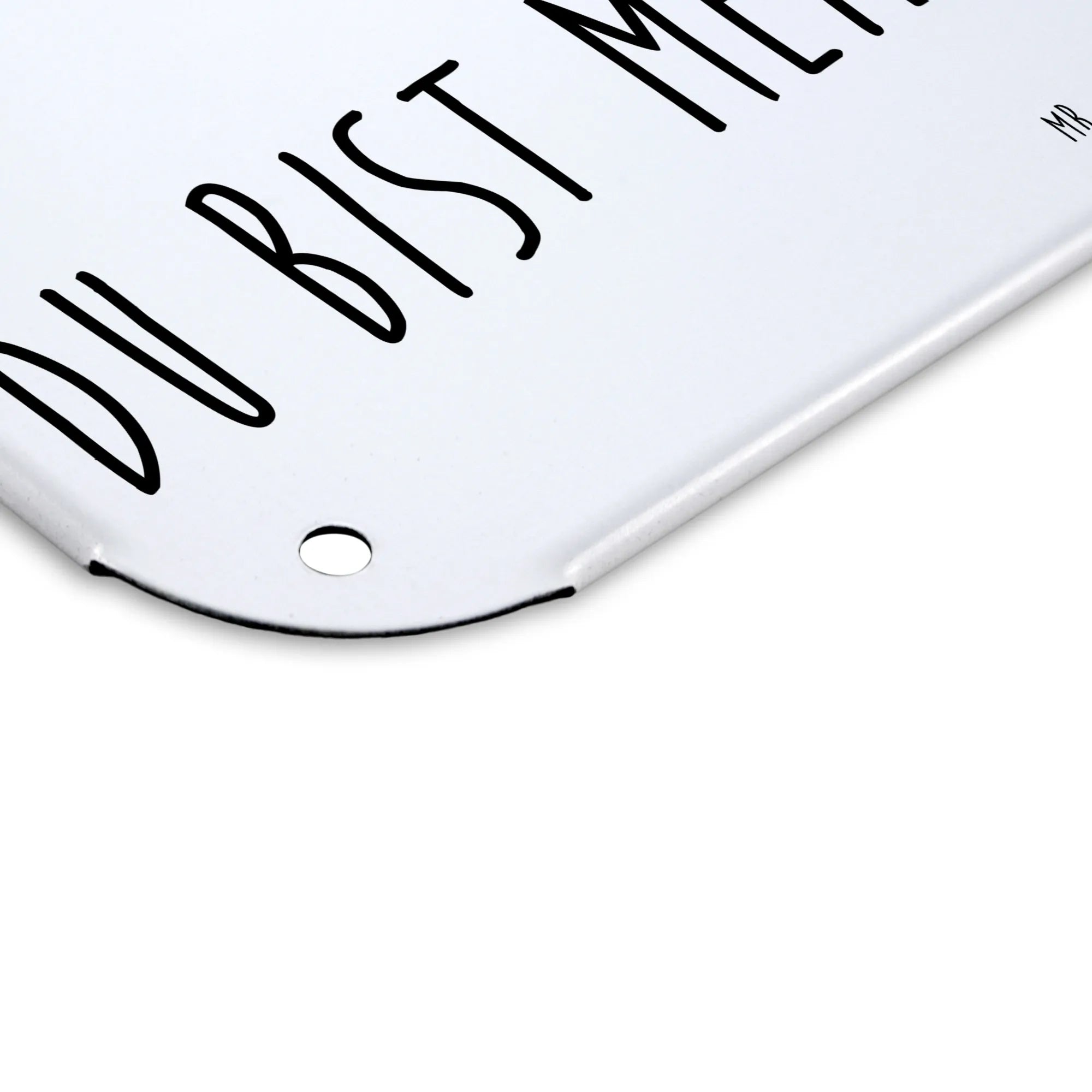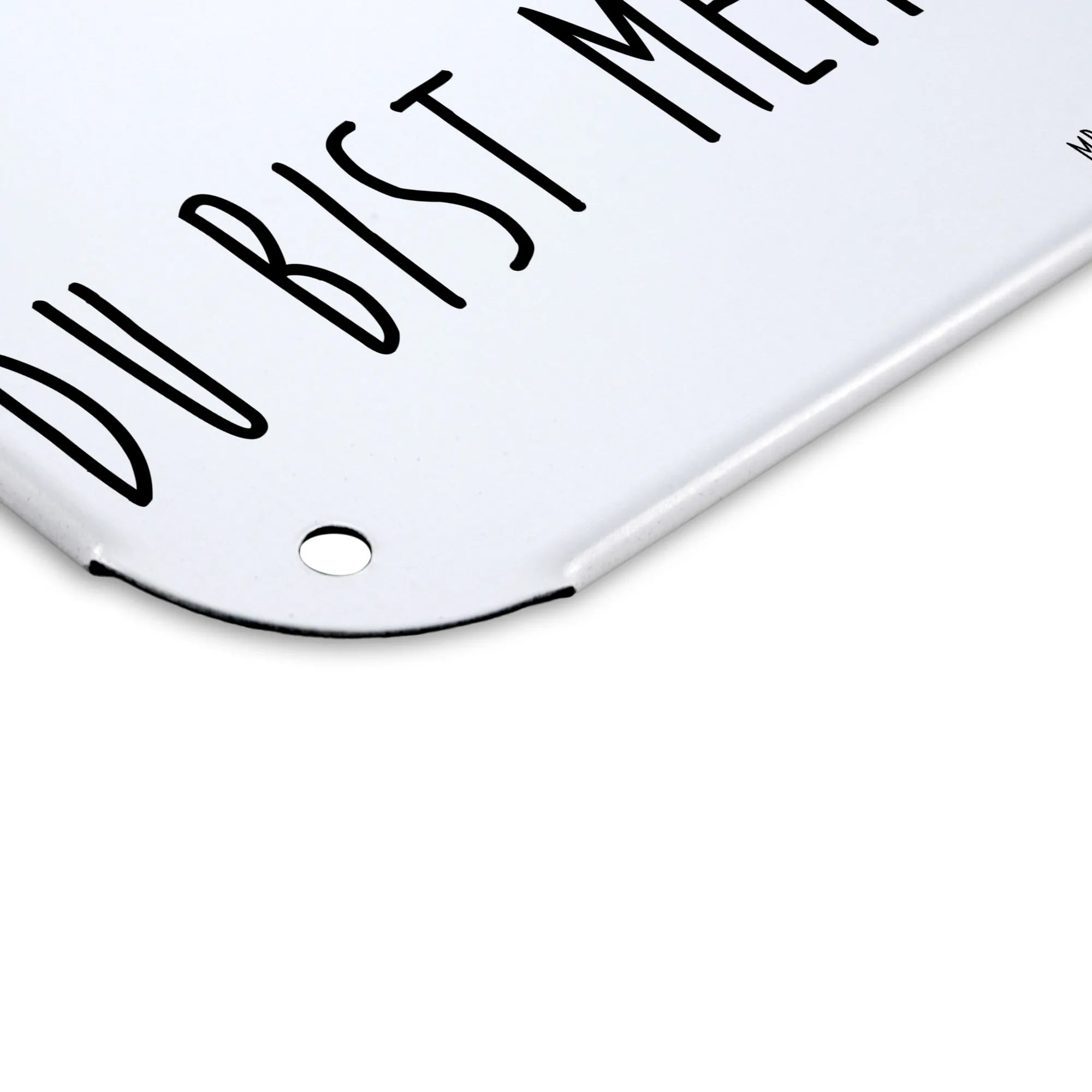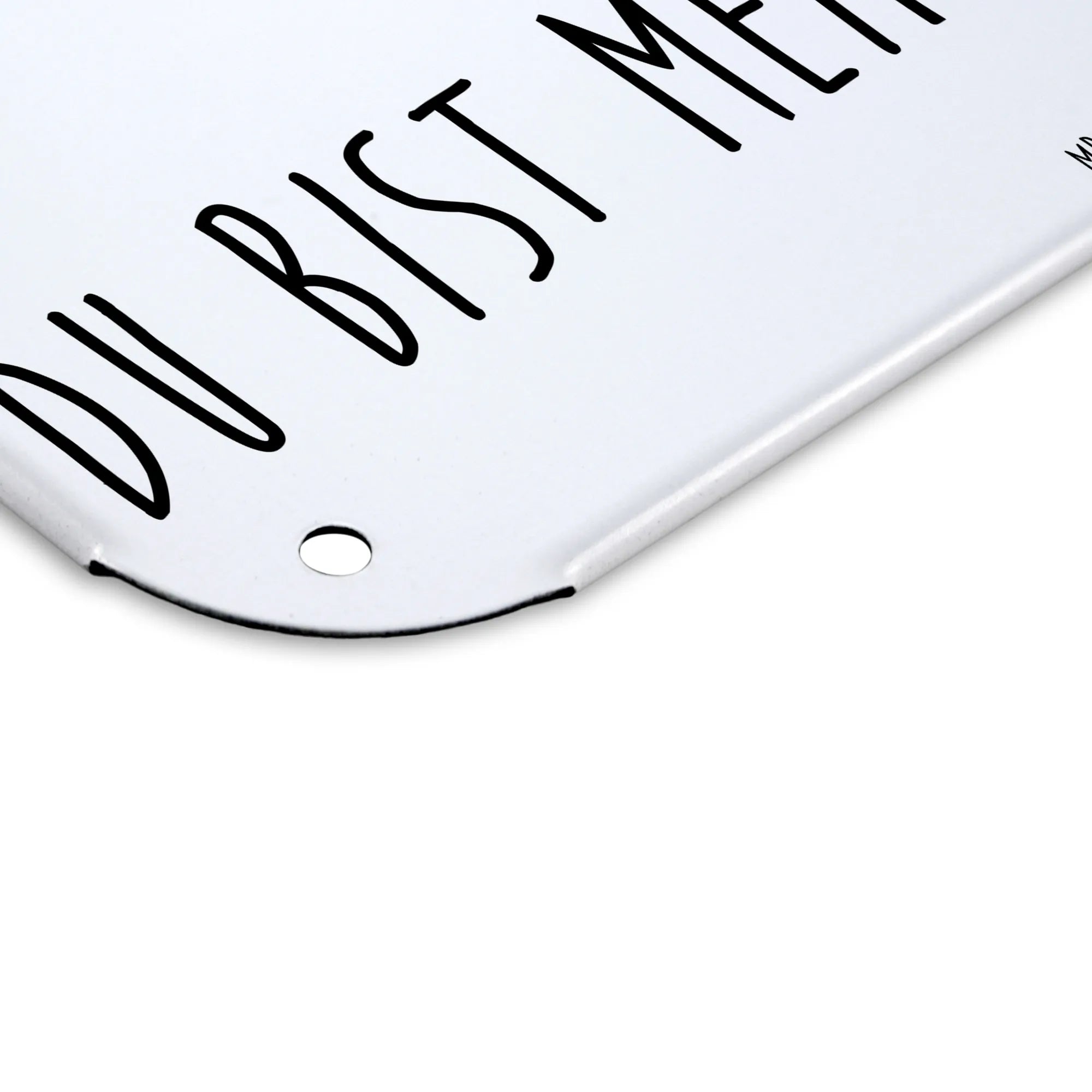 Verleih deinem Zuhause eine persönliche Note mit diesem Blechschild von Mr. & Mrs. Panda! Es misst 146 mm x 297 mm x 210 mm und ist ideal für die Anbringung an Wänden oder Türen. Gefertigt aus edlem Stahlblech, zeigt es sich in seidenmattem Druck, der sowohl schön als auch langlebig ist. Die abgerundeten Ecken und gefalzten Kanten machen es zum sicheren und attraktiven Dekostück. Mit 4 Bohrungen ausgestattet, bekommst du das Schild leicht und sicher montiert. Ob als persönliches Geschenk oder als liebevolle Dekoration – dieses Schild bereichert jedes Ambiente. Pflege es ganz einfach mit einem feuchten Tuch und genieße die positive Ausstrahlung, die Mr. & Mrs. Panda in dein Zuhause bringt!