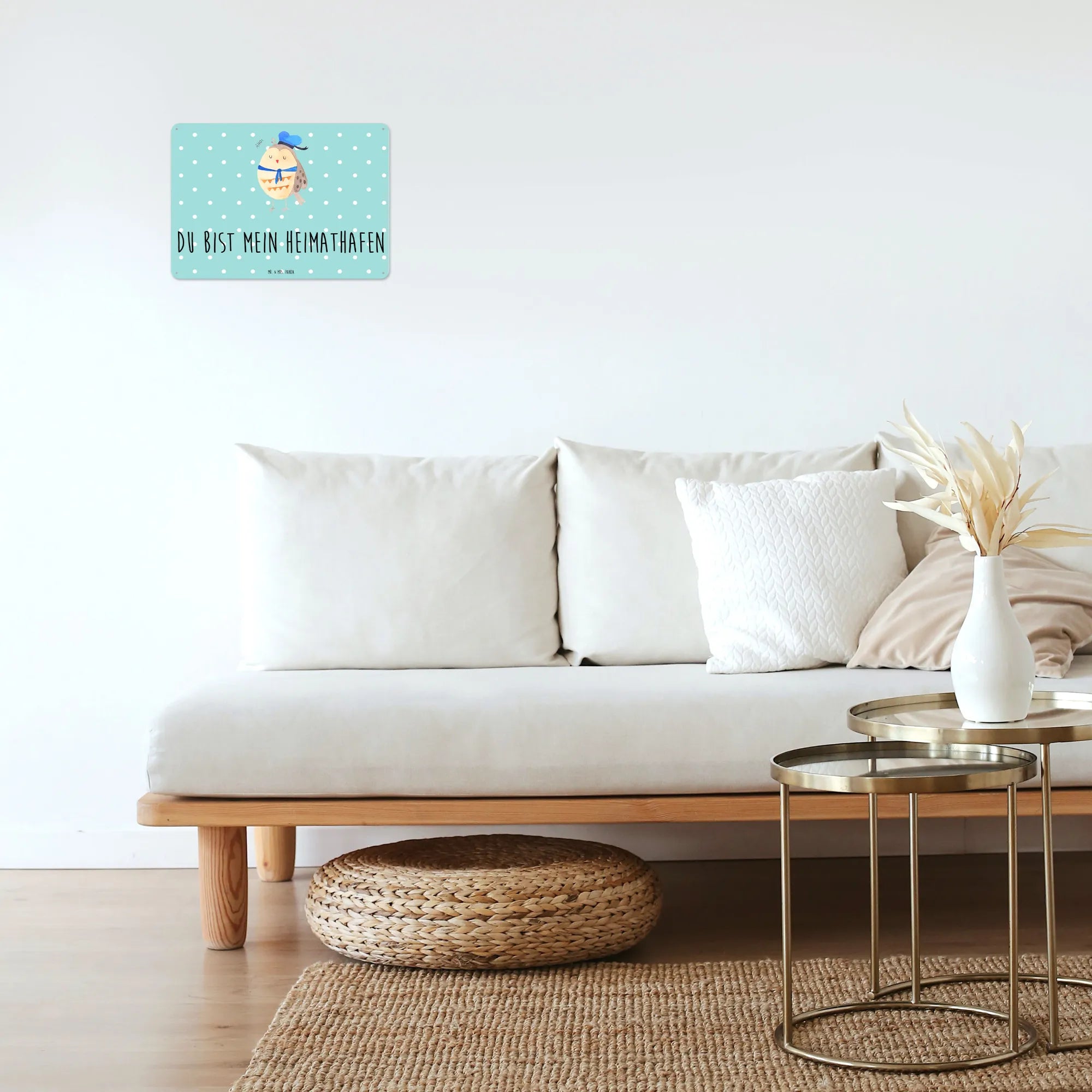 Entdecke das bezaubernde Blechschild mit der lustigen Eule Matrosen aus der Eulen Kollektion von Mr. & Mrs. Panda! Dieses edle Schild ist nicht nur ein Blickfang für deine Wand, sondern auch eine liebevolle Botschaft: "Du bist mein Heimathafen." Es strahlt Freundlichkeit und eine Portion Humor aus, die jeden Raum auflockert und zum Lächeln einlädt.