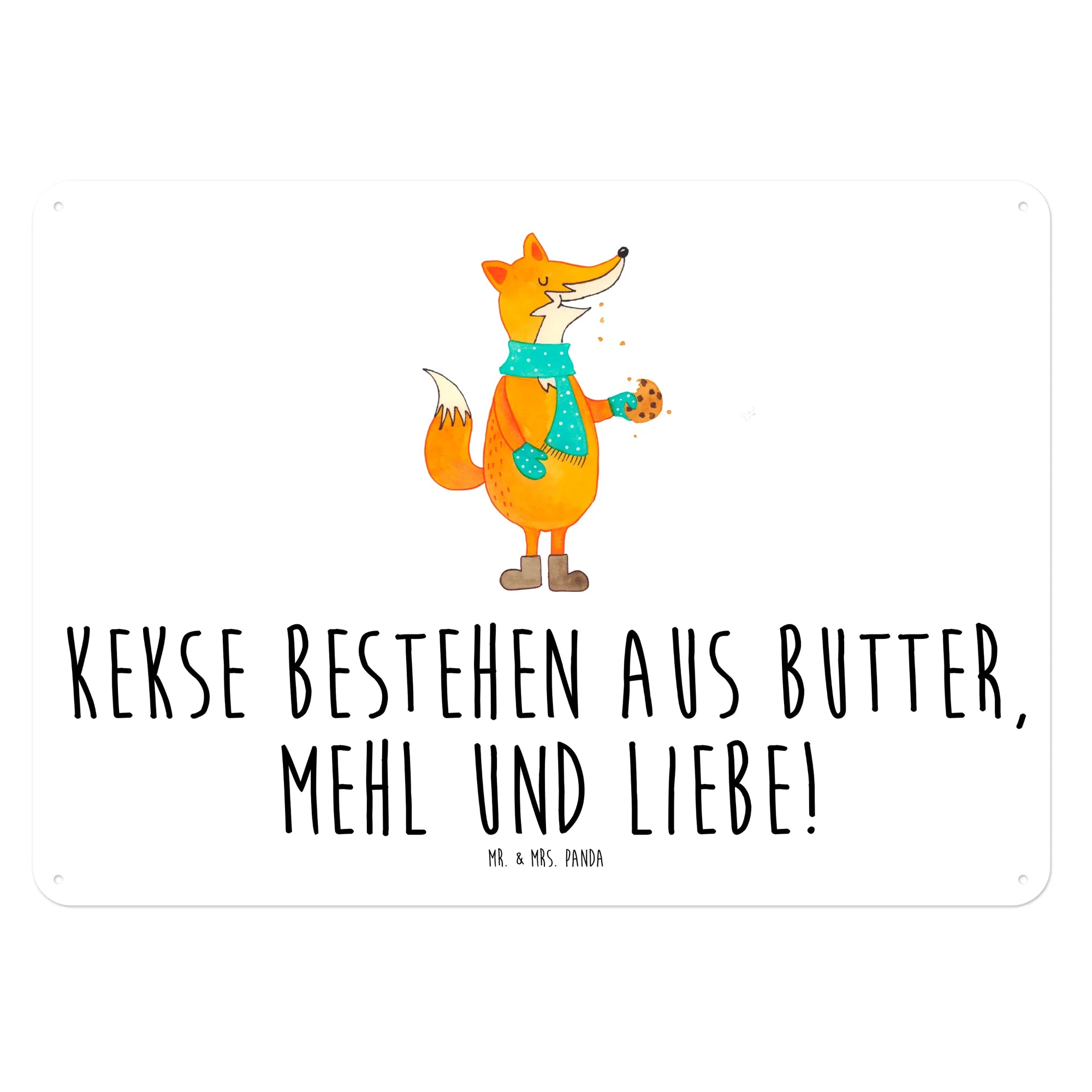 Das edle Blechschild Fuchs Keks von Mr. & Mrs. Panda ist der perfekte Begleiter für alle, die die süße Versuchung von Keksen lieben!