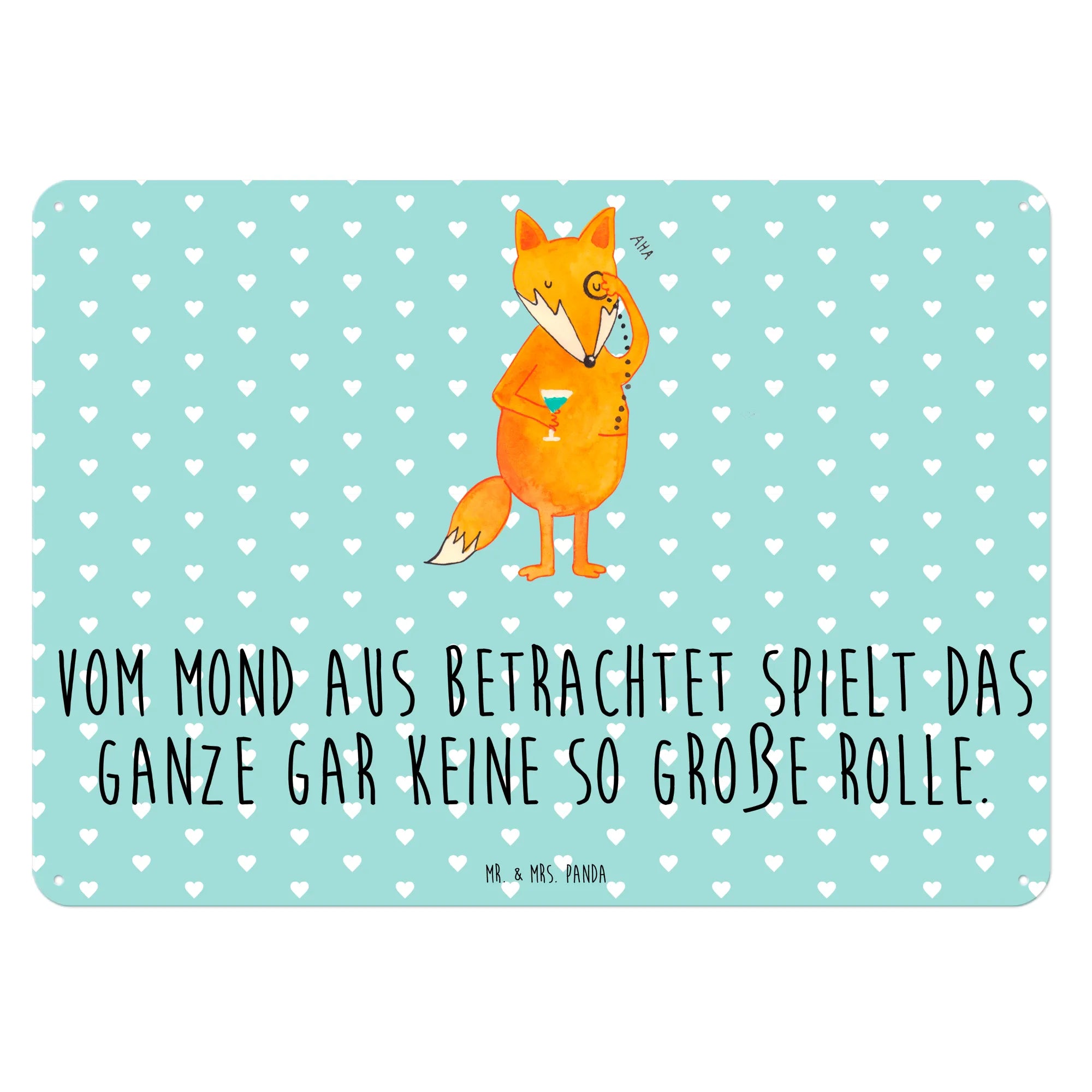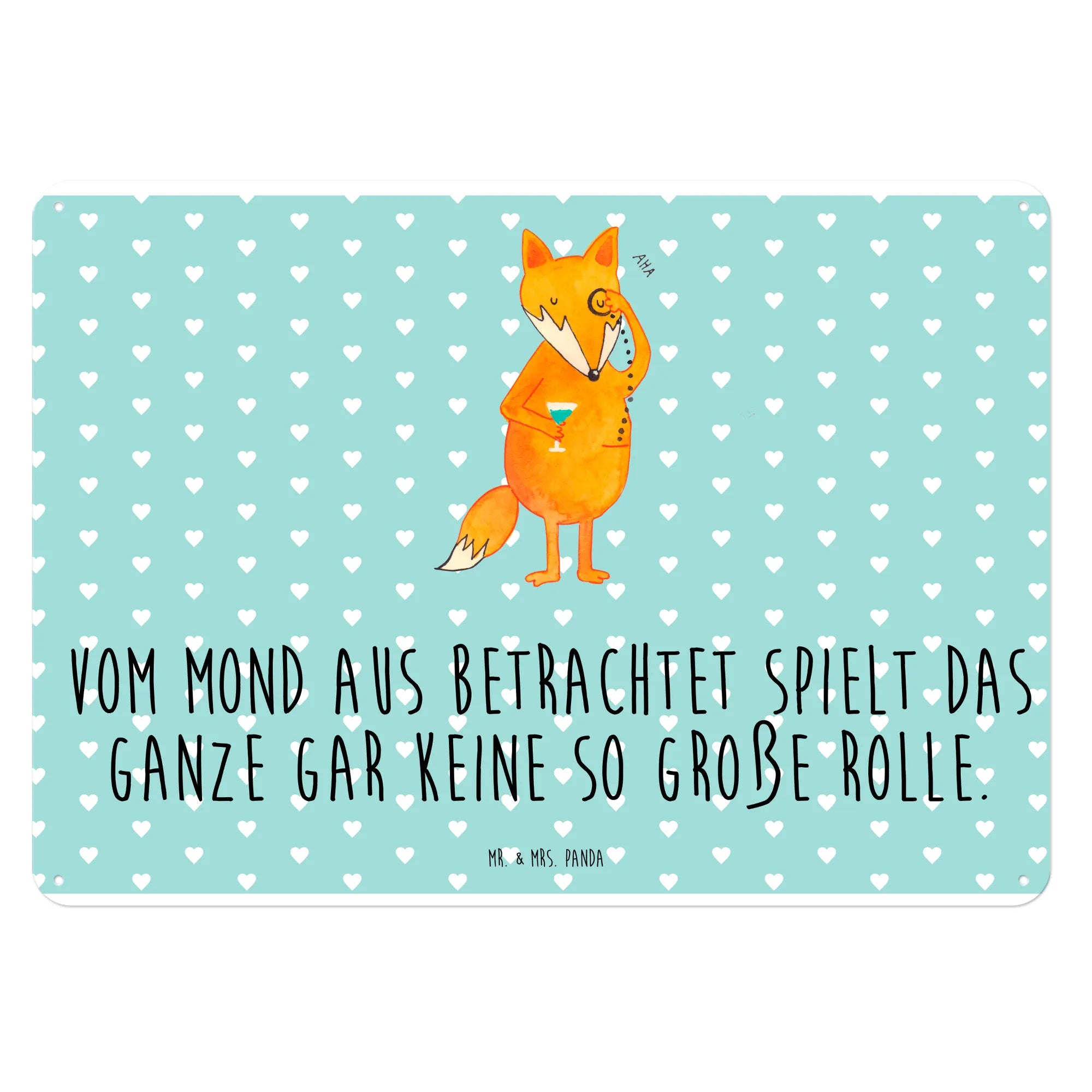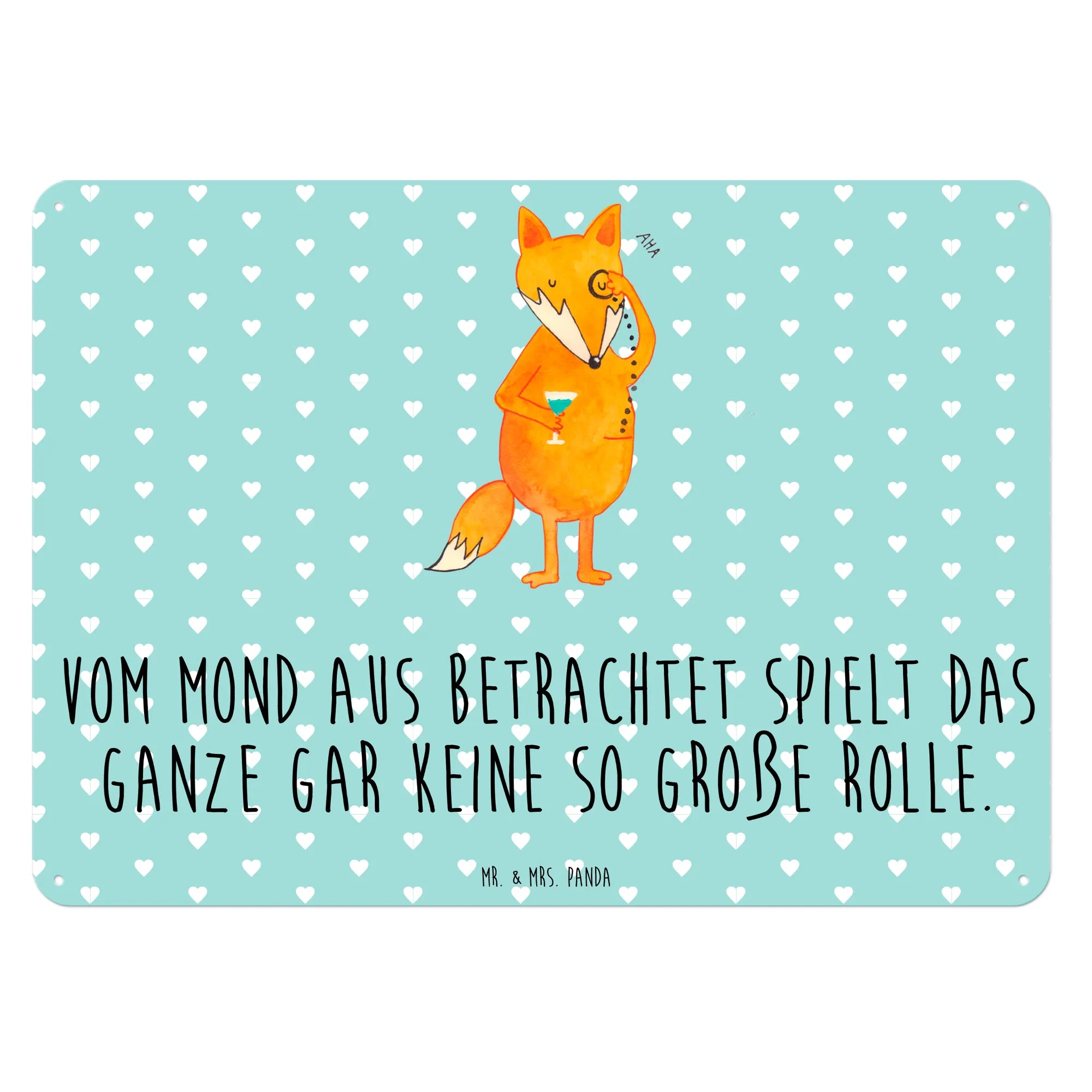 Das edle Blechschild "Fuchs Lord" von Mr. & Mrs. Panda ist nicht nur ein wundervolles Deko-Element, sondern auch ein perfektes Geschenk für viele Anlässe. Mit einem charmanten Fuchs, der ein Monokel trägt, bringt dieses Schild nicht nur Freude in Dein Zuhause, sondern auch ein wenig Weisheit mit dem Spruch: "Vom Mond aus betrachtet spielt das Ganze gar keine so große Rolle."