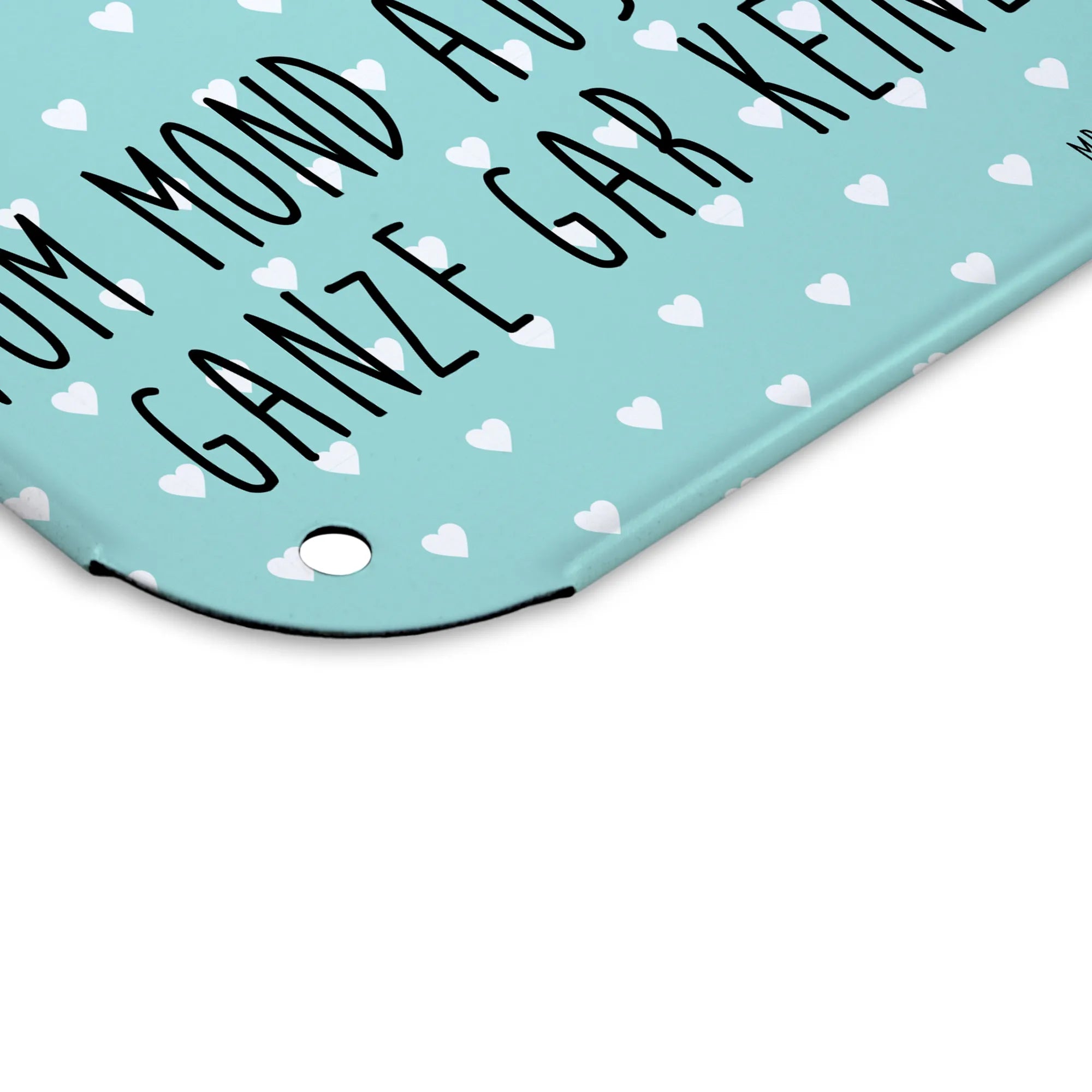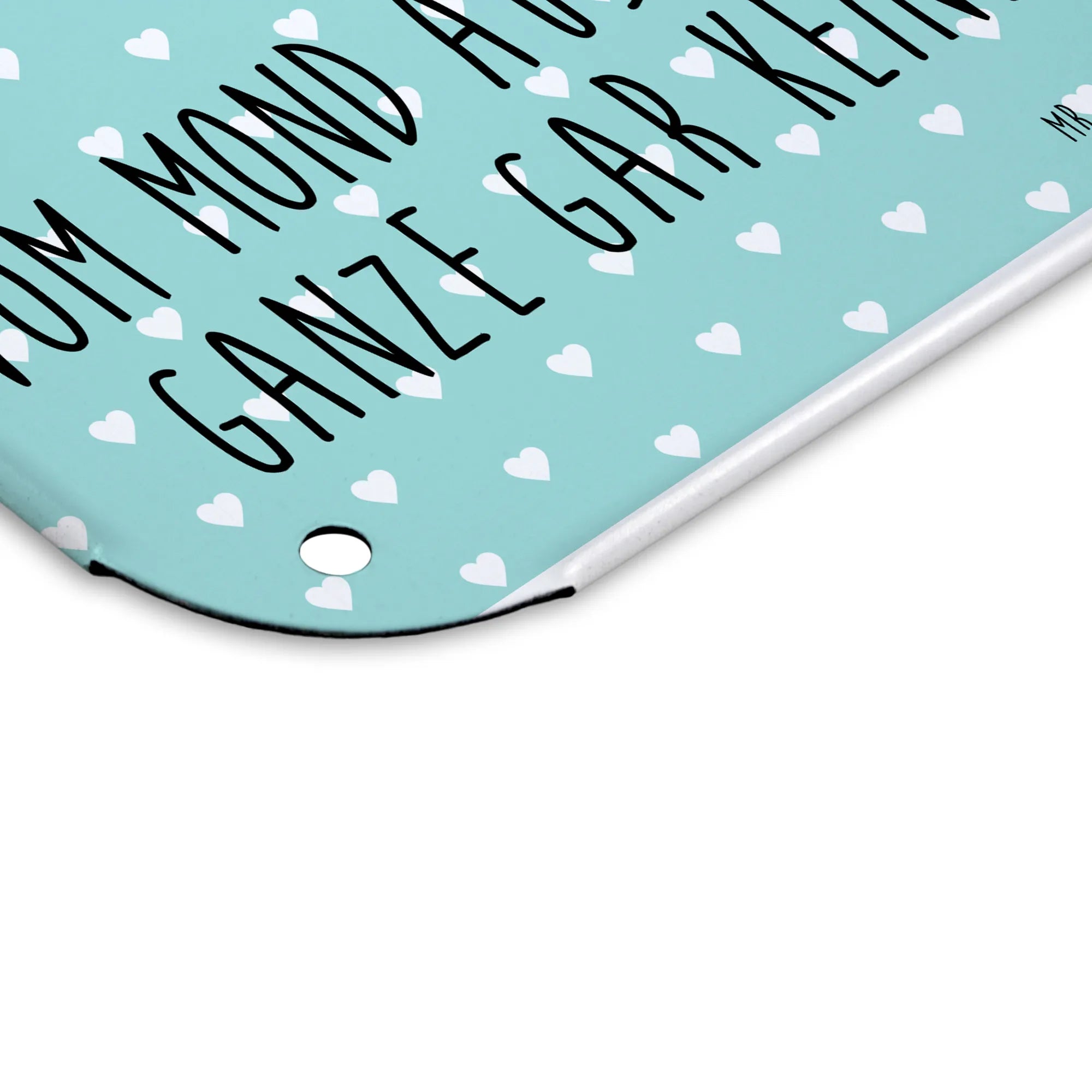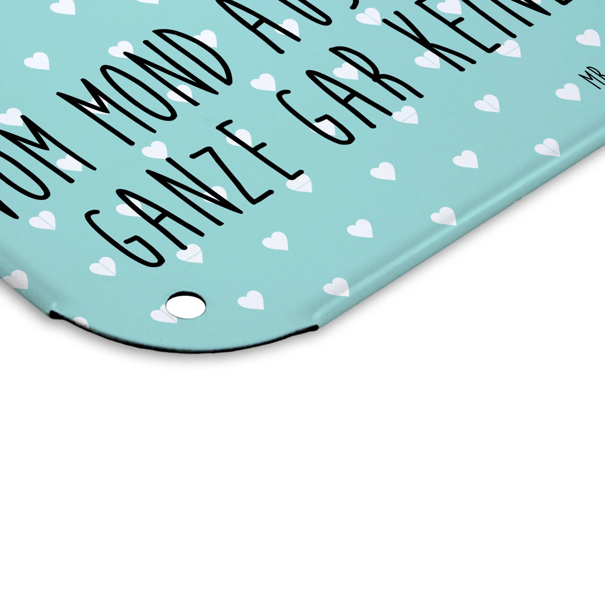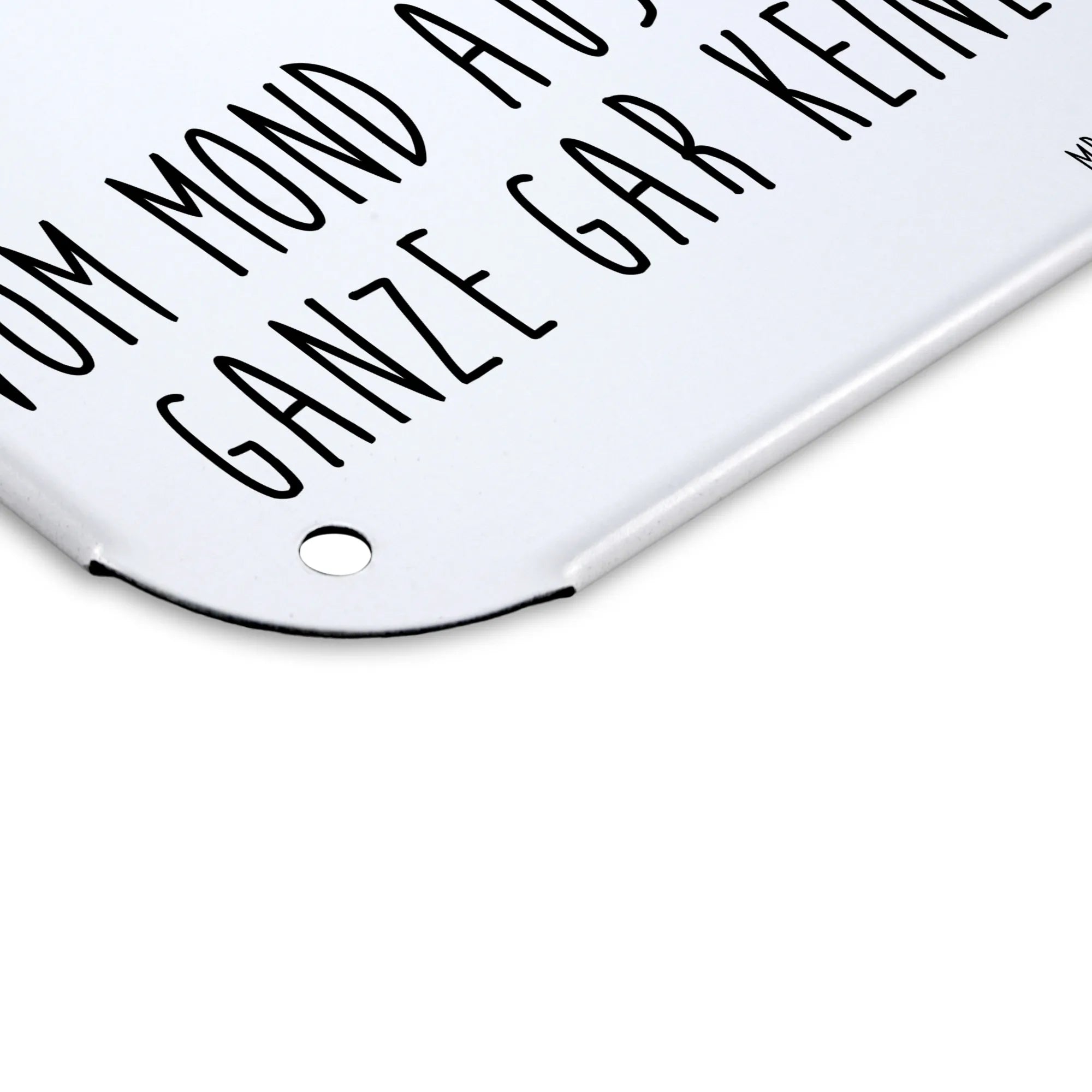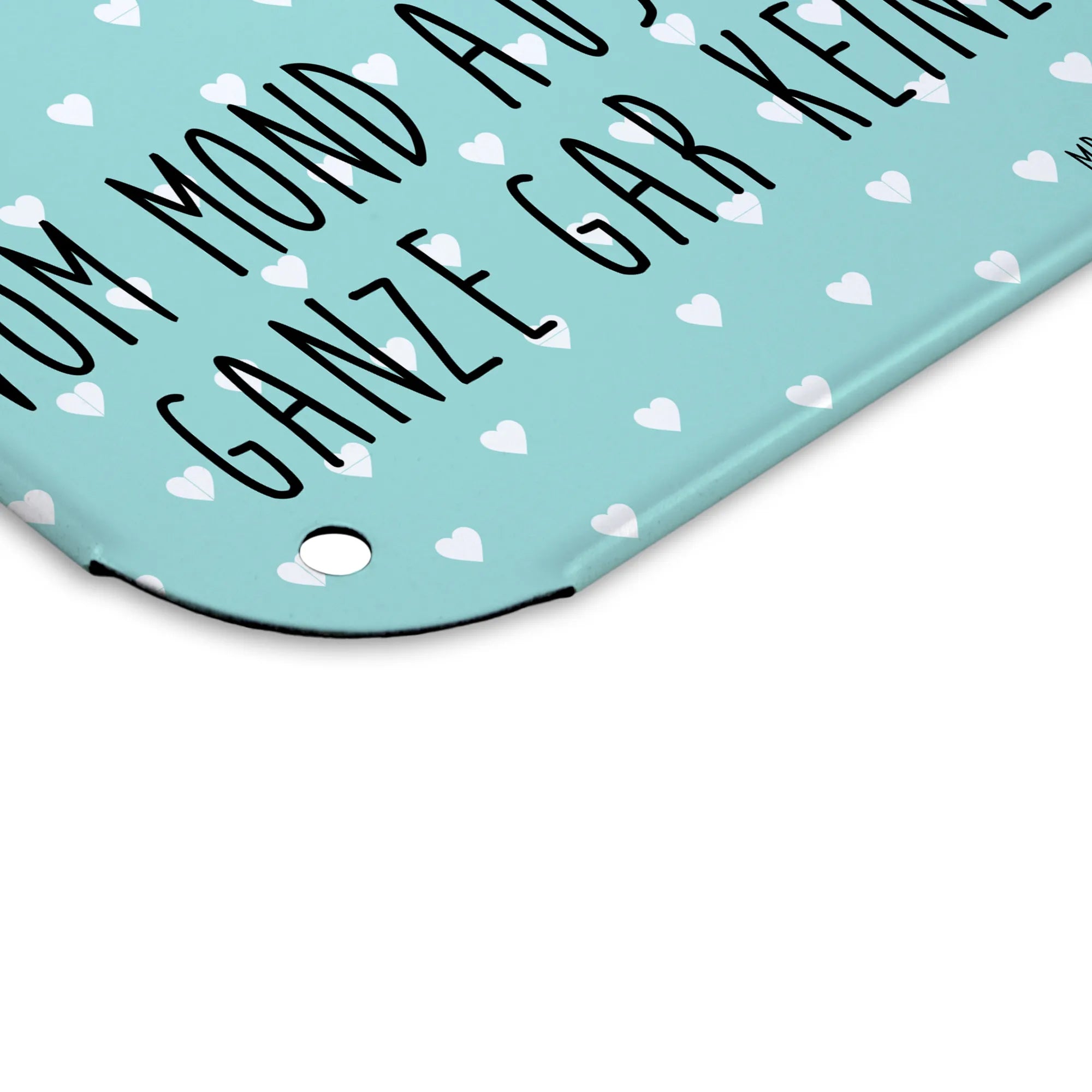 Verleihen Sie Ihrem Zuhause einen Hauch von Stil mit unserem Blechschild von Mr. & Mrs. Panda! Diese edle Kreation misst 146 mm x 148 mm x 105 mm und ist aus hochwertigem Stahlblech gefertigt, das nicht nur strapazierfähig, sondern auch elegant ist. Das Schild ist mit ansprechenden Sprüchen und liebevollen Motiven bedruckt, die zur positiven Stimmung beitragen. Mit seiner seidenmatten Oberfläche kommt es in jeder Umgebung bestens zur Geltung und eignet sich hervorragend als Wand- oder Türdekoration. Es ist mit 4 praktischen Bohrlöchern versehen, die die Montage ganz einfach machen. Alle Kanten sind umgefalzt und die Ecken abgerundet, sodass das Schild nicht nur schön aussieht, sondern auch sicher in Ihrem Zuhause ist. Außerdem lässt sich das Schild leicht mit einem feuchten Tuch reinigen und ist nur für den Innenbereich gedacht. Dieses Blechschild ist in verschiedenen Größen erhältlich und ist die ideale Geschenkidee für jeden Anlass.