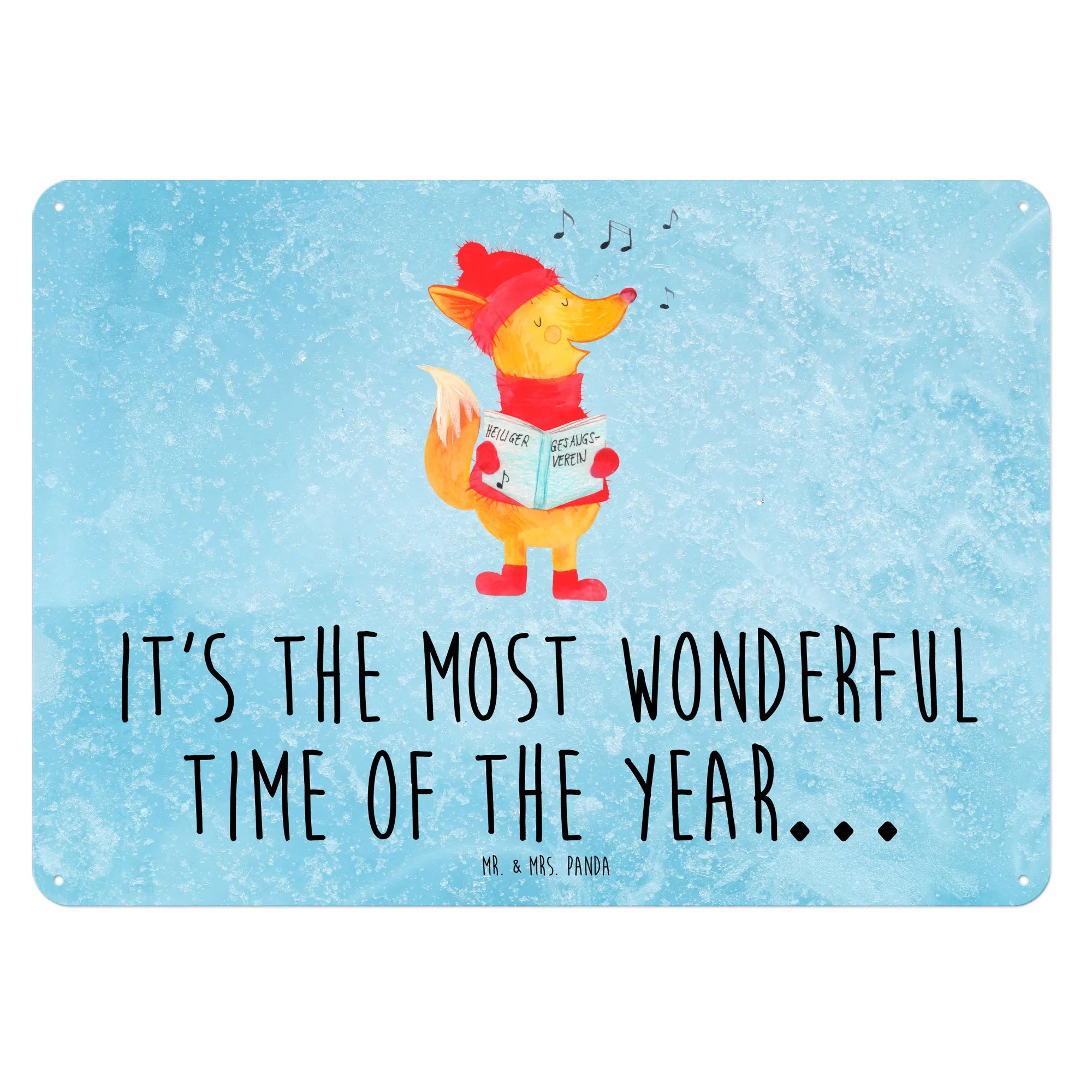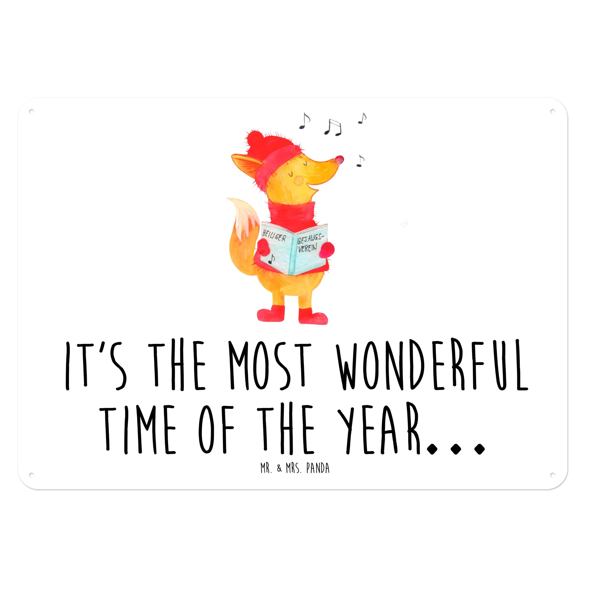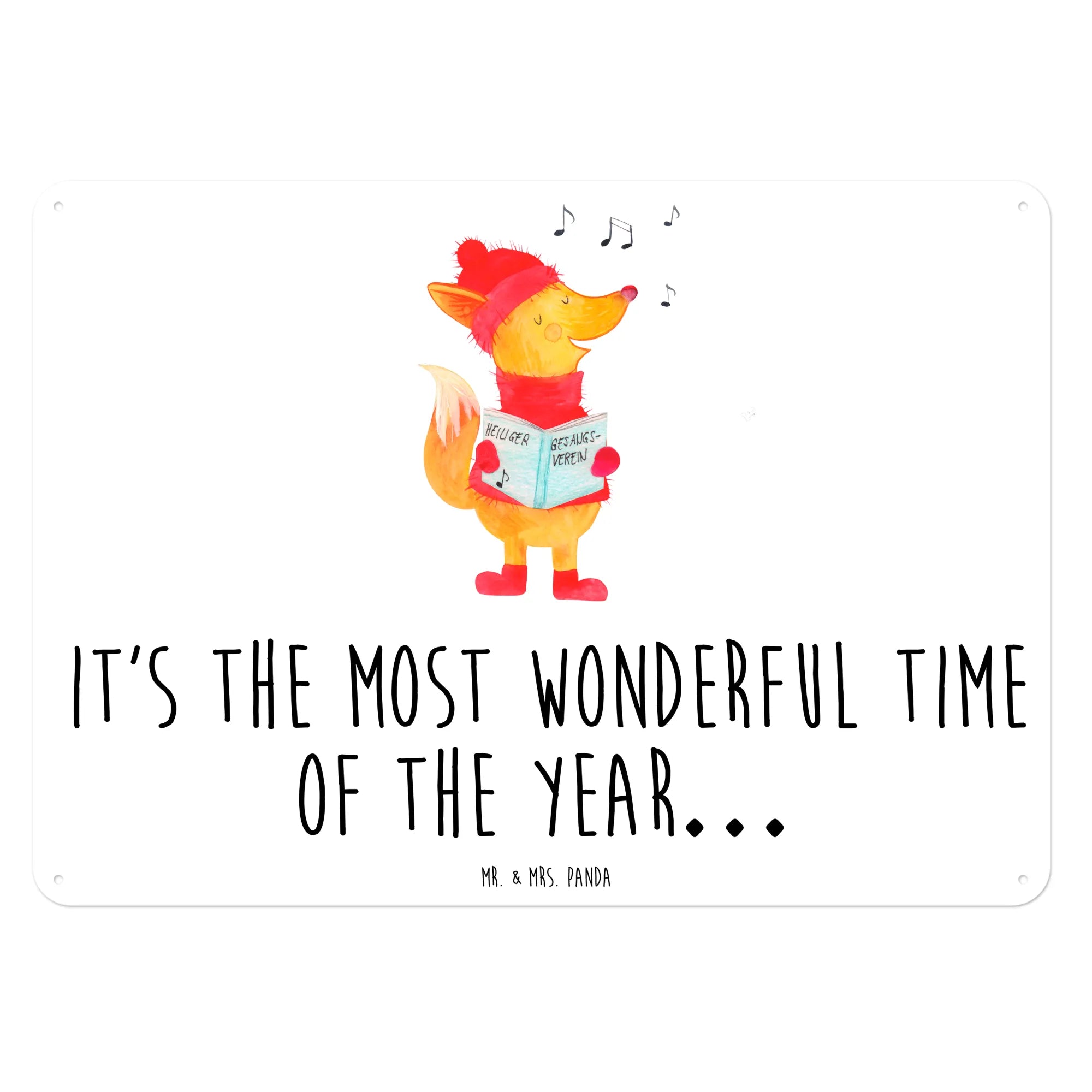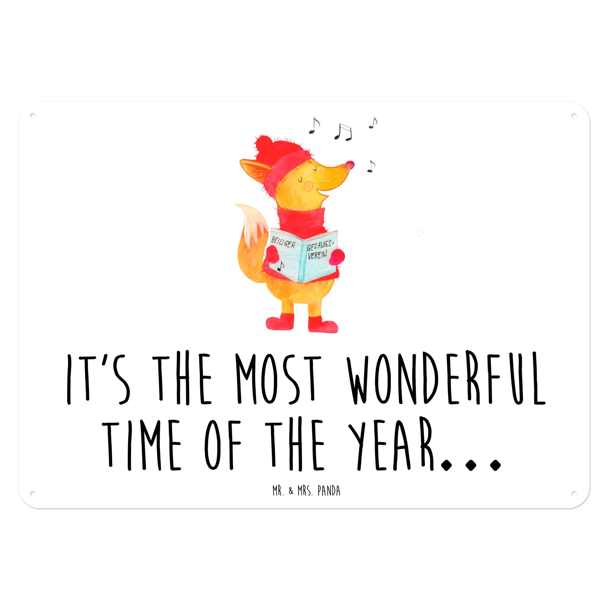Das perfekte Geschenk für die Winterzeit: unser edles Blechschild "Fuchs Sänger" aus der Winter Kollektion von Mr. & Mrs. Panda! Mit seinem fröhlichen Fuchs, der in ein Liederbuch schaut und Weihnachtslieder singt, ist dieses Schild ein absolutes Highlight für jede Wand oder Tür.
