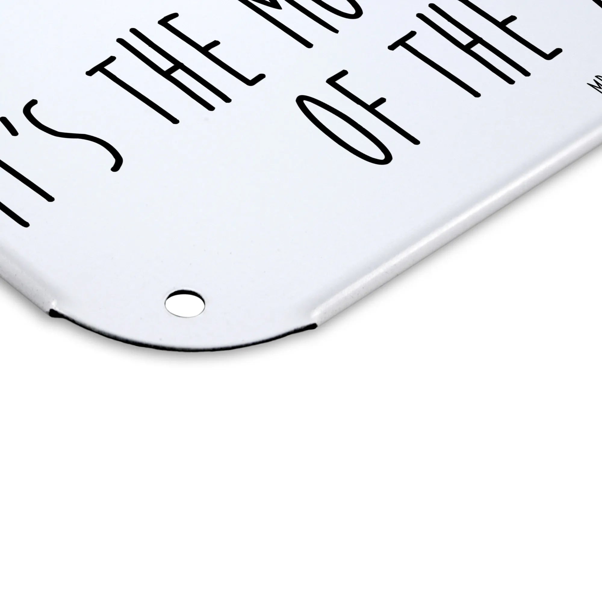 Verleihen Sie Ihrem Zuhause einen Hauch von Stil mit unserem Blechschild von Mr. & Mrs. Panda! Diese edle Kreation misst 146 mm x 148 mm x 105 mm und ist aus hochwertigem Stahlblech gefertigt, das nicht nur strapazierfähig, sondern auch elegant ist. Das Schild ist mit ansprechenden Sprüchen und liebevollen Motiven bedruckt, die zur positiven Stimmung beitragen. Mit seiner seidenmatten Oberfläche kommt es in jeder Umgebung bestens zur Geltung und eignet sich hervorragend als Wand- oder Türdekoration. Es ist mit 4 praktischen Bohrlöchern versehen, die die Montage ganz einfach machen. Alle Kanten sind umgefalzt und die Ecken abgerundet, sodass das Schild nicht nur schön aussieht, sondern auch sicher in Ihrem Zuhause ist. Außerdem lässt sich das Schild leicht mit einem feuchten Tuch reinigen und ist nur für den Innenbereich gedacht. Dieses Blechschild ist in verschiedenen Größen erhältlich und ist die ideale Geschenkidee für jeden Anlass.