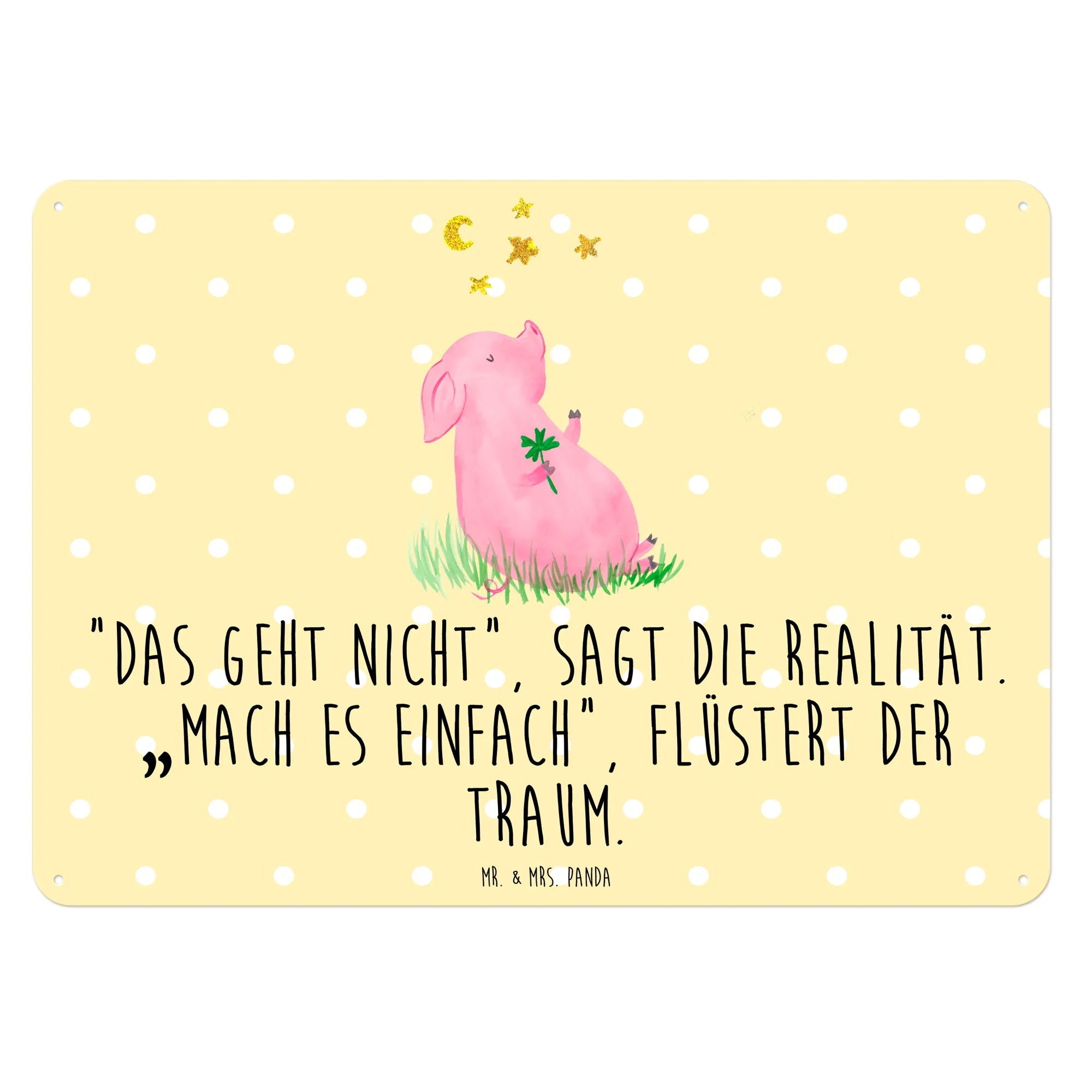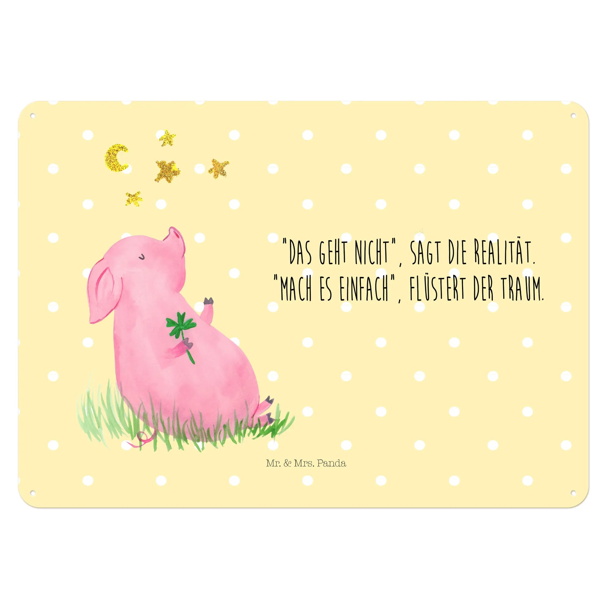 Das edle Blechschild mit dem Glücksschwein von Mr. & Mrs. Panda ist nicht nur eine wunderschöne Wanddekoration, sondern auch eine herzliche Botschaft des Glücks und der Motivation.
