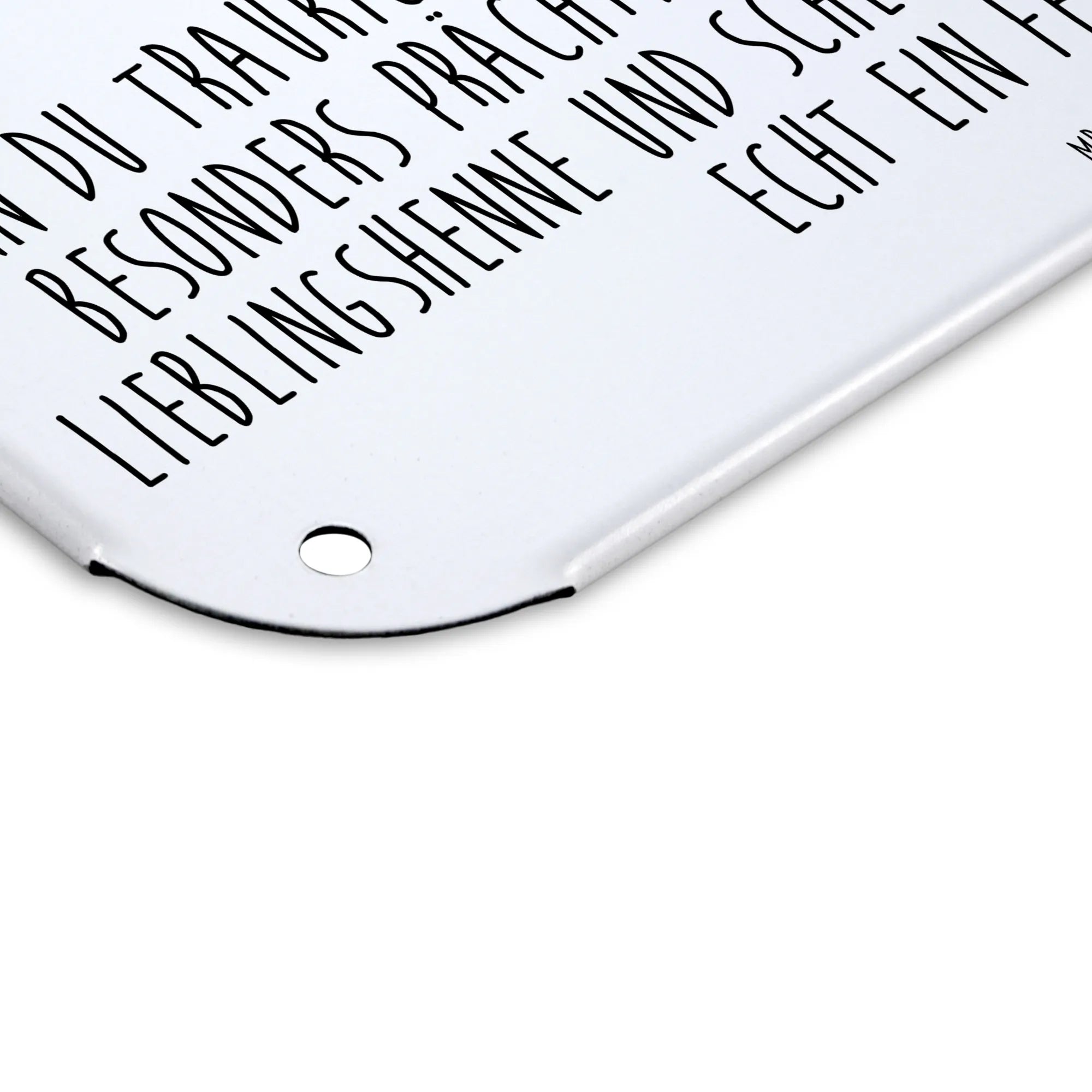 Das Blechschild hat die perfekte Größe von DIN A5 und besteht aus hochwertigem, edlem Stahlblech, das nicht nur für Stabilität sorgt, sondern auch durch seine seidenmatte Oberfläche glänzt. Mit den abgerundeten Ecken und umgefalzten Kanten ist es nicht nur sicher, sondern sieht auch besonders elegant aus.