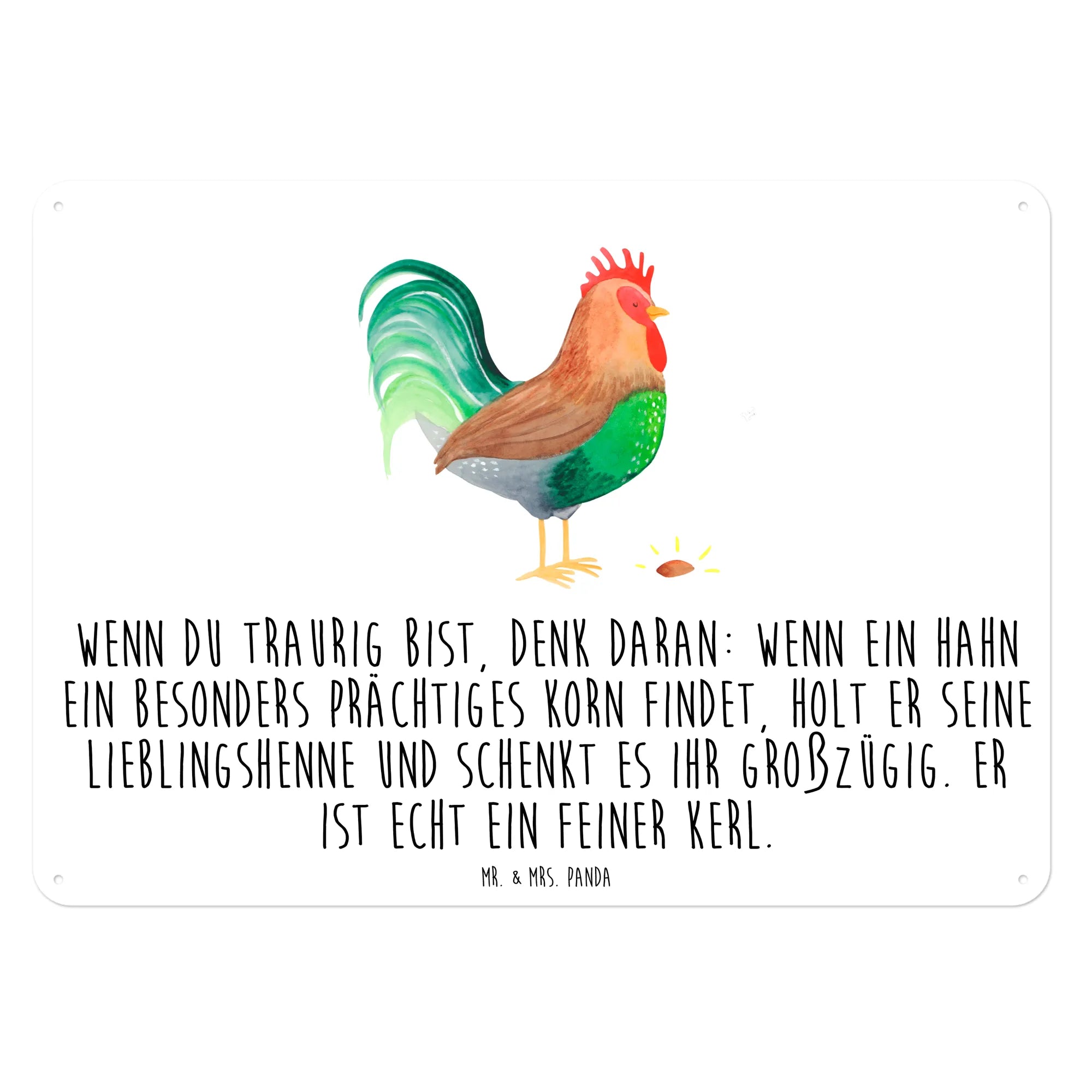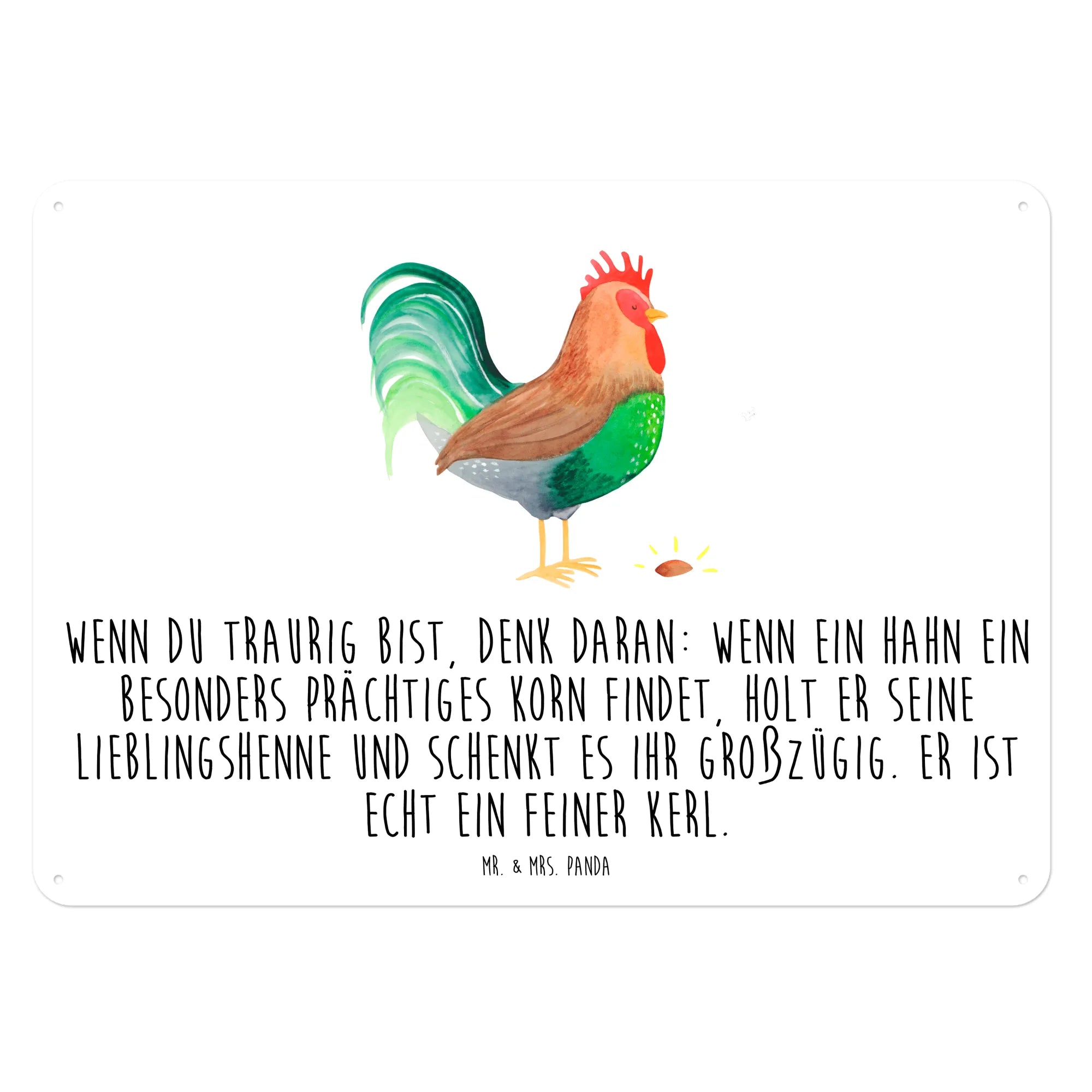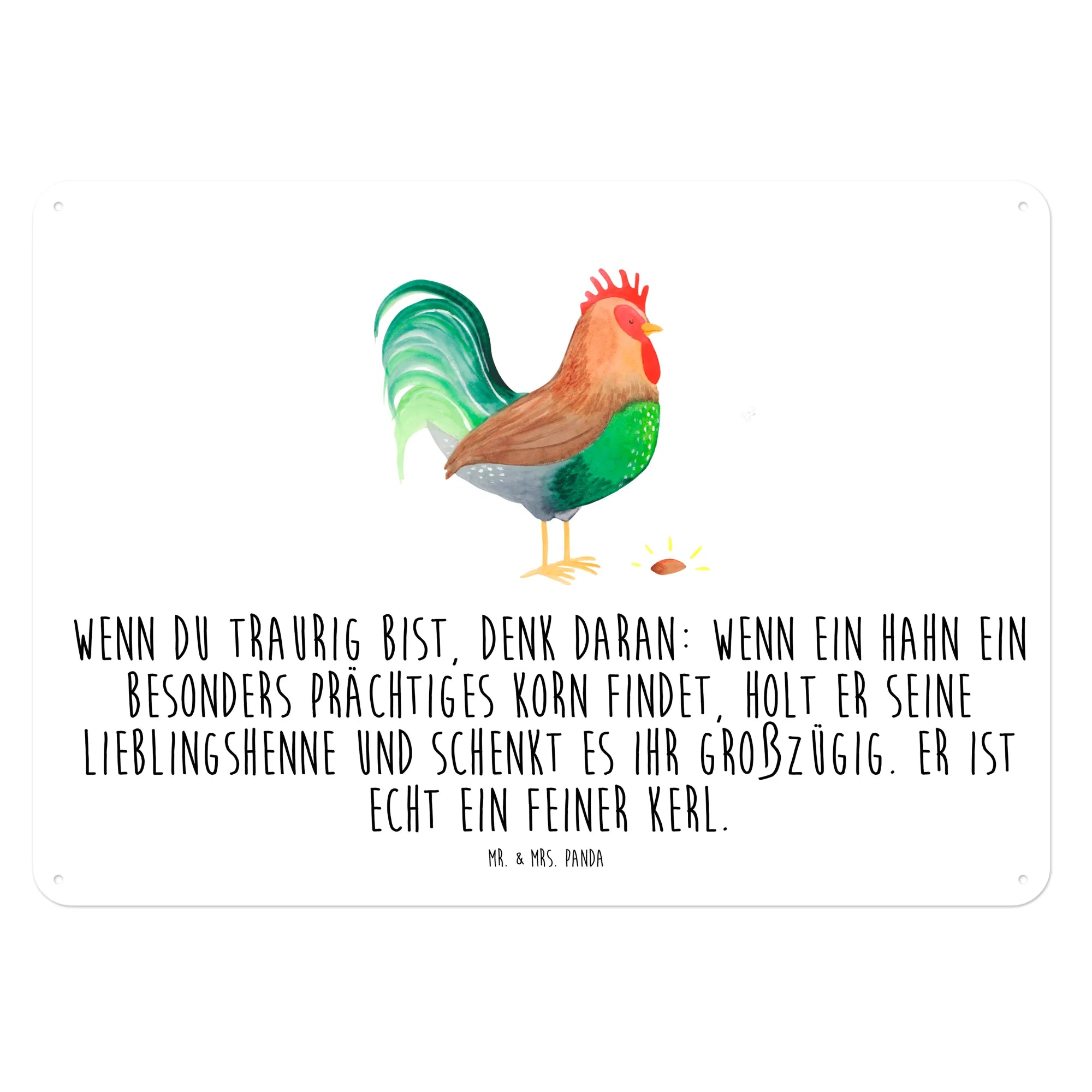 Zeige mit diesem Schild deinen Sinn für Humor und deine Liebe zur Natur. Schaffe eine einladende Atmosphäre in deinem Zuhause oder verschenke ein Stück Bauernhof-Gefühl mit Mr. & Mrs. Panda's "Hahn mit Korn"! Es wird mit Sicherheit das Herz eines jeden Menschen erfreuen und ein wahres Highlight an jeder Wand setzen.