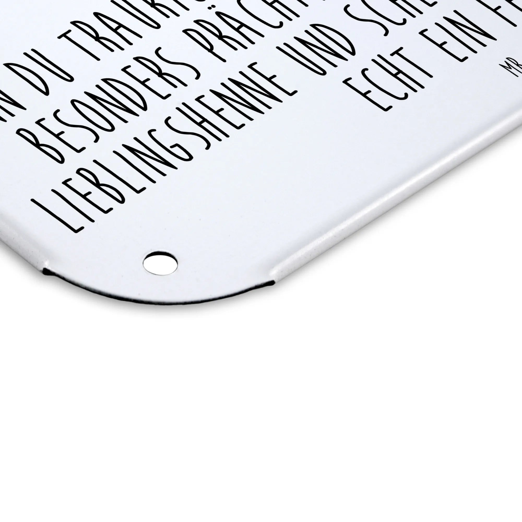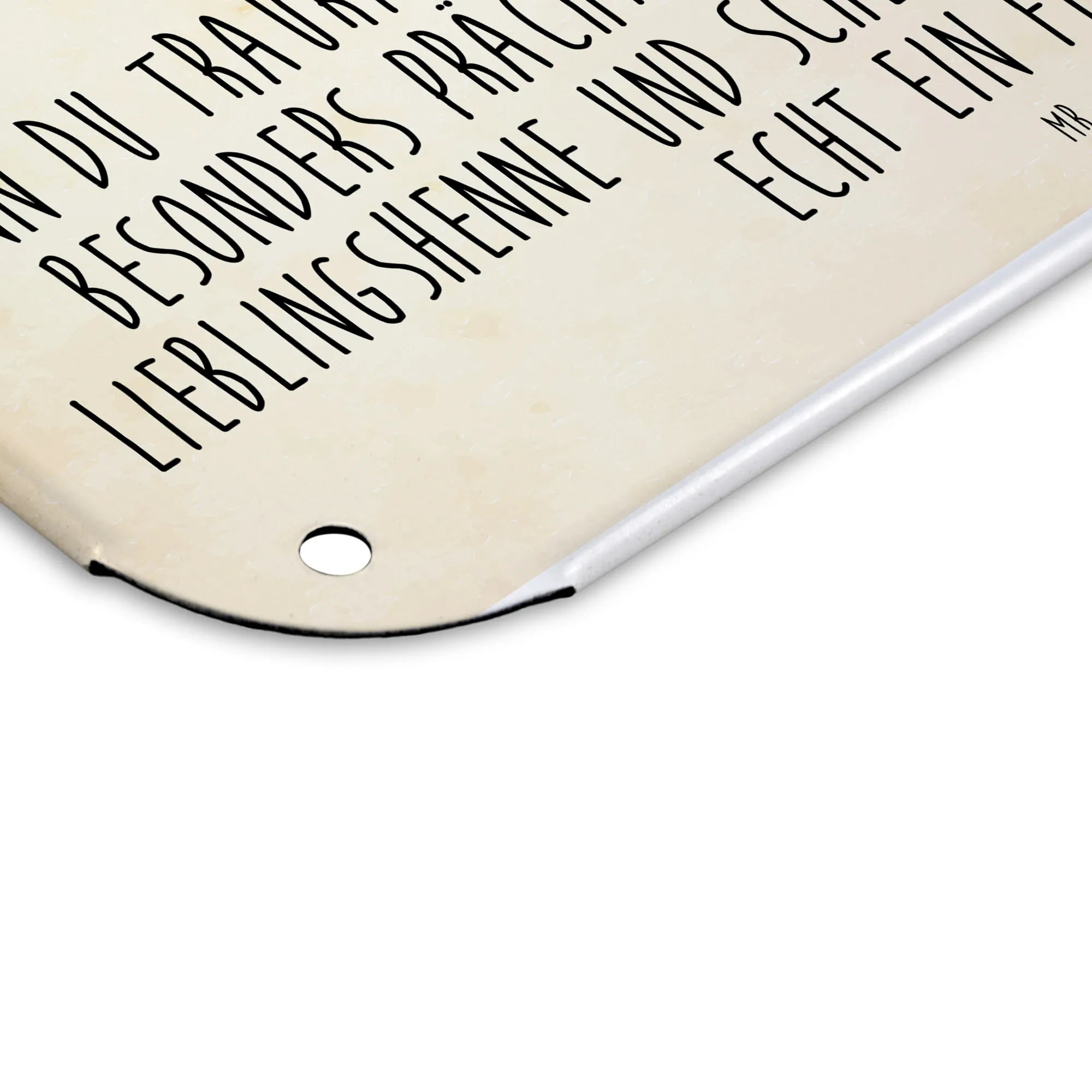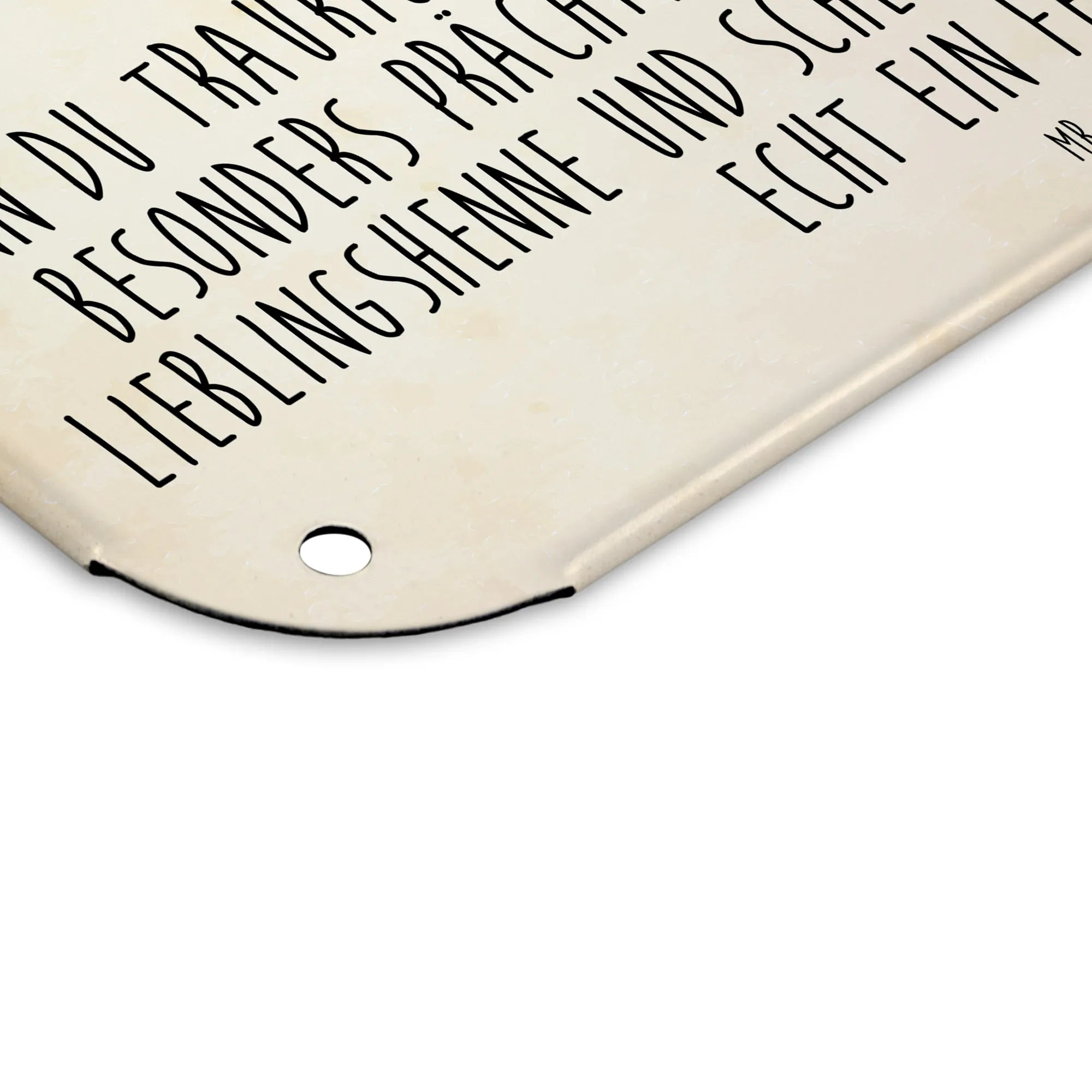 Dieses edle Blechschild von Mr. & Mrs. Panda ist nicht nur eine Dekoration, sondern auch ein Statement! Mit den Maßen 146 mm x 297 mm x 210 mm lässt es sich wunderbar an jeder Wand oder Tür anbringen und bringt ein Lächeln in jeden Raum. Das Schild ist aus hochwertigem Stahlblech hergestellt, was für eine lange Haltbarkeit sorgt. Der Druck ist nicht nur wunderschön anzusehen, sondern auch ultra langlebig in seidenmatter Qualität. Durch die abgerundeten Ecken und gefalzten Kanten ist es nicht nur schön, sondern auch sicher. Mit praktischen 4 Bohrungen ausgestattet, kannst du es komfortabel anbringen. Dieses Stück ist ideal als Geschenk für deine Liebsten oder einfach zur Verschönerung deines Zuhauses. Leichte Reinigung – einfach abwischen mit einem feuchten Tuch. Mach dein Zuhause noch einladender mit diesem besonderen Stück von Mr. & Mrs. Panda!