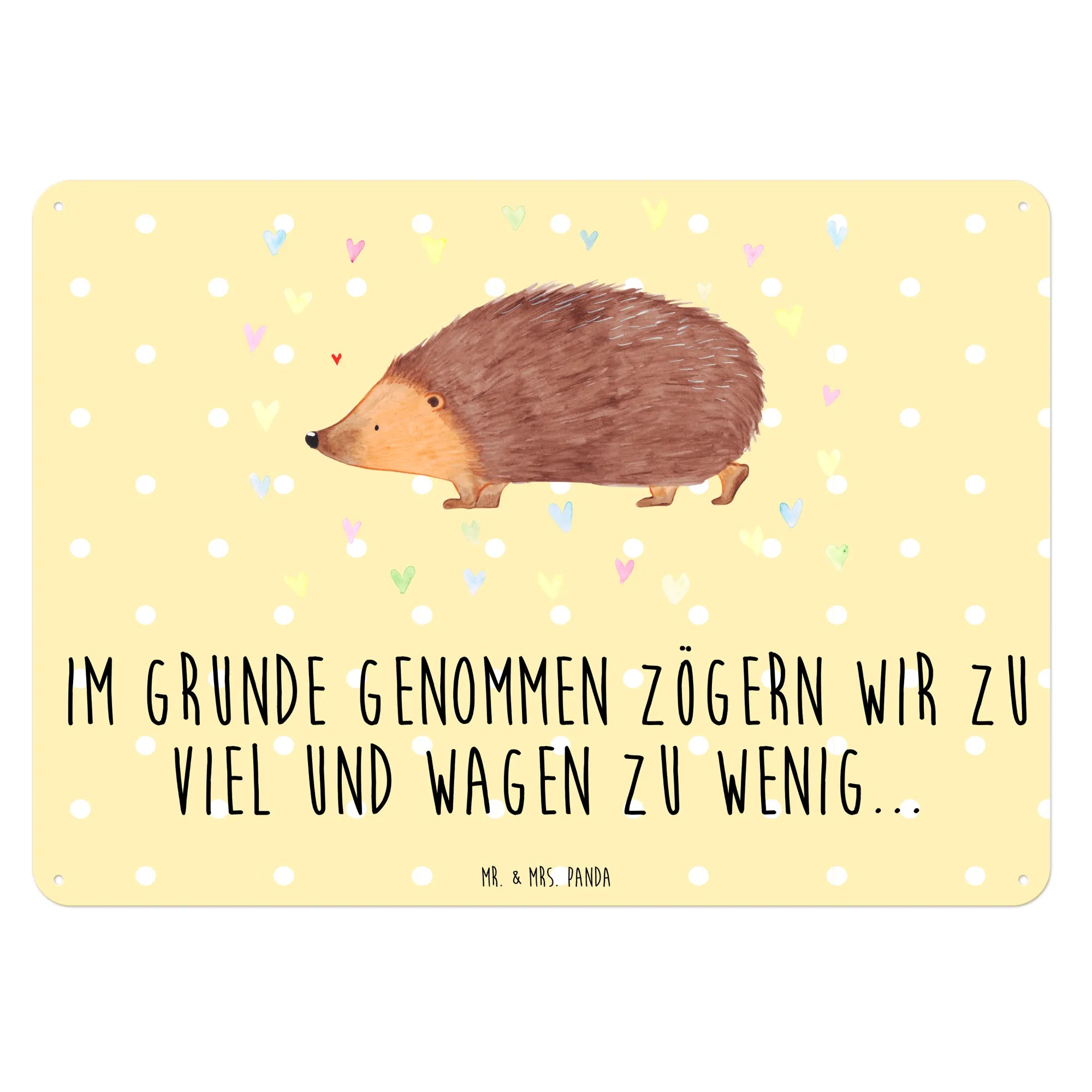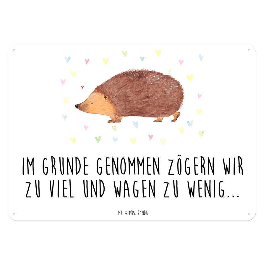Das edle Blechschild "Igel Herzen" aus der Kollektion Small World von Mr. & Mrs. Panda ist das perfekte Geschenk für jeden, der sein Zuhause mit Liebe und Wärme dekorieren möchte. Dieses wunderbare Schild zeigt einen süßen Igel, der von einer Vielzahl roter Herzen umgeben ist.