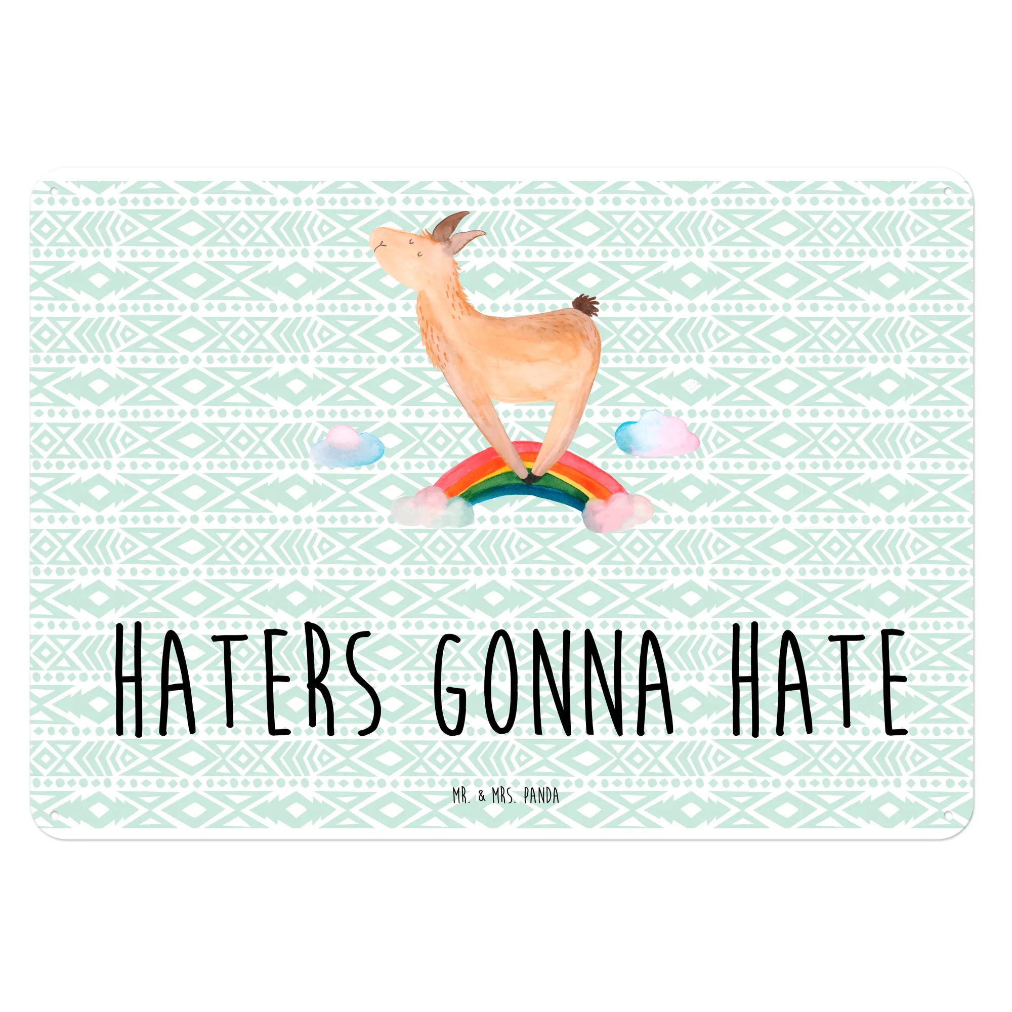 Das wunderschöne Blechschild "Lama Regenbogen" aus der Lama-Kollektion von Mr. & Mrs. Panda ist das perfekte Geschenk für jeden Lama-Liebhaber! Es vereint in einem liebevoll gestalteten Design die beiden coolsten Tiere der Welt: Lamas und Regenbögen. Mit dem Spruch "Haters gonna hate" bringt es nicht nur Farbe in dein Zuhause, sondern auch eine gute Portion Humor und eine positive Einstellung.