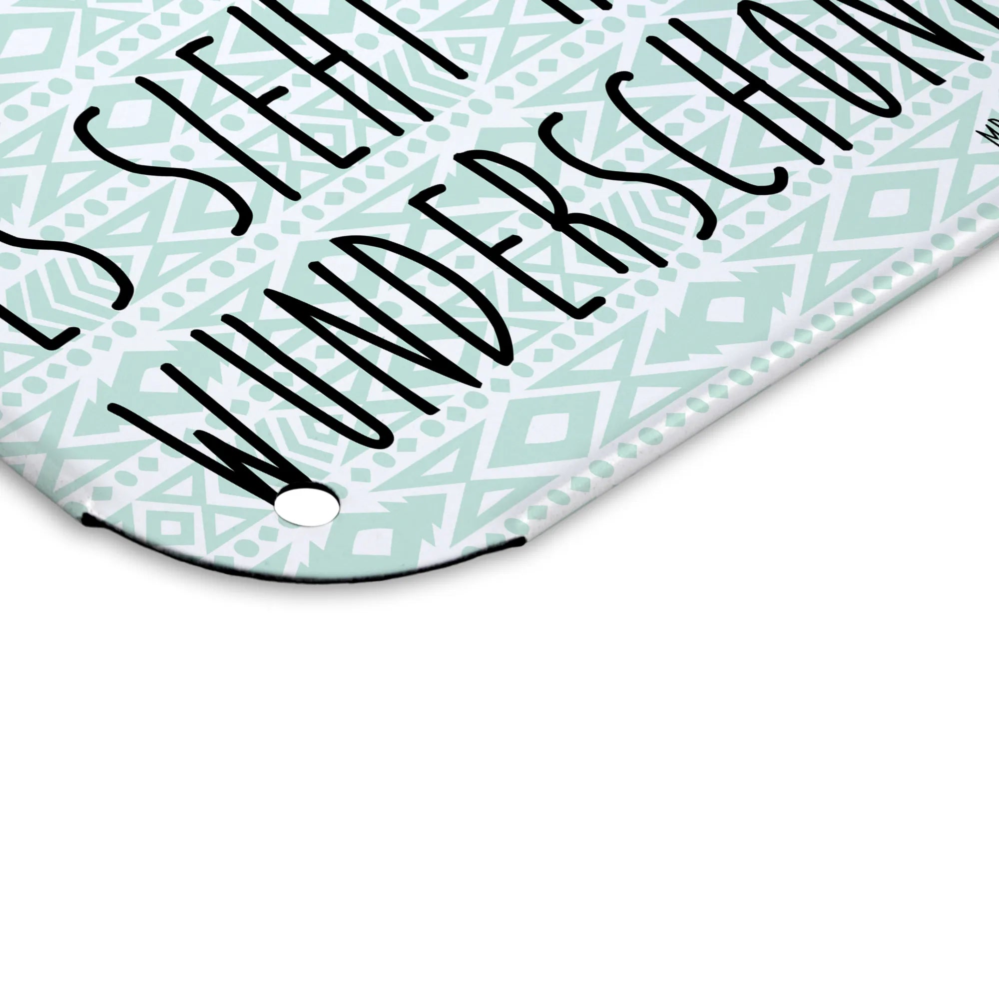 Unsere Blechschild ist aus hochwertigem Stahlblech gefertigt und besticht durch seine edle, seidenmatte Oberfläche. Die abgerundeten Ecken und umgefalteten Kanten sorgen für zusätzliche Sicherheit und ein stilvolles Aussehen. Mit einem Maß von DIN A4 (146 mm x 297 mm) passt es perfekt in jedes Zuhause – egal ob in der Küche, im Flur oder im Kinderzimmer.