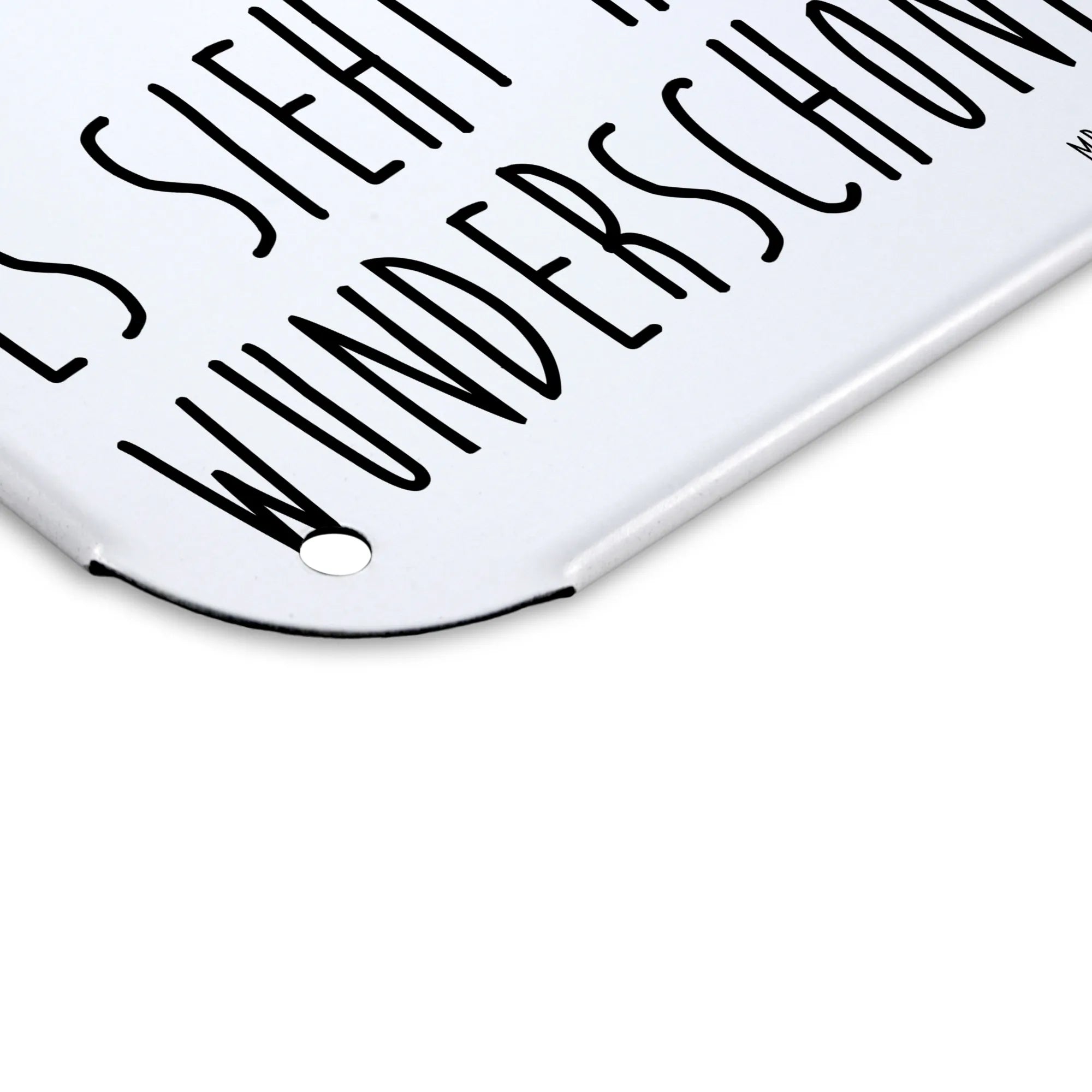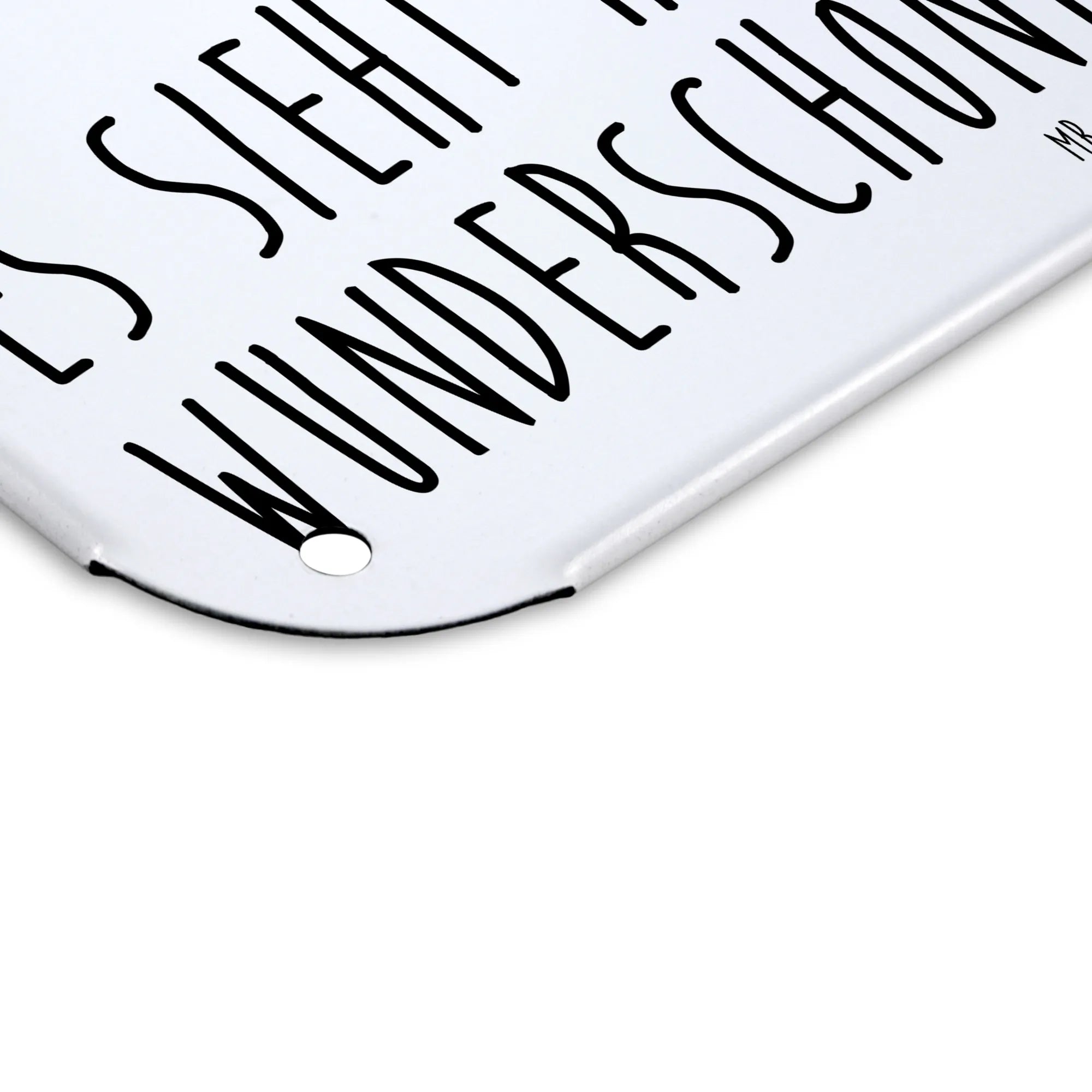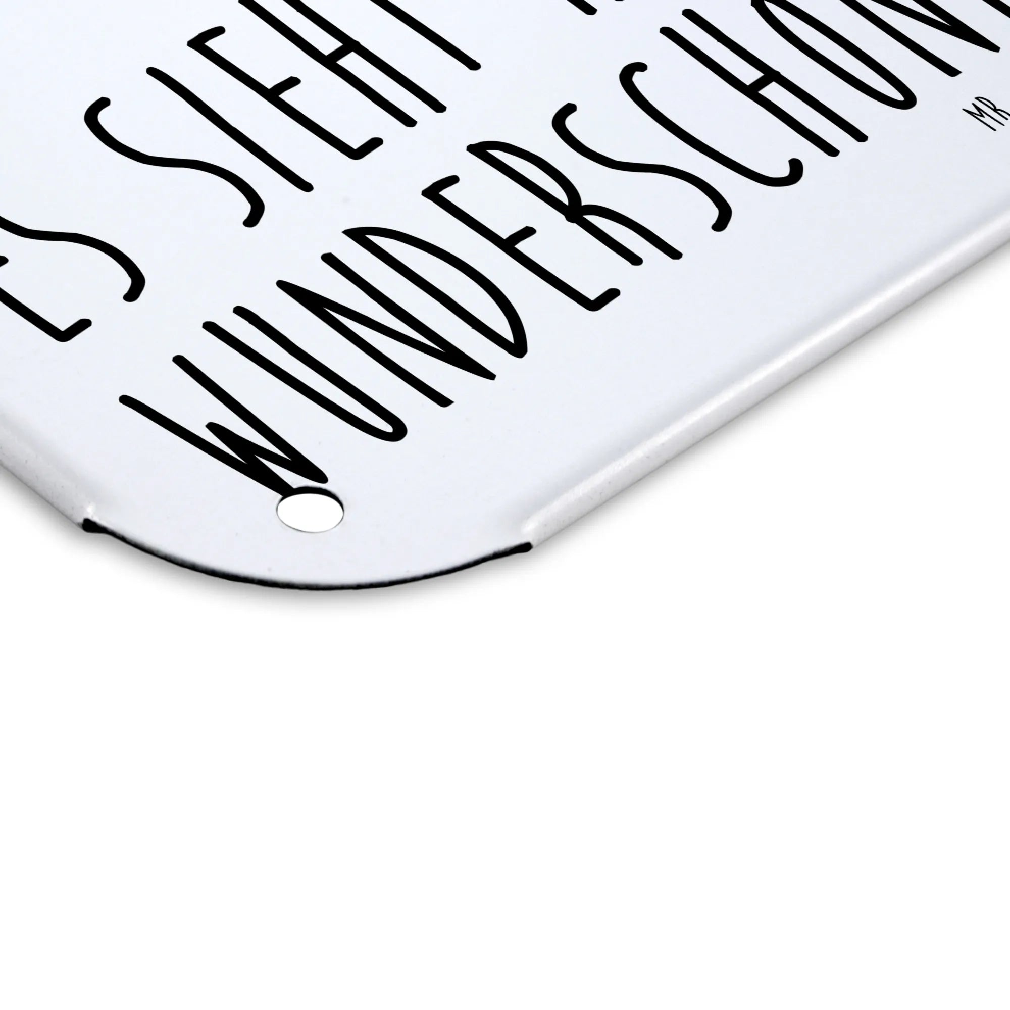 Das perfekte Stück für deine Wohnung: unser hochwertiges Blechschild von Mr. & Mrs. Panda! Mit den eindrucksvollen Maßen 146 mm x 148 mm x 105 mm, strahlt dieses Schild eine besondere Eleganz aus. Das edle Stahlblech ist doppelt beschichtet, sodass es langlebig und resistent gegen Verfärbungen bleibt. Der kreative Druck mit süßen Motiven und griffigen Sprüchen bringt Freude in jeden Raum und eignet sich hervorragend als Geschenkoption. Die seidenmatte Oberfläche wertet nicht nur das Schild selbst auf, sondern macht es auch zu einem zeitlosen Accessoire. Ob an der Wand oder der Tür - die Anbringung ist dank der 4 bereits vorgebohrten Löcher besonders einfach. Kanten und Ecken sind abgerundet und bilden somit ein sicheres Design für dein Zuhause. Dieses Blechschild passt perfekt in jeden Innenraum und lässt sich mühelos mit einem feuchten Tuch reinigen. Verfügbar in verschiedenen Größen, um sich harmonisch in dein Ambiente einzufügen.
