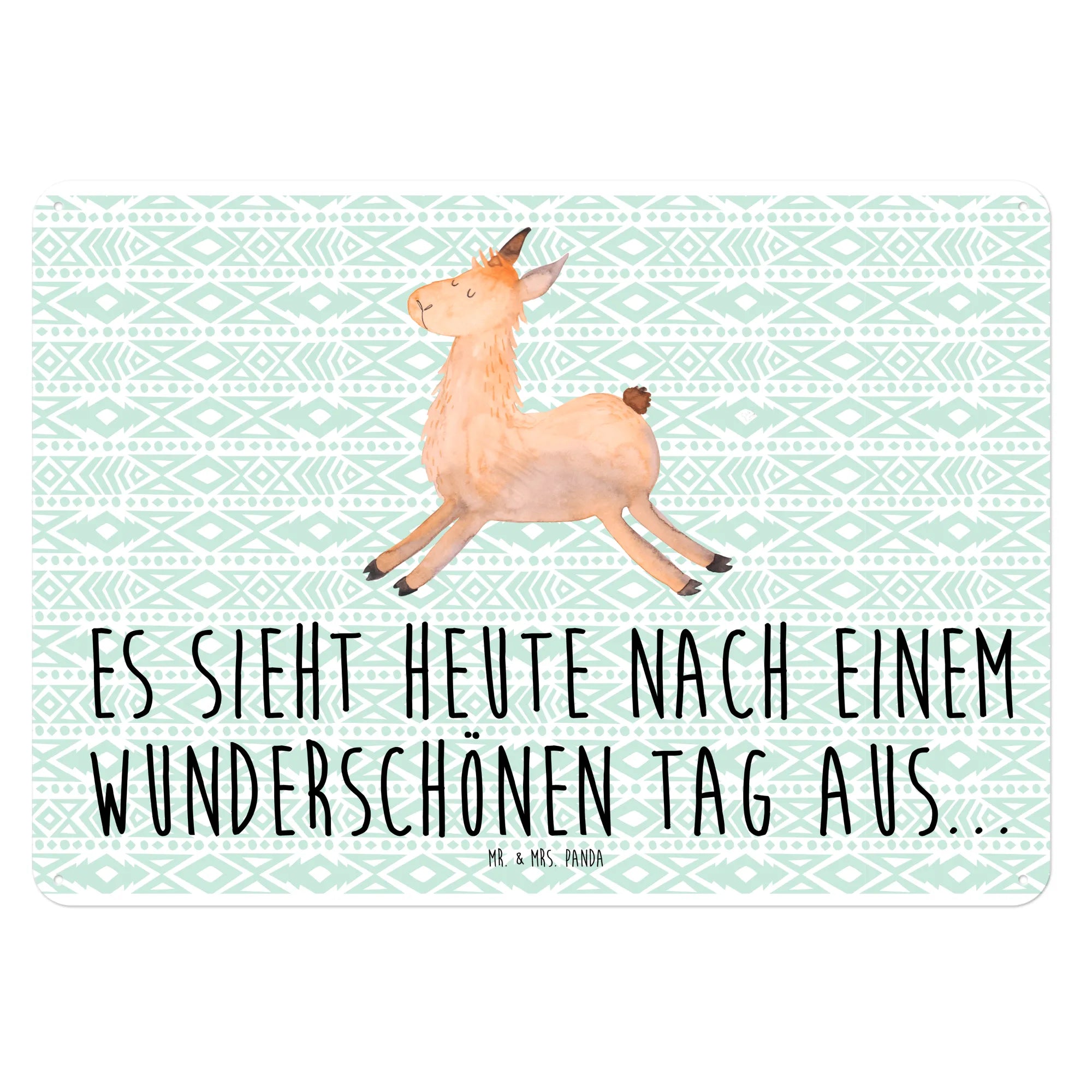 Verschenke Freude, Glück und Lebensfreude mit dem "Lama springend" Blechschild von Mr. & Mrs. Panda – denn jeder Tag kann ein wunderschöner Tag sein!