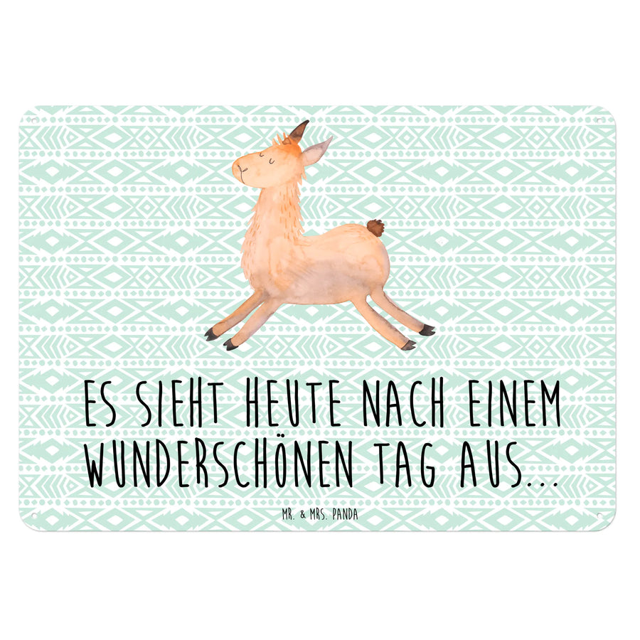 Das Blechschild mit dem springenden Lama von Mr. & Mrs. Panda ist nicht nur ein echter Blickfang für jede Wand, sondern auch das perfekte Geschenk für alle Lama-Liebhaber! Dieses liebevoll gestaltete Schild ist mit dem fröhlichen Spruch "Es sieht heute nach einem wunderschönen Tag aus..." verziert und zaubert jedem Betrachter ein Lächeln ins Gesicht.