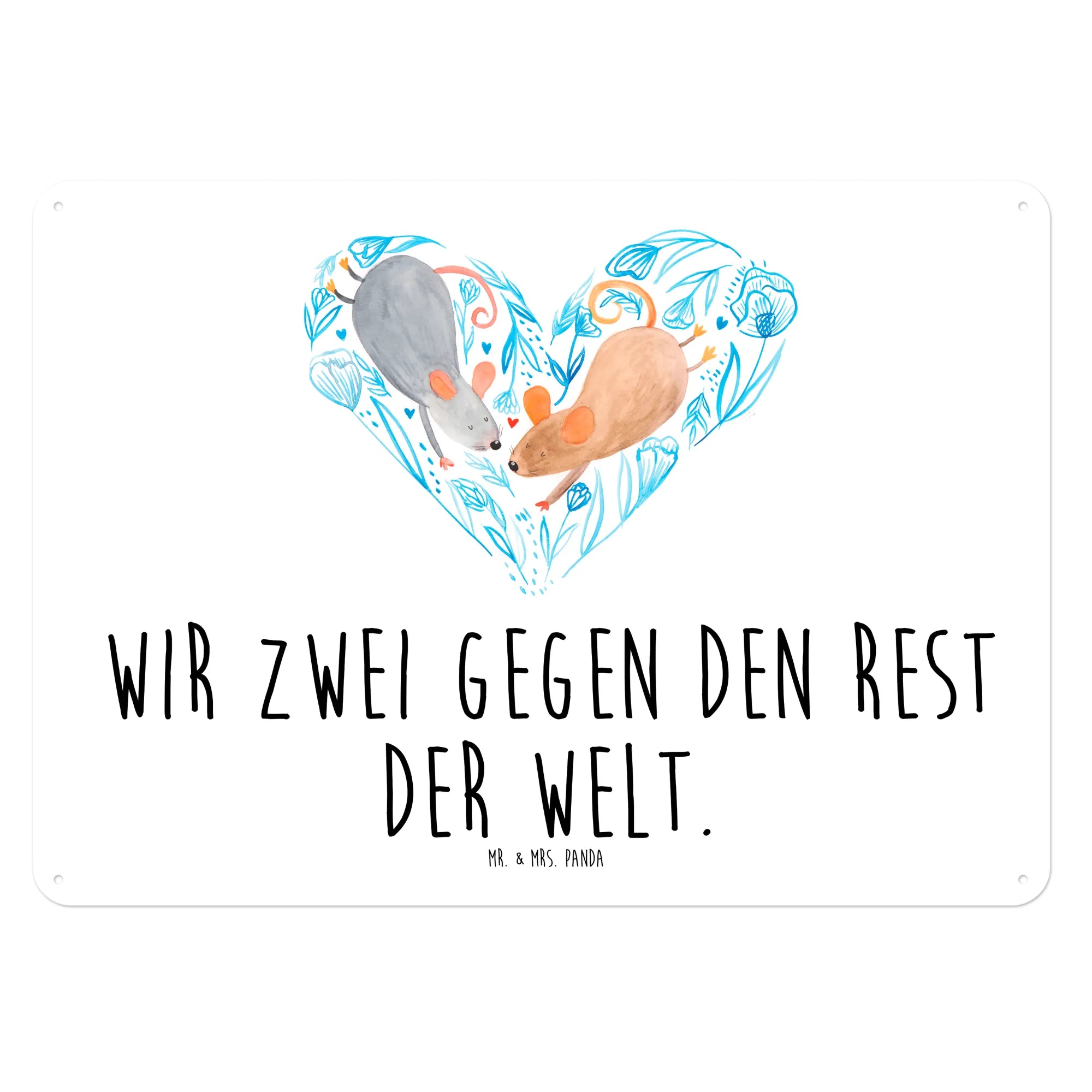 Das edle Blechschild "Mäuse Herz" von Mr. & Mrs. Panda ist das perfekte Geschenk für alle Verliebten und romantischen Seelen! Mit seiner herzlichen Botschaft "Wir zwei gegen den Rest der Welt" und den bezaubernden, handgezeichneten Aquarellmotiven bringt es Liebe und Freude in jedes Zuhause.