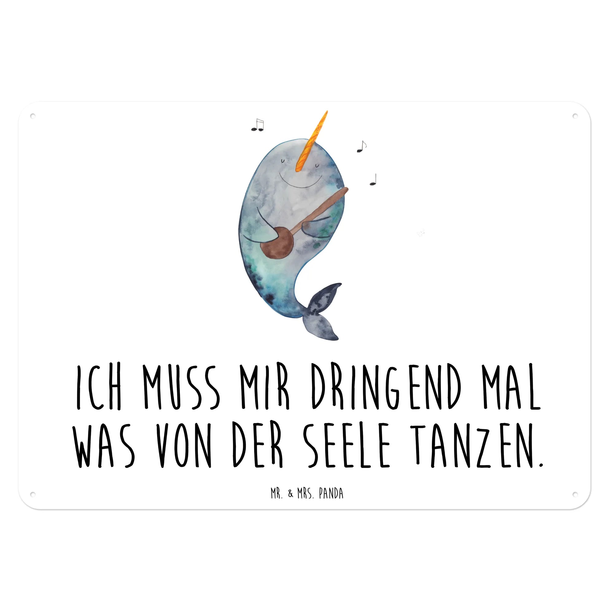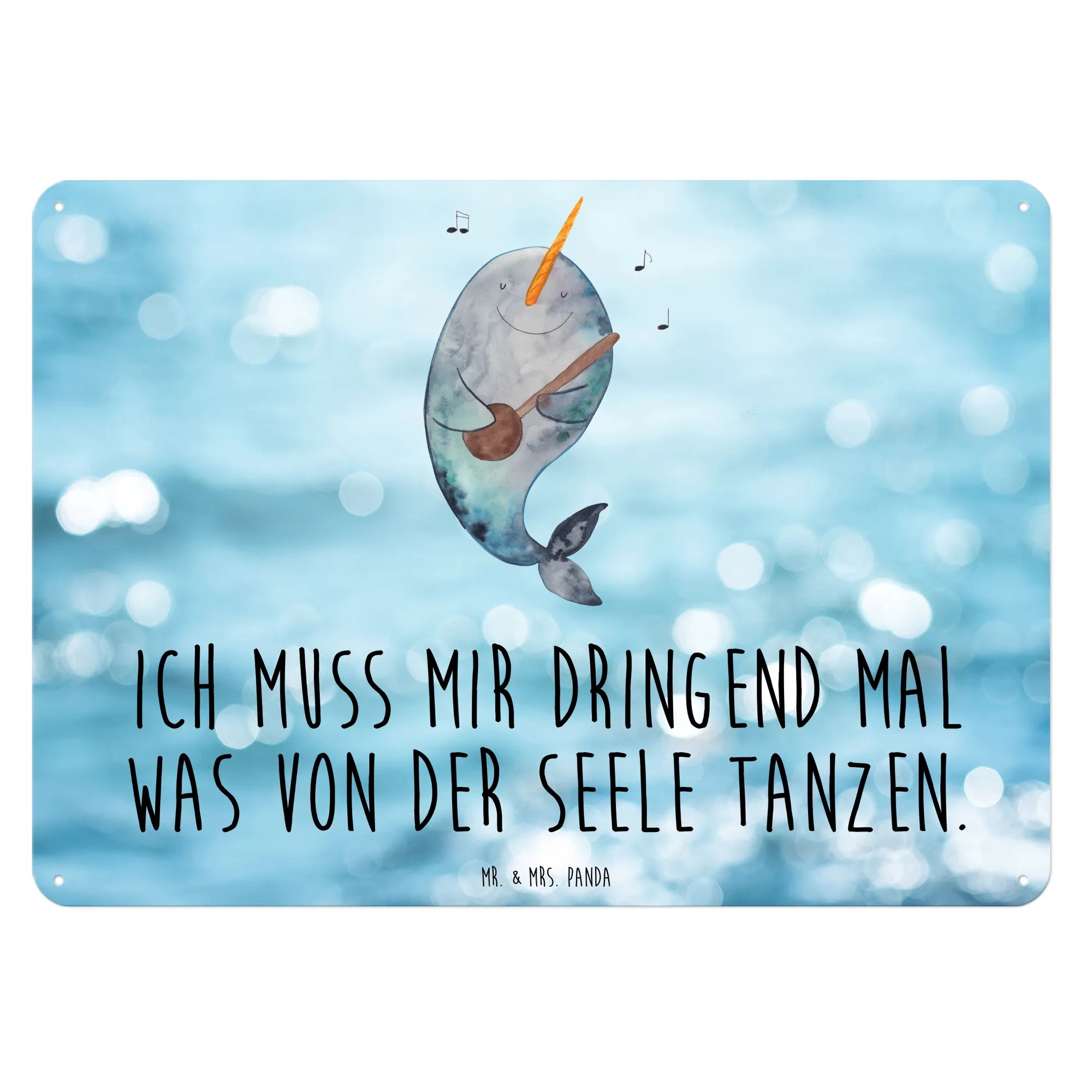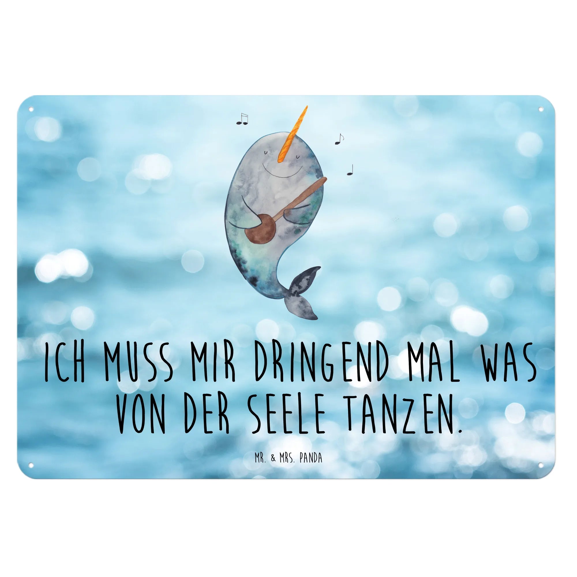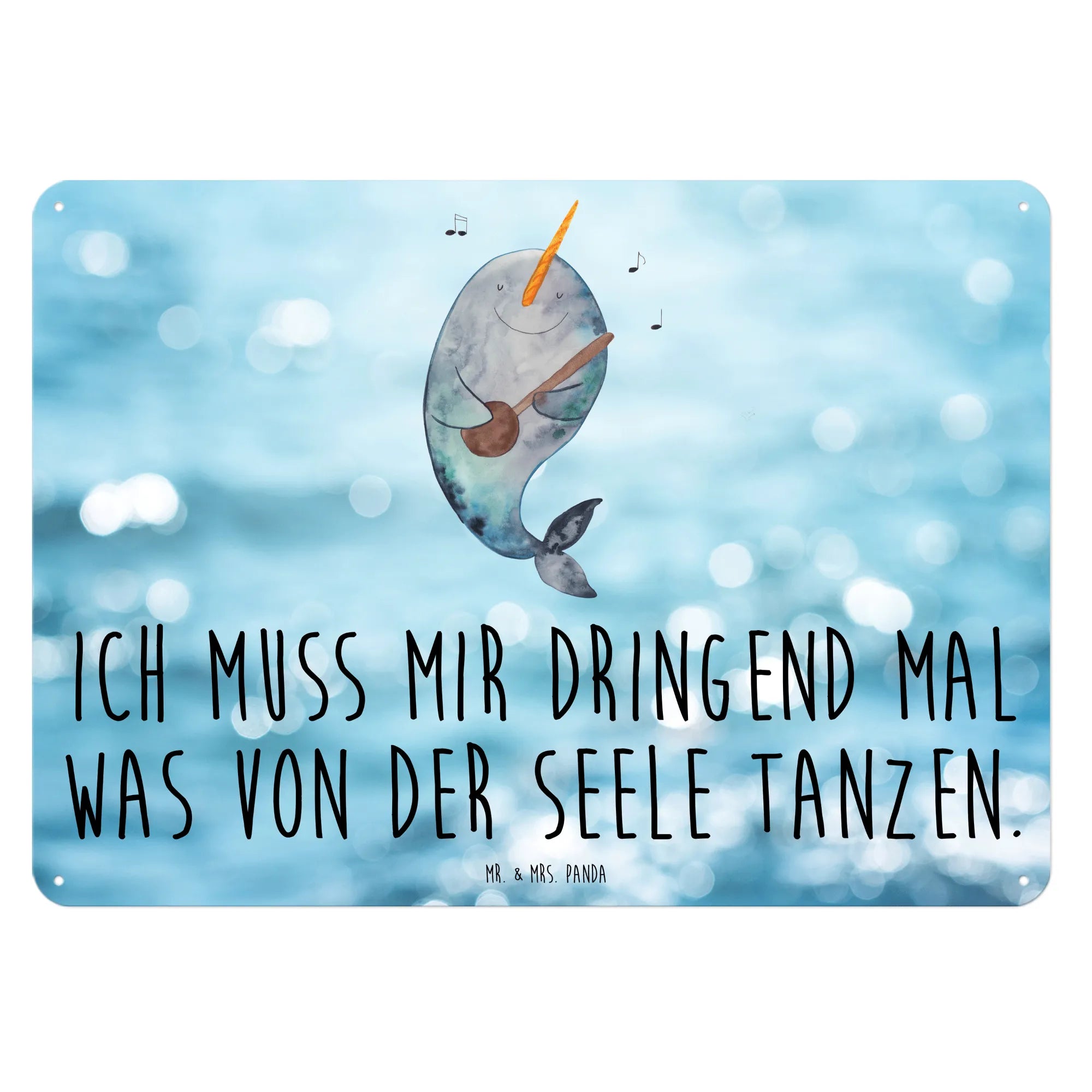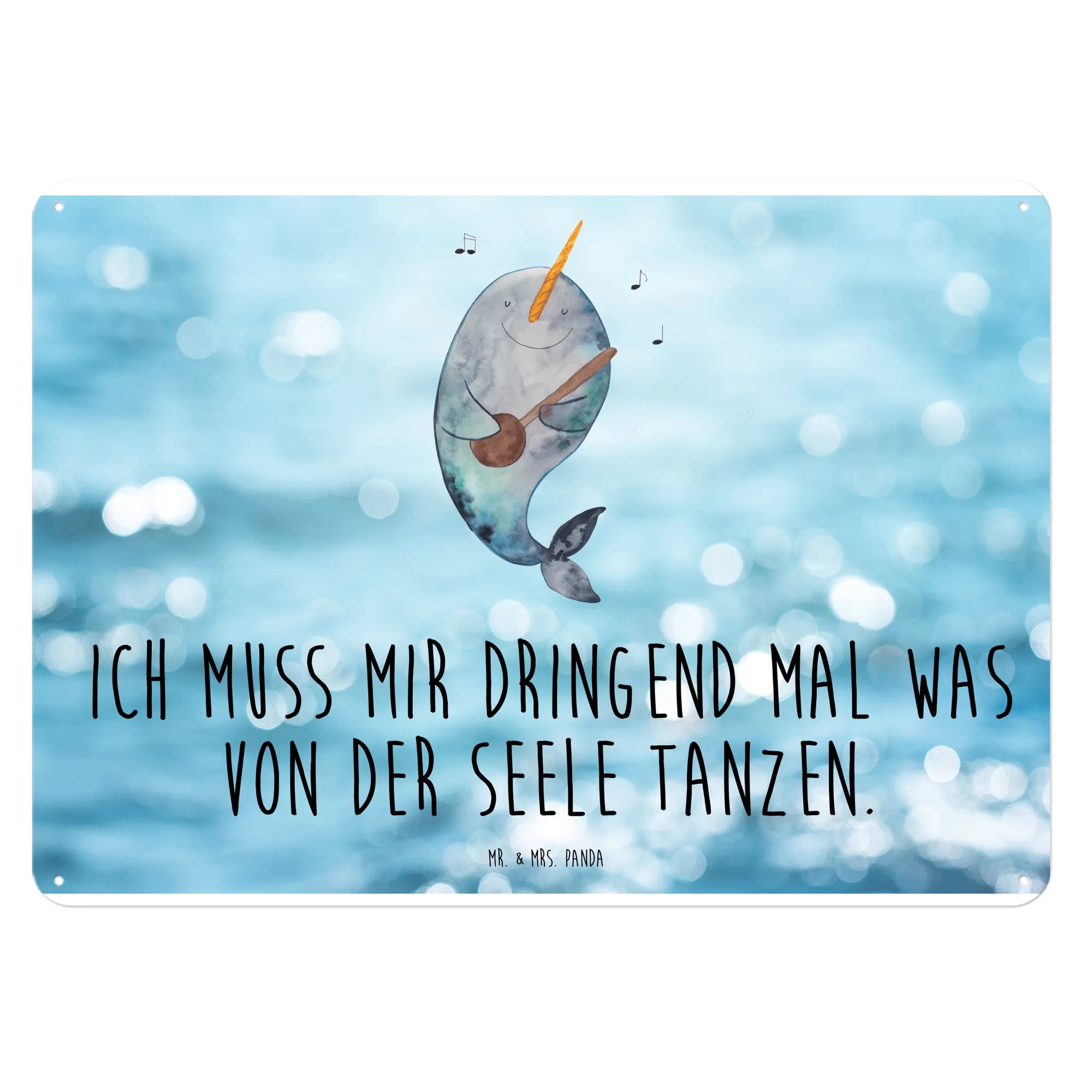 Das wunderschöne Blechschild mit dem fröhlichen Narwal, der Gitarre spielt, ist das perfekte Geschenk für jeden Meerestiere-Liebhaber! Das Schild aus edlem Stahlblech hat eine seidenmatte Oberfläche und verleiht jedem Raum einen maritimen Charme.