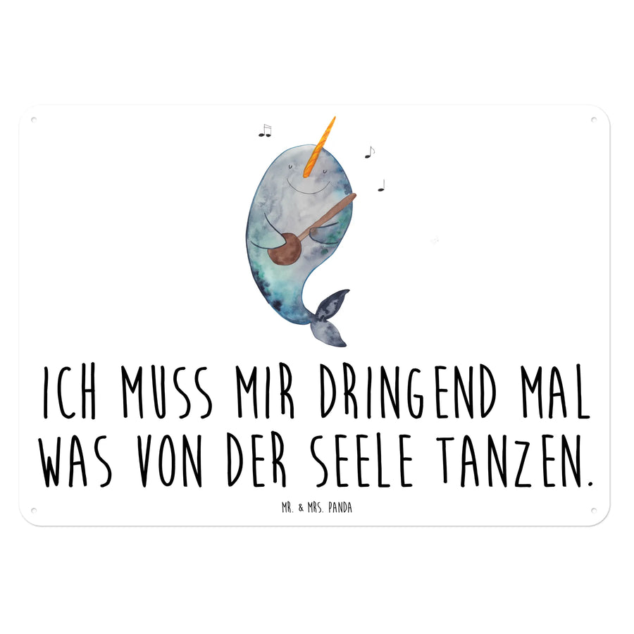 Das edle und farbenfrohe Blechschild mit dem fröhlichen Narwal, der Gitarre spielt, ist das perfekte Geschenk für Musikliebhaber und Meeresfreunde! Mit dem Spruch "Ich muss mir dringend mal was von der Seele tanzen." bringt es nicht nur gute Laune in jedes Zuhause, sondern erinnert auch alle daran, dass das Leben nicht zu ernst genommen werden sollte.