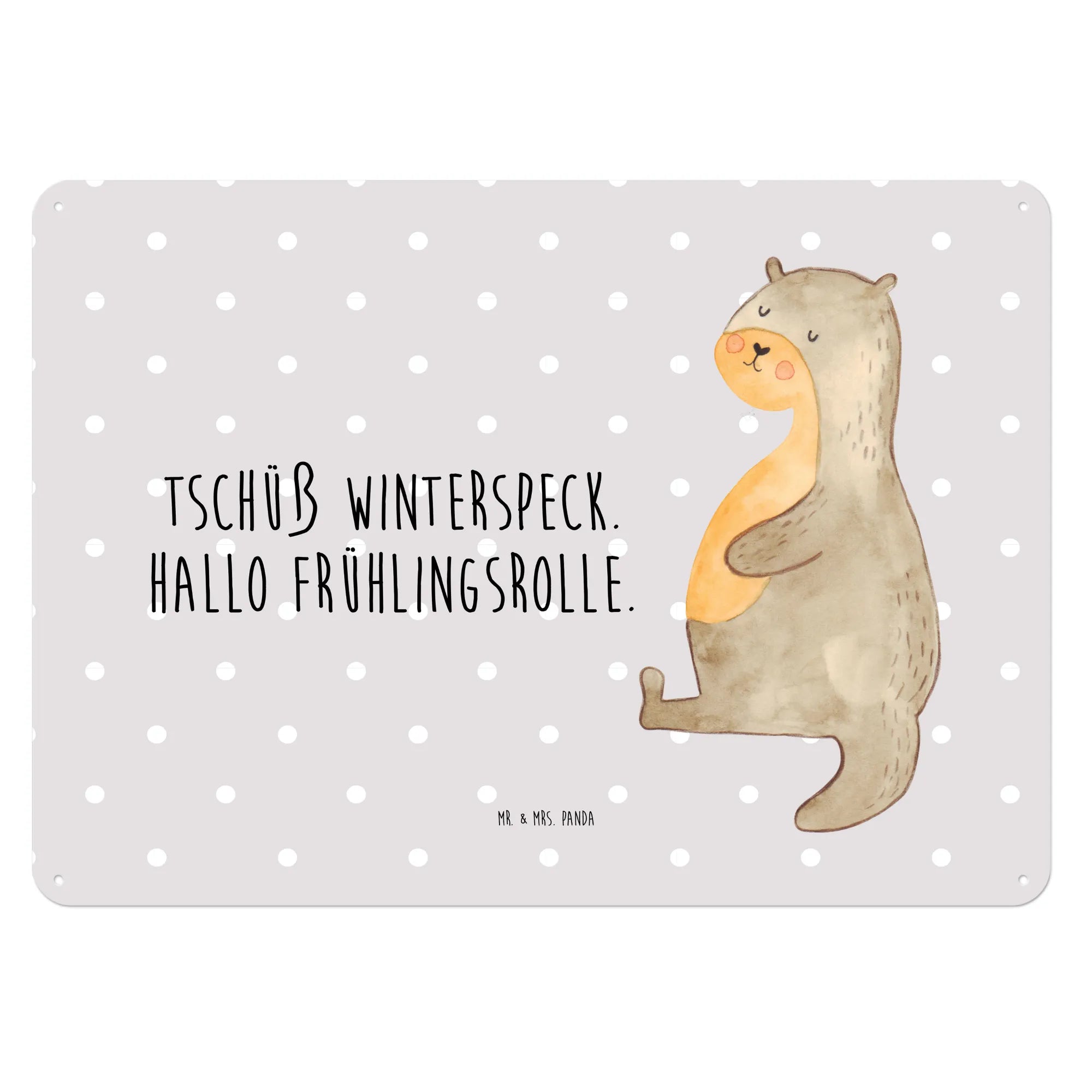 Entdecke das niedliche Blechschild "Otter Bauch" aus der einzigartigen Otter-Kollektion von Mr. & Mrs. Panda! Dieses charmante Metallschild ist nicht nur eine kreative Wanddekoration, sondern auch die perfekte Geschenkidee für alle, die Otter lieben. Mit dem süßen Motiv eines gemütlichen Otters, der zufrieden an seinem Bauch sitzt, zaubert es dir garantiert ein Lächeln ins Gesicht. Die Worte "Tschüß Winterspeck. Hallo Frühlingsrolle." bringen die fröhliche Botschaft gleich mit – ideal für den Frühling und für all jene, die ihre guten Vorsätze in den warmen Monaten umsetzen möchten!