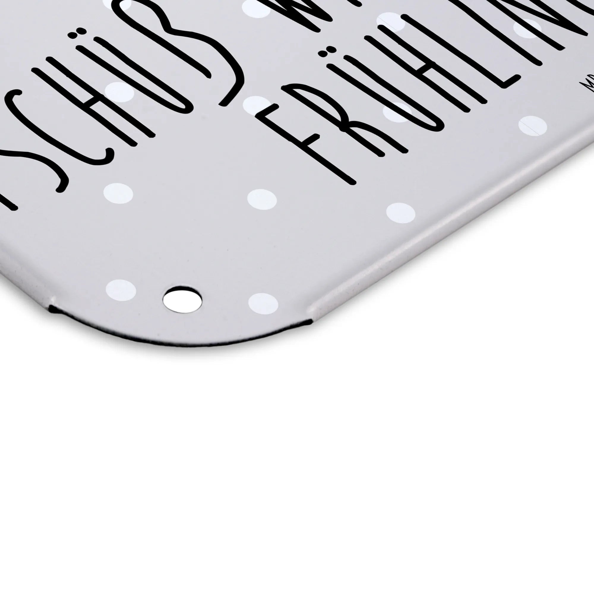 Entdecke das wunderschöne Blechschild von Mr. & Mrs. Panda! Mit seinen edlen Maßen von 146 mm x 148 mm x 210 mm ist es nicht nur ein Blickfang, sondern auch eine stilvolle Bereicherung für dein Zuhause. Der aus hochwertigem Stahlblech gefertigte Schild ist perfekt für die Wand oder die Tür geeignet. Die edel und langlebig bedruckte Oberfläche sorgt dafür, dass die süßen Motive und Sprüche lange strahlend schön bleiben. Die seidenmatte Oberfläche verleiht dem Schild einen besonderen Touch. Ob als Dekoration oder Geschenkidee - dieses Blechschild ist ein echtes Highlight! Mit 4 Bohrungen ausgestattet, lässt es sich zudem optimal montieren. Ideal für den Innenbereich, lässt es sich leicht mit einem feuchten Tuch abwischen. Die abgerundeten Ecken und umgefalzten Kanten verhindern Verletzungen und machen das Schild sicher und ansprechend. Zudem ist das Schild in verschiedenen Größen erhältlich – finde die perfekte Variante für dich!