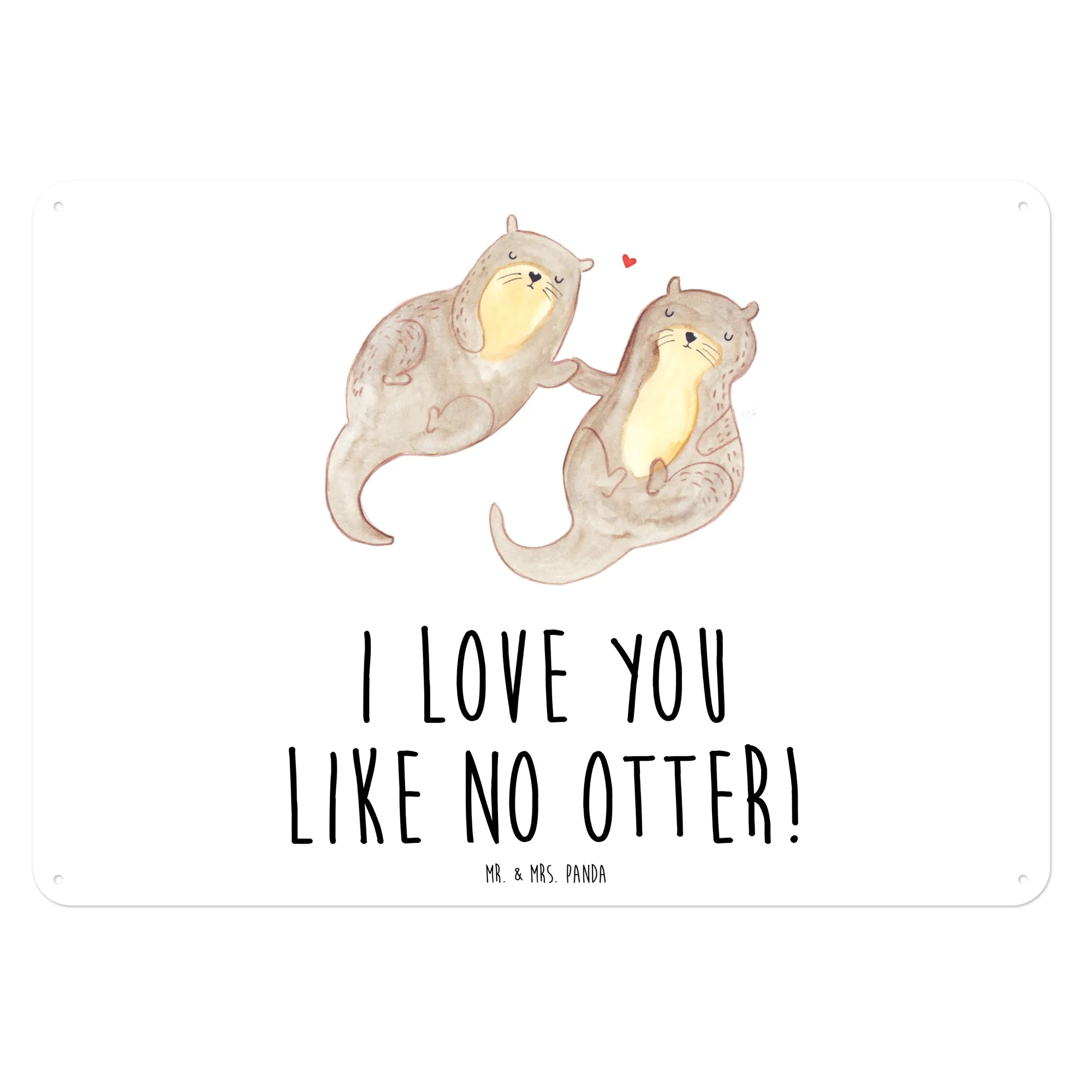 Das wunderschöne Blechschild mit dem niedlichen Motiv "Otter händchenhaltend" aus der Otter-Kollektion von Mr. & Mrs. Panda ist das perfekte Geschenk für alle Otter-Liebhaber!