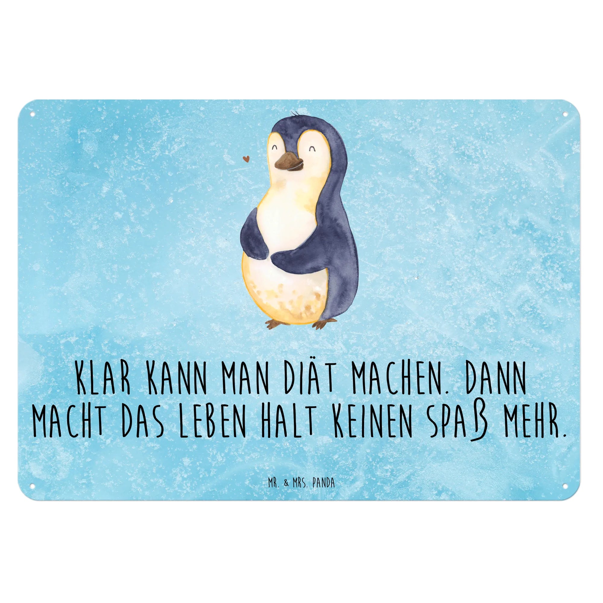 Entdecke das zauberhafte Blechschild aus der Pinguin-Kollektion von Mr. & Mrs. Panda! Mit dem fröhlichen Pinguin-Motiv, das liebevoll gestaltet wurde, bringt dieses Schild eine gehörige Portion Humor in dein Zuhause. Der Pinguin, der genüsslich über seinen dicken Bauch streicht, erinnert dich daran, dass auch ohne strenge Diäten das Leben Spaß machen kann.
