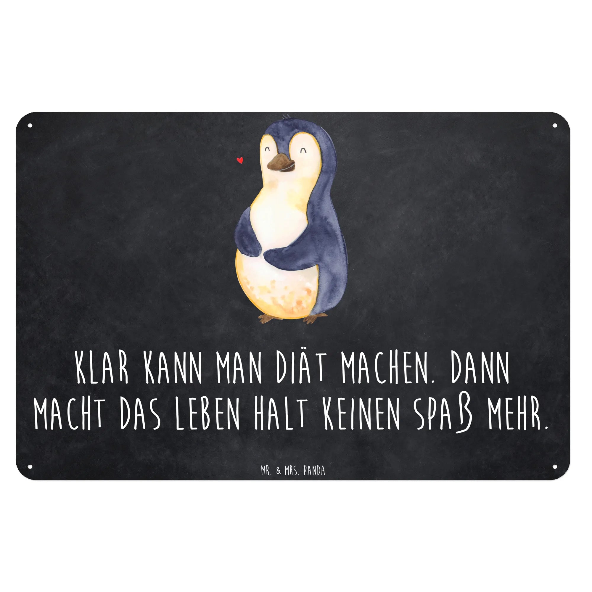 Das süße Blechschild mit dem fröhlichen Pinguinmotiv aus der Pinguin-Kollektion von Mr. & Mrs. Panda ist das perfekte Geschenk für alle, die etwas Humor in ihr Leben bringen möchten. Mit dem Motto "Klar kann man Diät machen. Dann macht das Leben halt keinen Spaß mehr." vermittelt es eine wichtige Botschaft: Es ist okay, sich selbst zu lieben und die kleinen Freuden des Lebens zu genießen, auch wenn man manchmal das Ziel hat abzunehmen.