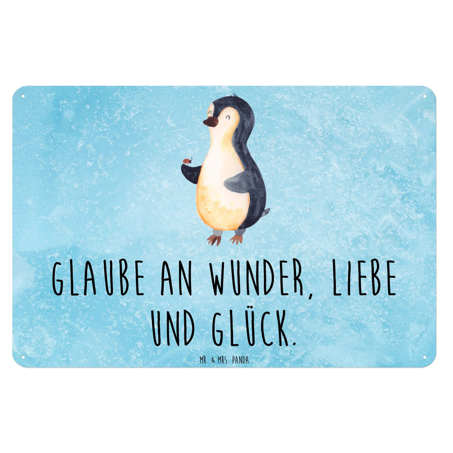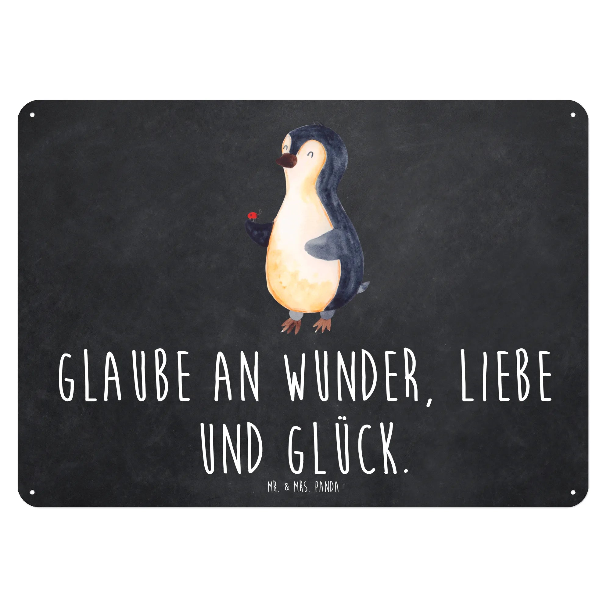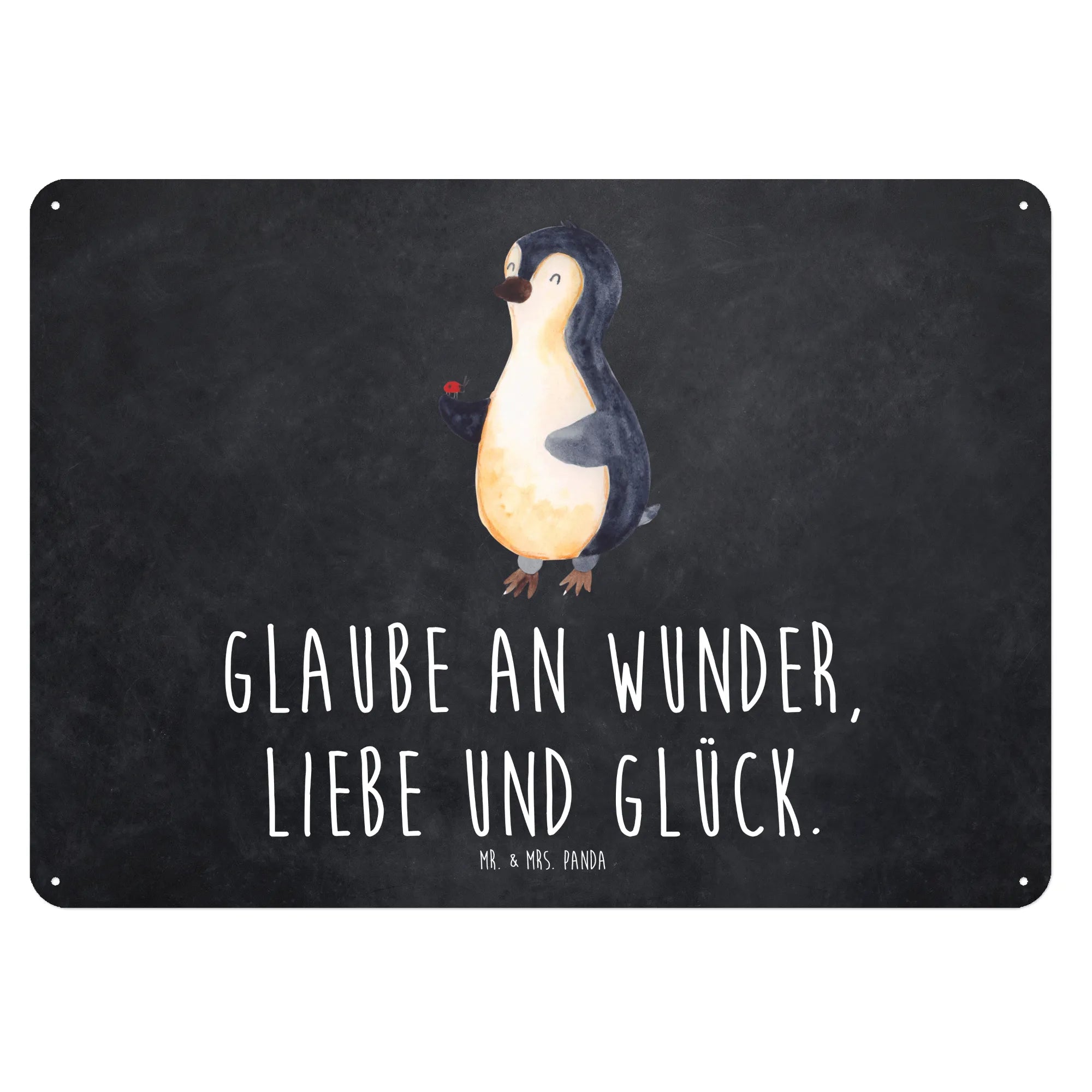 Bringe Wunder, Liebe und Glück in dein Zuhause – mit unserem Pinguin Marienkäfer Blechschild von Mr. & Mrs. Panda.