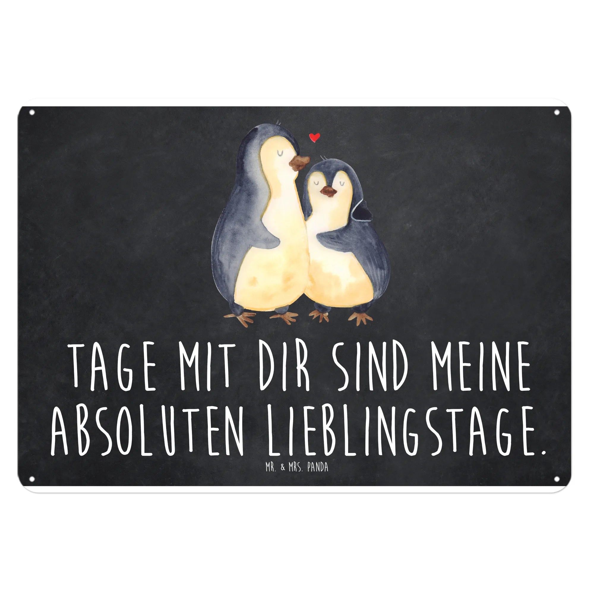 Das edle Blechschild mit dem Motiv "Pinguin umarmend" aus der Pinguin-Kollektion von Mr. & Mrs. Panda ist der perfekte Ausdruck von Zuneigung und Zusammengehörigkeit. Der Anblick der zwei Pinguine, die sich innig umarmen, sagt mehr als tausend Worte. Egal ob als besonderes Geschenk zur Hochzeit, zur Verlobung oder zum Jahrestag – dieses Schild bringt das Herz zum Schmelzen! Mit dem liebevollen Spruch "Tage mit dir sind meine absoluten Lieblingstage" ist dieses Wandschild nicht nur ein dekorativer Blickfang, sondern auch eine wunderschöne Liebeserklärung. ❤