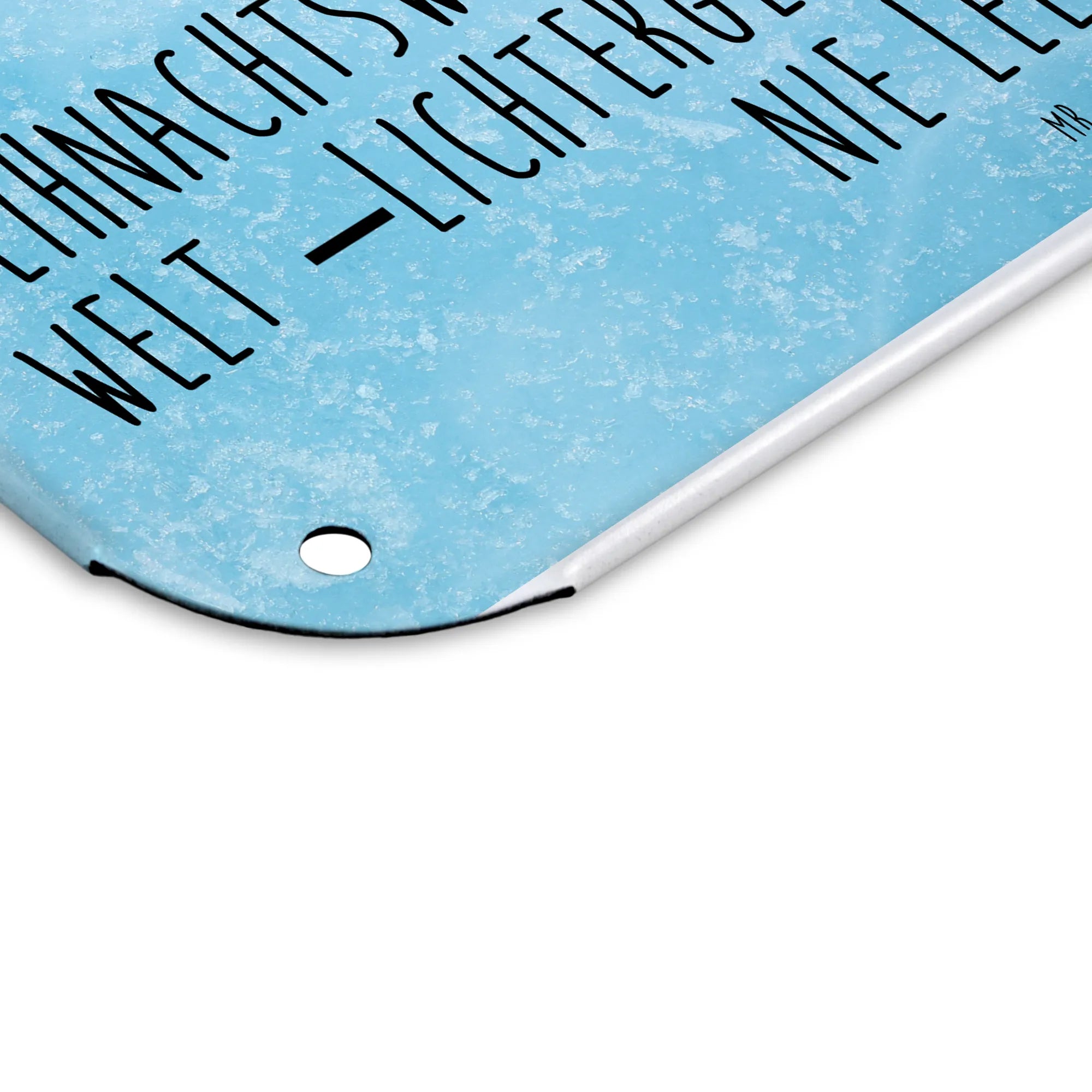 Die abgerundeten Ecken und umgefalzten Kanten machen das Schild besonders sicher und ansprechend. Mit den 4 Bohrungen lässt sich das Schild ganz einfach aufhängen, ob an der Tür oder an der Wand – es wird überall zum Hingucker. Verleihe deinem Weihnachtsfest noch mehr Glanz mit diesem tollen Deko-Schild, das mit dem Motto „Weihnachtswunschliste: Frieden für die Welt, Lichterglanz und eine Keksdose, die niemals leer geht“ versehen ist.