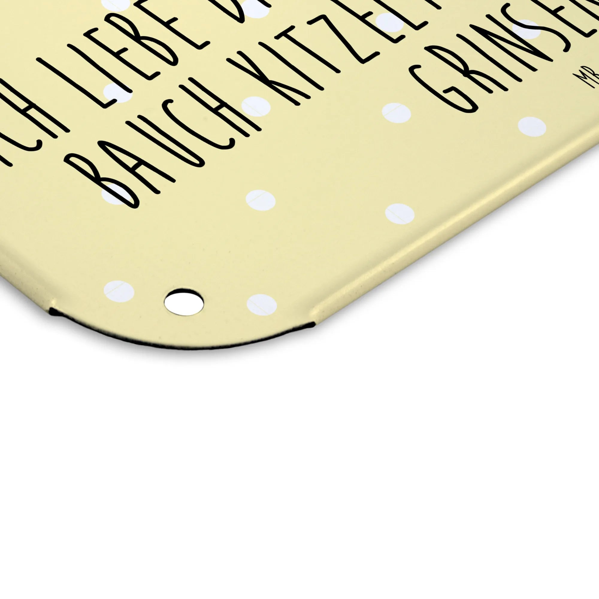 Dieses edle Blechschild von Mr. & Mrs. Panda ist nicht nur eine Dekoration, sondern auch ein Statement! Mit den Maßen 146 mm x 297 mm x 210 mm lässt es sich wunderbar an jeder Wand oder Tür anbringen und bringt ein Lächeln in jeden Raum. Das Schild ist aus hochwertigem Stahlblech hergestellt, was für eine lange Haltbarkeit sorgt. Der Druck ist nicht nur wunderschön anzusehen, sondern auch ultra langlebig in seidenmatter Qualität. Durch die abgerundeten Ecken und gefalzten Kanten ist es nicht nur schön, sondern auch sicher. Mit praktischen 4 Bohrungen ausgestattet, kannst du es komfortabel anbringen. Dieses Stück ist ideal als Geschenk für deine Liebsten oder einfach zur Verschönerung deines Zuhauses. Leichte Reinigung – einfach abwischen mit einem feuchten Tuch. Mach dein Zuhause noch einladender mit diesem besonderen Stück von Mr. & Mrs. Panda!