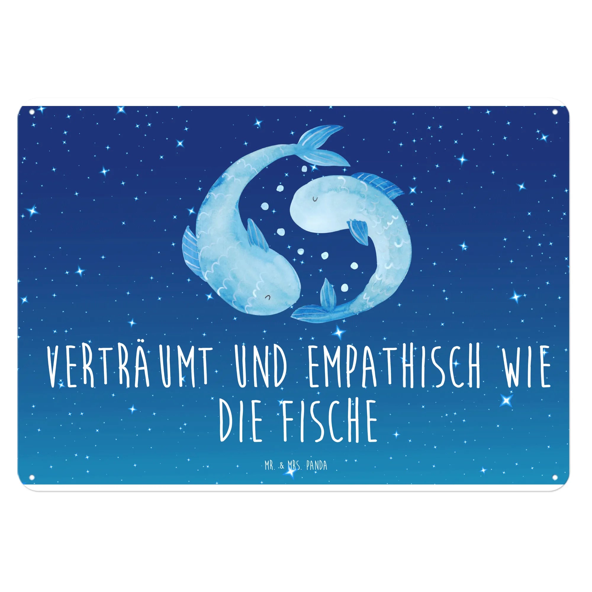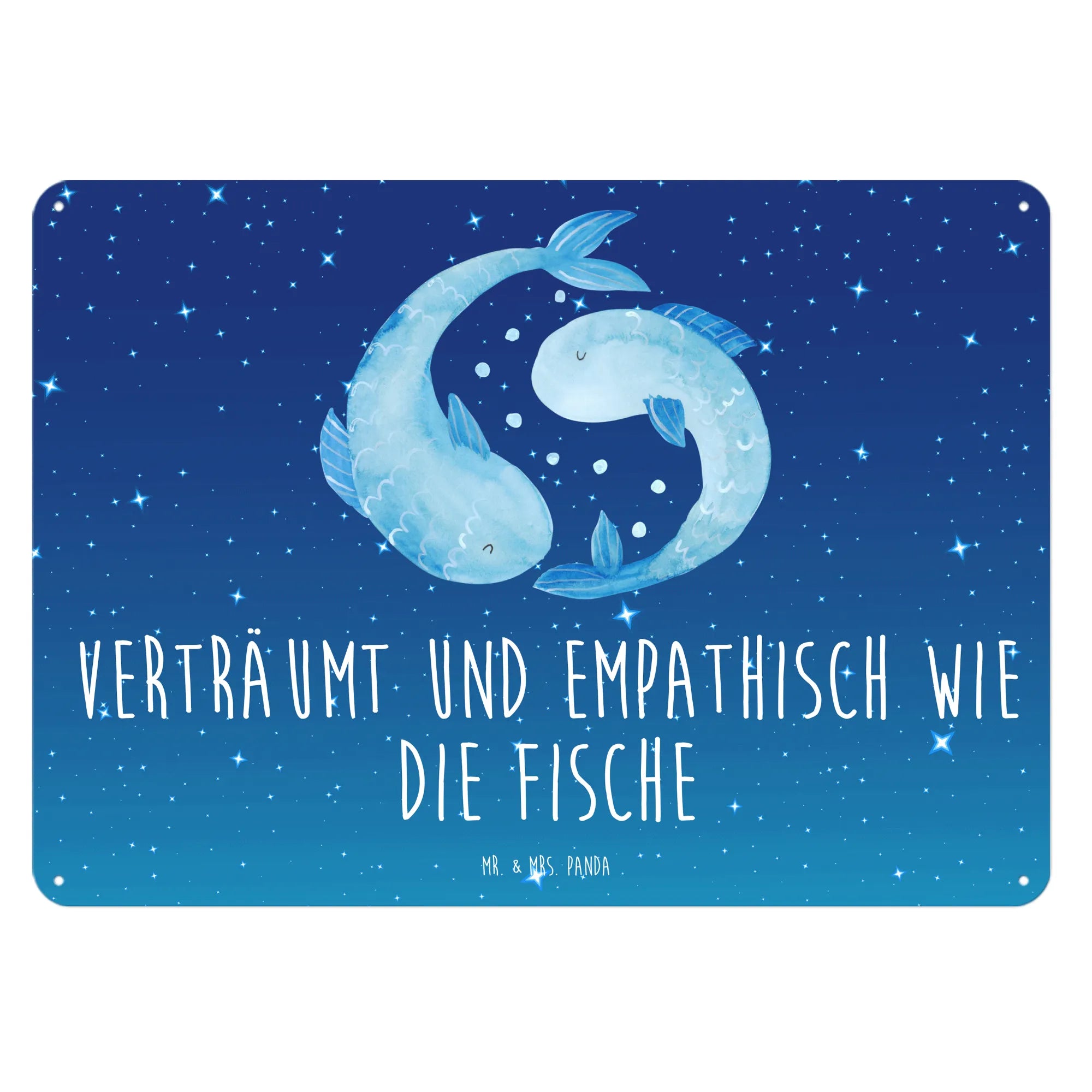 Entdecke das wundervolle Blechschild mit dem Sternzeichen Fische aus der Sternzeichen Kollektion von Mr. & Mrs. Panda! Dieses edle Blechschild ist nicht nur ein wahrer Blickfang, sondern auch das perfekte Geschenk für alle, die im Zeichen der Fische geboren sind oder einfach die empathische und verträumte Natur dieses Sternzeichens schätzen.