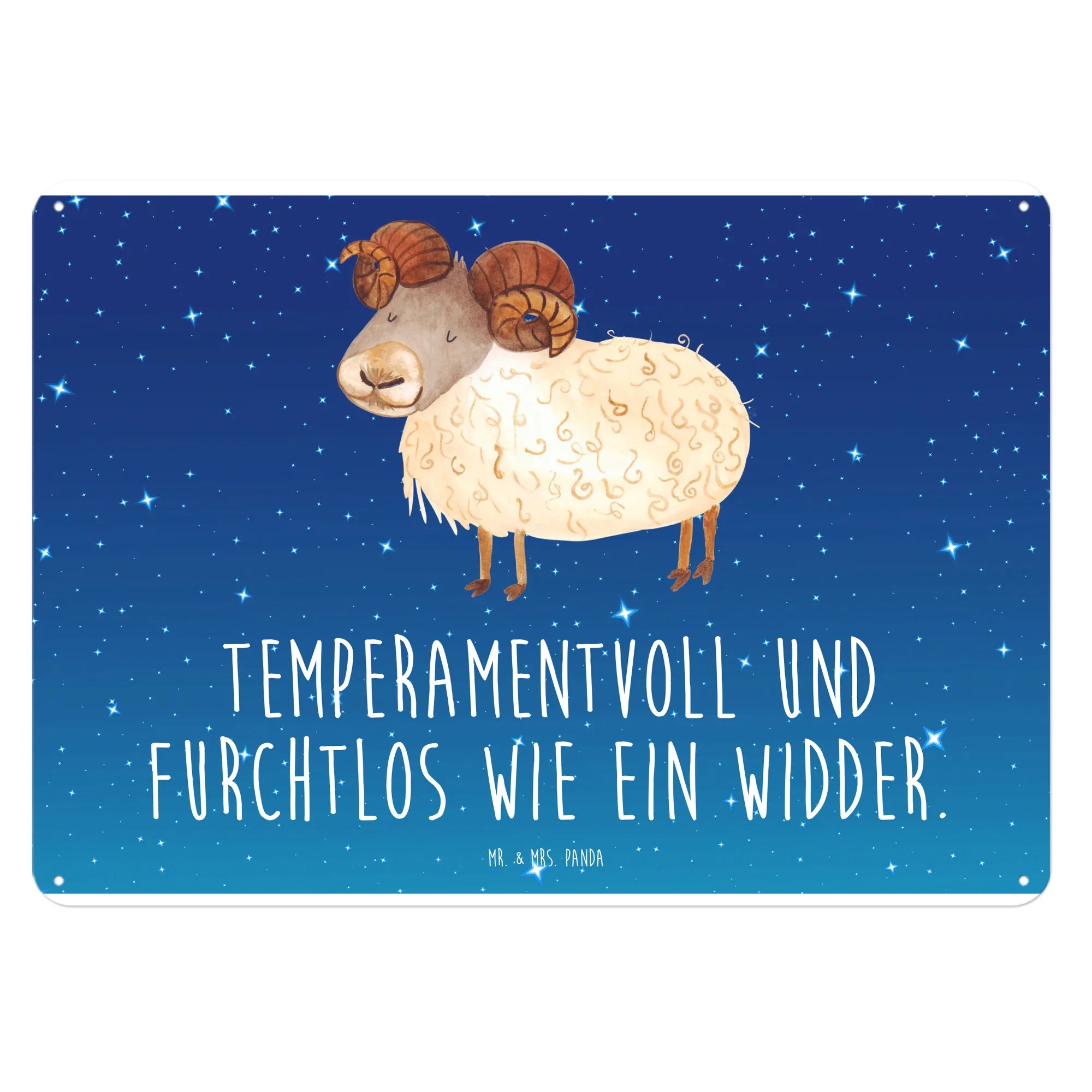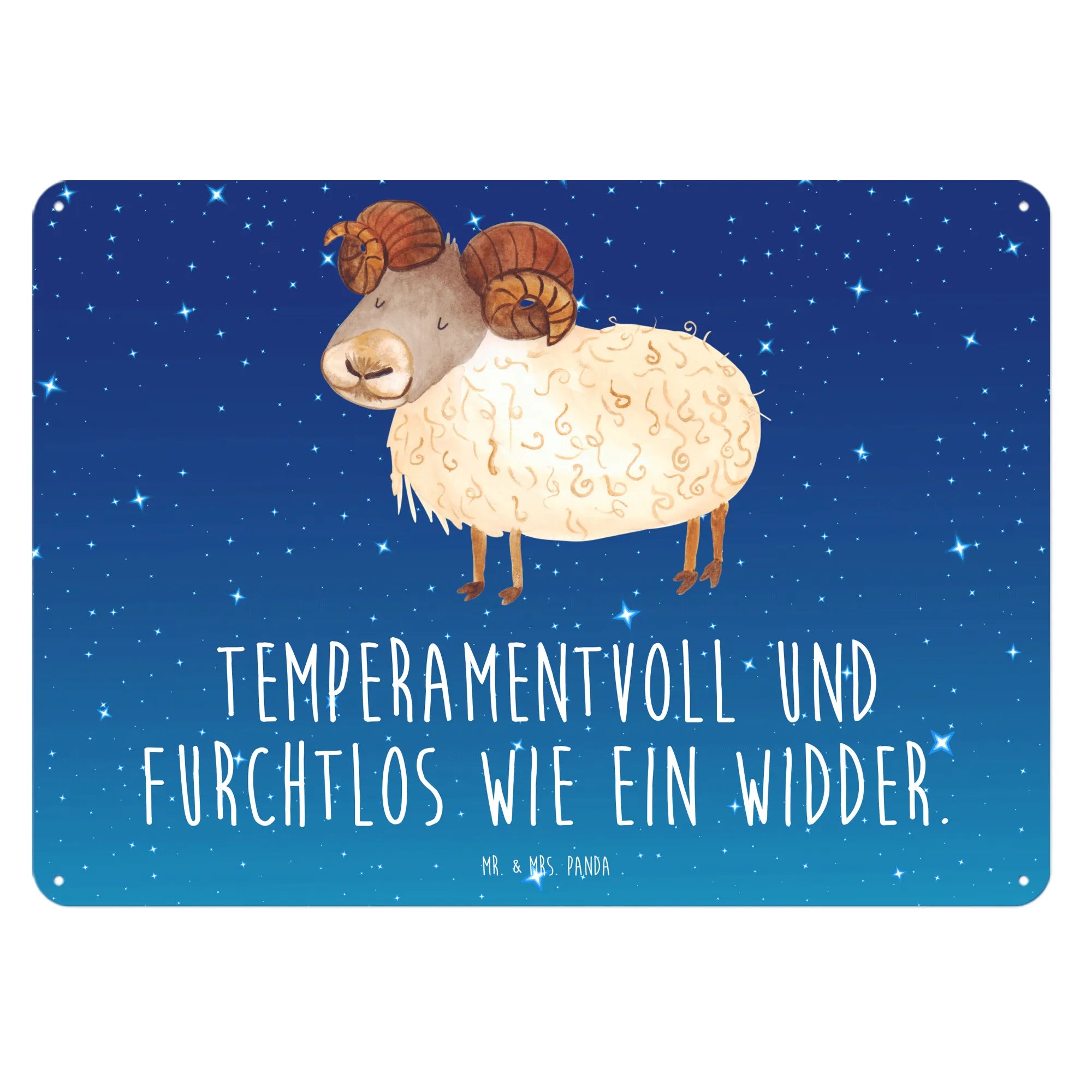 Entdecke das bezaubernde Blechschild im Motiv Sternzeichen Widder von Mr. & Mrs. Panda! Dieses edle und langlebige Schild bringt das temperamentvolle und furchtlose Wesen des Widders direkt in dein Zuhause.